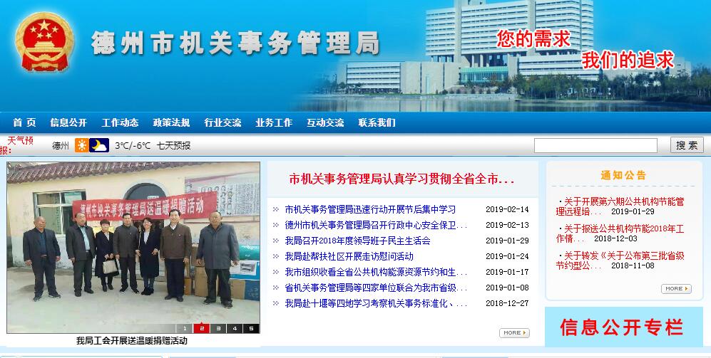 德州市機(jī)關(guān)事務(wù)管理局主要職責(zé):一是負(fù)責(zé)市級機(jī)關(guān)事務(wù)管理、保障、服務(wù)工作,擬定市級機(jī)關(guān)事務(wù)工作和后勤體制改革的政策并組織實(shí)施。二是按照法律法規(guī)或市政府授權(quán),承擔(dān)市級行政事業(yè)單位國有資產(chǎn)管理有關(guān)工作。三是負(fù)責(zé)市級機(jī)關(guān)房、地產(chǎn)管理工作。擬訂相關(guān)制度和具體管理辦法并組織實(shí)施;按規(guī)定負(fù)責(zé)辦公用房的建設(shè)項(xiàng)目審核、計(jì)劃編制;會(huì)同有關(guān)部門推進(jìn)市級機(jī)關(guān)辦公用房的統(tǒng)一建設(shè)、購置和集中管理使用;負(fù)責(zé)辦公用房及附屬(經(jīng)營性)用房的使用調(diào)配、維修管理等工作;按規(guī)定管理租金;負(fù)責(zé)組織市直單位到市級財(cái)政部門統(tǒng)一辦理國有資產(chǎn)權(quán)屬登記。四是根據(jù)上級有關(guān)政策規(guī)定,擬定市級機(jī)關(guān)職工住房制度改革方案并組織實(shí)施;指導(dǎo)市級機(jī)關(guān)新建集中住宅區(qū)的建設(shè)、配售和管理工作;管理市級機(jī)關(guān)公用周轉(zhuǎn)房產(chǎn)。五是擬定市級機(jī)關(guān)公務(wù)用車管理規(guī)定并組織實(shí)施;根據(jù)市政府授權(quán),負(fù)責(zé)市級機(jī)關(guān)公務(wù)用車的編制、配備、更新及報(bào)廢的有關(guān)工作。六是在市政府管理節(jié)能工作部門的指導(dǎo)下,負(fù)責(zé)推進(jìn)、指導(dǎo)、協(xié)調(diào)、監(jiān)督全市公共機(jī)構(gòu)節(jié)能工作。會(huì)同有關(guān)部門擬定市級機(jī)關(guān)公共機(jī)構(gòu)節(jié)能中長期規(guī)劃和市級機(jī)關(guān)公共機(jī)構(gòu)節(jié)能政策、制度,并組織實(shí)施;會(huì)同有關(guān)部門組織開展市級機(jī)關(guān)公共機(jī)構(gòu)能耗監(jiān)測、統(tǒng)計(jì)、公布工作。承擔(dān)所管理的行政中心綜合樓、政務(wù)服務(wù)中心大樓等附屬設(shè)施節(jié)能具體工作。七是負(fù)責(zé)會(huì)同有關(guān)安全保衛(wèi)單位做好行政中心綜合樓、政務(wù)服務(wù)中心大樓及附屬設(shè)施的使用管理、綠化美化和安全工作;負(fù)責(zé)會(huì)展中心的管理服務(wù)工作和行政中心機(jī)關(guān)食堂的管理工作。八是承辦市委、市政府交辦的招商引資和幫扶社區(qū)任務(wù)及其他工作。