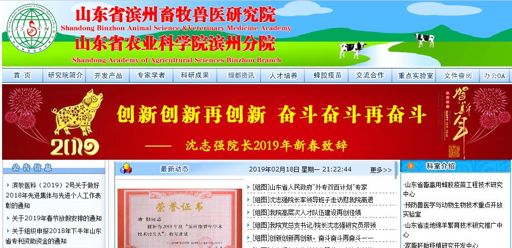 山東省濱州畜牧獸醫(yī)研究院&山東省農(nóng)業(yè)科學(xué)院濱州分院系創(chuàng)建于1963年的原山東省家畜布氏桿菌病防治研究所,曾隸屬于山東省農(nóng)科院、山東省農(nóng)業(yè)廳。1995年經(jīng)省編委、省科委批準(zhǔn)更名為山東省濱州畜牧獸醫(yī)研究所,2005年12月更名為山東省濱州畜牧獸醫(yī)研究院,2006年2月經(jīng)山東省農(nóng)業(yè)科學(xué)院批準(zhǔn),加掛“山東省農(nóng)業(yè)科學(xué)院濱州分院”的牌子, 2009年4月加掛“山東省農(nóng)業(yè)科學(xué)院黃河三角洲高效生態(tài)經(jīng)濟(jì)研究中心”的牌子。2009年5月吉林大學(xué)獸醫(yī)博士、碩士學(xué)位教學(xué)科研基地與研究生聯(lián)合培養(yǎng)基地及吉林大學(xué)畜牧獸醫(yī)學(xué)院教學(xué)科研基地在該院成立。標(biāo)志著該院研學(xué)產(chǎn)合作進(jìn)入了新的階段。山東省濱州畜牧獸醫(yī)研究院瞄準(zhǔn)國(guó)際科技前沿,緊緊圍繞國(guó)家、省、市畜牧業(yè)與生物醫(yī)藥產(chǎn)業(yè)及農(nóng)村經(jīng)濟(jì)的發(fā)展方向與目標(biāo),大力開(kāi)展應(yīng)用基礎(chǔ)研究、應(yīng)用研究、高新技術(shù)研究和競(jìng)爭(zhēng)前公益技術(shù)研究,積極開(kāi)展成果轉(zhuǎn)化、科技示范、科技培訓(xùn)、科技服務(wù)等工作,為發(fā)展現(xiàn)代畜牧業(yè)與生物技術(shù)產(chǎn)業(yè)、保障食品安全與人類(lèi)健康、建設(shè)新農(nóng)村、發(fā)展新牧業(yè)、服務(wù)新農(nóng)民提供技術(shù)支撐和技術(shù)服務(wù)!山東省濱州畜牧獸醫(yī)研究院技術(shù)力量雄厚,現(xiàn)有員工79名,在職員工60名,其中,研究員4名,副研究員10名,國(guó)家有突出貢獻(xiàn)的中青年專(zhuān)家1名,中國(guó)青年科技獎(jiǎng)獲得者1名,榮享國(guó)務(wù)院政府特貼專(zhuān)家1名,全國(guó)優(yōu)秀科技工作者1名,國(guó)家級(jí)科技思想庫(kù)決策專(zhuān)家1名,農(nóng)業(yè)部高級(jí)專(zhuān)家?guī)旄呒?jí)專(zhuān)家1名,中國(guó)青年國(guó)際創(chuàng)業(yè)計(jì)劃創(chuàng)業(yè)導(dǎo)師1名,省十佳中青年科技專(zhuān)家1名,省有突出貢獻(xiàn)的中青年專(zhuān)家1名,泰山學(xué)者海外特聘專(zhuān)家1名,省創(chuàng)新團(tuán)隊(duì)崗位專(zhuān)家2名,省政府農(nóng)業(yè)專(zhuān)家顧問(wèn)團(tuán)專(zhuān)家1名,省禽流感防控專(zhuān)家組專(zhuān)家1名,博士生導(dǎo)師1名,碩士生合作導(dǎo)師7名,市有突出貢獻(xiàn)的專(zhuān)業(yè)技術(shù)人員5名,市青年科技獎(jiǎng)獲得者14名,市青年學(xué)術(shù)技術(shù)帶頭人培養(yǎng)人選7名,博士、碩士學(xué)位40余名;全國(guó)人大代表1名,省人大代表1名,市人大常委1名,市政協(xié)常委1名,省勞模1名,市勞模4名。離退休職工19名,其中,榮享國(guó)務(wù)院政府特貼專(zhuān)家5名,省勞模2名。全院現(xiàn)擁有國(guó)家博士后科研工作站、山東省畜禽用蜂膠疫苗工程技術(shù)研究中心、省獸醫(yī)生物技術(shù)重點(diǎn)開(kāi)放實(shí)驗(yàn)室、預(yù)防獸醫(yī)學(xué)與動(dòng)物生物技術(shù)重點(diǎn)開(kāi)放實(shí)驗(yàn)室、省中英禽病防控技術(shù)國(guó)際合作研究中心、山東省現(xiàn)代產(chǎn)業(yè)技術(shù)體系羊創(chuàng)新團(tuán)隊(duì)疫病防治崗位專(zhuān)家、家禽創(chuàng)新團(tuán)隊(duì)生產(chǎn)與環(huán)控崗位專(zhuān)家、生豬創(chuàng)新團(tuán)隊(duì)綜合試驗(yàn)站、牛創(chuàng)新團(tuán)隊(duì)濱州綜合試驗(yàn)站等國(guó)家級(jí)、省級(jí)科技創(chuàng)新平臺(tái);科技創(chuàng)新系統(tǒng)設(shè)有生物制品、動(dòng)物保健品、動(dòng)物醫(yī)學(xué)、人獸共患病、動(dòng)物營(yíng)養(yǎng)、動(dòng)物生產(chǎn)、食品科技與安全等7個(gè)研究室;科研轉(zhuǎn)化推廣系統(tǒng)設(shè)有山東省畜禽用蜂膠疫苗研究開(kāi)發(fā)推廣中心與山東省洼地綿羊繁育技術(shù)研究開(kāi)發(fā)中心2個(gè)省級(jí)成果推廣中心、家畜胚胎移植研究開(kāi)發(fā)中心、山東省洼地綿羊原種場(chǎng)、畜禽良種研究推廣中心、魯北獸醫(yī)診斷中心等??萍贾喂芾矸?wù)系統(tǒng)設(shè)有辦公室、科技處、國(guó)際合作處、人才人事教育科(博士后管理辦公室)、財(cái)務(wù)審計(jì)室、院工會(huì)、團(tuán)委等。主要研究領(lǐng)域涵蓋了山東乃至全國(guó)畜牧獸醫(yī)發(fā)展主要領(lǐng)域,在預(yù)防獸醫(yī)學(xué)、生物工程、動(dòng)物保健品、動(dòng)物繁殖育種等領(lǐng)域形成自身優(yōu)勢(shì)。尤其是對(duì)綠色畜禽蜂膠疫苗的研究,打破傳統(tǒng)疫苗制造常規(guī),獨(dú)創(chuàng)發(fā)明了納米蜂膠疫苗制造工藝技術(shù)平臺(tái),居世界領(lǐng)先水平。50年來(lái),先后承擔(dān)各類(lèi)科研課題300多項(xiàng),其中,國(guó)家、省、市級(jí)科研課題130余項(xiàng),共獲得國(guó)家、省、市科技成果獎(jiǎng)160多項(xiàng),制定國(guó)家、省標(biāo)準(zhǔn)50多項(xiàng),獲中國(guó)發(fā)明專(zhuān)利1項(xiàng),在國(guó)際國(guó)內(nèi)學(xué)術(shù)刊物發(fā)表論文1000多篇,其中有200余篇被SCI、EI、ISTP、Agris等國(guó)外權(quán)威刊物收錄。主編參編學(xué)術(shù)專(zhuān)著20余部,居世界領(lǐng)先水平的禽霍亂蜂膠滅活疫苗榮獲國(guó)家發(fā)明三等