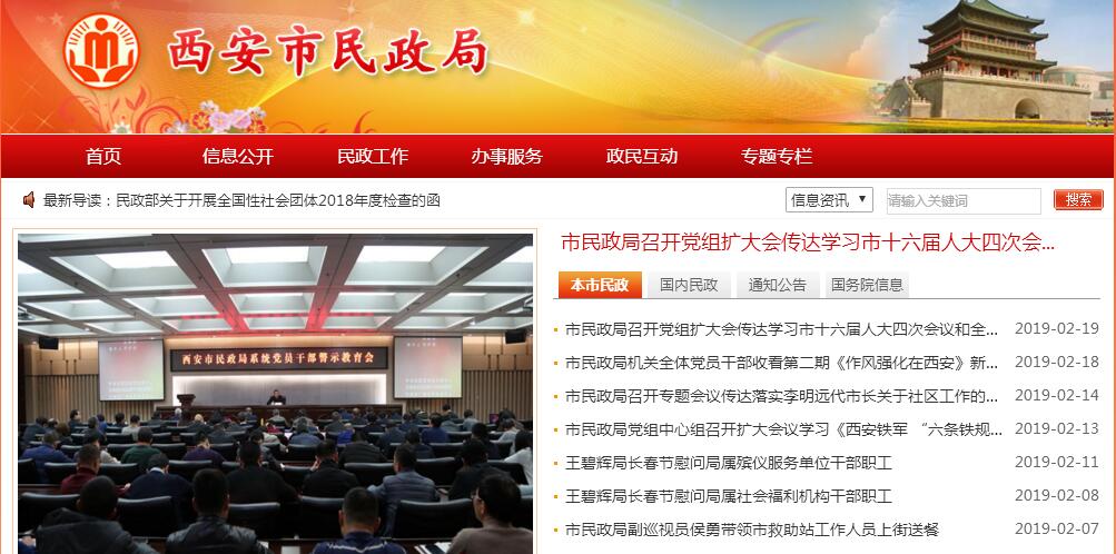 西安市民政局是主管全市有關社會行政事務工作的市政府組成部門。其主要職責:(一)貫徹執(zhí)行民政工作方面的法律法規(guī)和方針政策,起草有關地方性法規(guī)和規(guī)章草案,擬訂全市民政事業(yè)發(fā)展規(guī)劃并組織實施。(二)承擔對社會團體、民辦非企業(yè)單位和非公募基金會的登記管理和執(zhí)法監(jiān)察責任;指導社會組織黨的建設、制度建設、人才隊伍建設。(三)負責救災工作,組織災情核查上報及救災捐贈工作,管理、分配救災款物并監(jiān)督使用;負責組織援助外地災區(qū)款物收集、運送及慰問工作。(四)擬訂社會救助規(guī)劃、政策和標準,健全城鄉(xiāng)社會救助體系,負責城鄉(xiāng)居民最低生活保障、醫(yī)療救助、臨時救助、教育資助和特困人員、生活無著人員救助工作。(五)指導社區(qū)服務體系建設,提出加強和改進城鄉(xiāng)基層政權建設的建議,推動基層民主政治建設。(六)負責社會福利事業(yè)和福利彩票管理工作;負責養(yǎng)老服務體系建設,促進養(yǎng)老服務產業(yè)發(fā)展;負責老齡工作;指導社會慈善、社會捐贈、群眾互助等社會扶助工作,促進慈善事業(yè)發(fā)展。(七)負責婚姻登記管理、殯葬管理、流浪乞討人員救助管理和兒童收養(yǎng)工作,推進婚俗和殯葬改革。(八)會同有關部門擬訂社會工作發(fā)展規(guī)劃、政策和職業(yè)規(guī)范,推進社會工作人才隊伍建設和相關志愿者隊伍建設;負責政府購買社會工作服務的統(tǒng)籌規(guī)劃、組織實施、監(jiān)督檢查。(九)負責行政區(qū)劃、地名管理及行政區(qū)域界線的管理和調整工作。(十)負責優(yōu)待撫恤工作和烈士褒揚工作;負責退伍義務兵、轉業(yè)士官、復員干部、軍隊離休退休干部和無軍籍退休職工的接收安置和服務管理工作。(十一)組織開展擁軍優(yōu)屬、擁政愛民活動。(十二)承辦市政府交辦的其他事項。