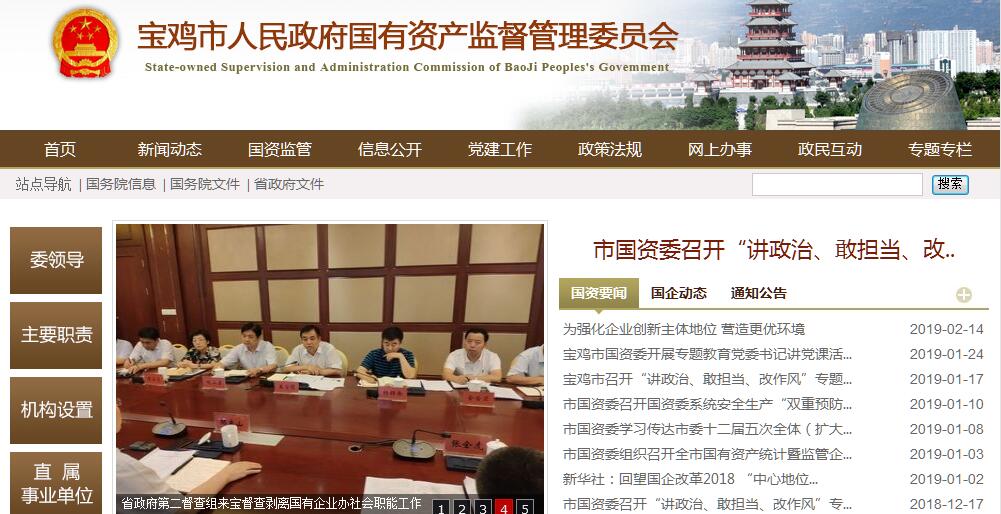 根據(jù)《中共陜西省委辦公廳陜西省人民政府辦公廳關(guān)于印發(fā)〈寶雞市人民政府職能轉(zhuǎn)變和機(jī)構(gòu)改革方案〉的通知》(陜辦字〔2015〕45號),設(shè)立市政府國有資產(chǎn)監(jiān)督管理委員會,為市政府工作部門。其主要職責(zé):(一)根據(jù)市政府授權(quán),依照《中華人民共和國公司法》、《中華人民共和國企業(yè)國有資產(chǎn)法》等法律和行政法規(guī)履行出資人職責(zé);監(jiān)管市屬企業(yè)國有資產(chǎn),加強國有資產(chǎn)管理工作。(二)承擔(dān)監(jiān)督監(jiān)管企業(yè)國有資產(chǎn)保值增值責(zé)任。建立和完善國有資產(chǎn)保值增值指標(biāo)體系,制定考核標(biāo)準(zhǔn),通過財務(wù)稽核對監(jiān)管企業(yè)國有資產(chǎn)保值增值情況進(jìn)行監(jiān)管。改革國有資本授權(quán)經(jīng)營體制,推動國有資本合理流動,優(yōu)化配置。(三)準(zhǔn)確界定不同國有企業(yè)功能,對監(jiān)管企業(yè)實行分類監(jiān)管。(四)推動市屬國有經(jīng)濟(jì)布局和結(jié)構(gòu)戰(zhàn)略性調(diào)整,推進(jìn)產(chǎn)業(yè)優(yōu)化升級和轉(zhuǎn)型發(fā)展,引導(dǎo)國有資本更多地投向新興產(chǎn)業(yè)和優(yōu)勢企業(yè);指導(dǎo)監(jiān)管企業(yè)制定產(chǎn)業(yè)發(fā)展規(guī)劃,督促其履行相關(guān)社會責(zé)任。(五)指導(dǎo)推進(jìn)國有企業(yè)改革和重組,發(fā)展混合所有制經(jīng)濟(jì)。組織協(xié)調(diào)監(jiān)管企業(yè)合并、分立、解散、清算和關(guān)閉破產(chǎn)等工作,引導(dǎo)各類資本參與國有企業(yè)改革;負(fù)責(zé)監(jiān)管企業(yè)投資、融資和上市審核工作。(六)完善市屬國有企業(yè)現(xiàn)代企業(yè)制度,推進(jìn)公司制股份制改革。健全協(xié)調(diào)運轉(zhuǎn)、有效制衡的公司治理結(jié)構(gòu),規(guī)范董事長、總經(jīng)理行權(quán)行為。按照有關(guān)規(guī)定,代表市政府向履行出資的國有獨資公司、國有獨資企業(yè)派出監(jiān)事會;向國有控股、參股企業(yè)派出監(jiān)事;負(fù)責(zé)監(jiān)事會的日常管理工作。(七)按照管理權(quán)限對國有企業(yè)領(lǐng)導(dǎo)人員實行分類分層管理。建立符合社會主義市場經(jīng)濟(jì)體制和現(xiàn)代企業(yè)制度要求的選人、用人機(jī)制和企業(yè)薪酬分配制度,完善經(jīng)營者激勵和約束制度。(八)參與擬訂國有資本經(jīng)營預(yù)算有關(guān)管理制度和辦法,按照有關(guān)規(guī)定負(fù)責(zé)國有資本經(jīng)營預(yù)決算編制和執(zhí)行等工作;負(fù)責(zé)組織監(jiān)管企業(yè)上交國有資本收益和市財政周轉(zhuǎn)金的回收管理工作。(九)負(fù)責(zé)監(jiān)管企業(yè)財務(wù)監(jiān)督、風(fēng)險控制和市屬國有企業(yè)經(jīng)濟(jì)運行分析工作;組織開展監(jiān)管企業(yè)負(fù)責(zé)人離任和任期經(jīng)濟(jì)責(zé)任審計工作;負(fù)責(zé)監(jiān)管企業(yè)工資總額、企業(yè)負(fù)責(zé)人工資調(diào)整審批工作。(十)負(fù)責(zé)組織實施監(jiān)管企業(yè)清產(chǎn)核資工作;承擔(dān)監(jiān)管企業(yè)資產(chǎn)評估項目的核準(zhǔn)和備案工作;組織實施國有資產(chǎn)權(quán)屬界定、登記、劃轉(zhuǎn)、轉(zhuǎn)讓和糾紛調(diào)處等。(十一)按照出資人職責(zé),配合相關(guān)部門監(jiān)督檢查監(jiān)管企業(yè)貫徹落實有關(guān)安全生產(chǎn)方針政策及法律法規(guī)、標(biāo)準(zhǔn)等工作;負(fù)責(zé)監(jiān)管企業(yè)的穩(wěn)定工作。(十二)負(fù)責(zé)企業(yè)國有資產(chǎn)基礎(chǔ)管理,推進(jìn)經(jīng)營性國有資產(chǎn)集中統(tǒng)一監(jiān)管,依法對縣區(qū)國有資產(chǎn)管理工作進(jìn)行指導(dǎo)監(jiān)督。(十三)指導(dǎo)全市國有企業(yè)主輔分離、輔業(yè)改制,推進(jìn)企業(yè)辦社會職能屬地化管理,妥善解決國有企業(yè)歷史遺留問題。(十四)承辦市政府交辦的其他事項。