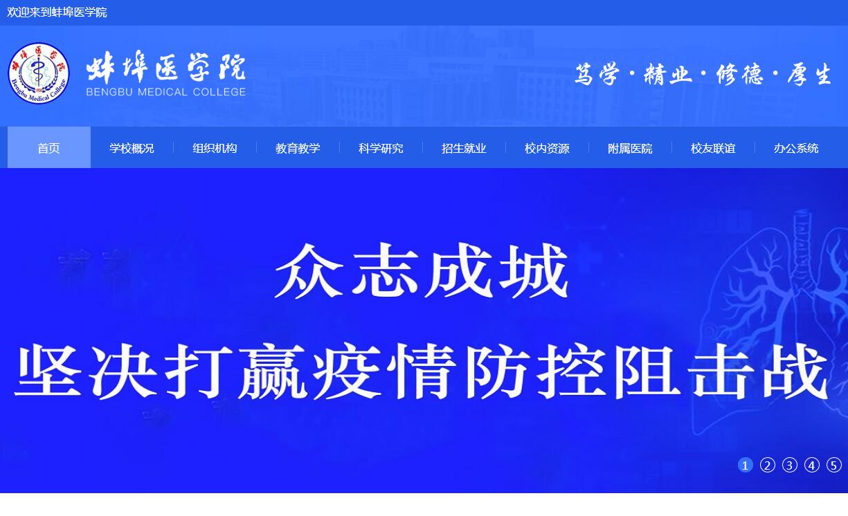 蚌埠醫(yī)學(xué)院創(chuàng)建于 1958 年 7 月,由原上海第二醫(yī)學(xué)院(現(xiàn)上海交通大學(xué)醫(yī)學(xué)院)分遷援建成立。學(xué)?,F(xiàn)為安徽省省屬普通高等醫(yī)學(xué)院校,是國家首批具有學(xué)士和碩士學(xué)位授予權(quán)的高等學(xué)府之一,現(xiàn)為教育部碩士研究生推免高校,國家第一批臨床醫(yī)學(xué)碩士專業(yè)學(xué)位教育與住院醫(yī)師規(guī)范化培訓(xùn)銜接改革試點(diǎn)單位。學(xué)校是國家第一批卓越醫(yī)生教育培養(yǎng)計(jì)劃試點(diǎn)高校、國家級(jí)大學(xué)生創(chuàng)新創(chuàng)業(yè)訓(xùn)練計(jì)劃首批試點(diǎn)高校、安徽省高校綜合改革首批試點(diǎn)單位,是暨南大學(xué)、第三軍醫(yī)大學(xué)博士研究生聯(lián)合培養(yǎng)單位和安徽省博士后崗位設(shè)置單位。學(xué)校坐落于國家重要的交通樞紐城市——蚌埠,瀕臨千里淮河,傍依靈秀曹山,禹風(fēng)厚德、孕沙成珠,承山水涵養(yǎng)之靈氣,傳杏林濟(jì)世之流芳。學(xué)?,F(xiàn)有龍子湖校區(qū)、治淮校區(qū)和宏業(yè)校區(qū) 3 個(gè)校區(qū)。其中,龍子湖校區(qū)位于蚌埠市國家級(jí) AAAA 級(jí)風(fēng)景區(qū)龍子湖東岸,占地面積 1000畝,總建筑面積達(dá) 33 萬平方米,校園內(nèi)水波蕩漾、奇石點(diǎn)綴、樹林成蔭,構(gòu)成富有特色的綠色園林景觀,是安徽省園林式單位和綠化模范單位,安徽省首屆教育系統(tǒng)文明單位和安徽省第十一屆文明單位。學(xué)校(含直屬附屬醫(yī)院)現(xiàn)有教職醫(yī)護(hù)員工近 6000 人,其中高級(jí)職稱專業(yè)技術(shù)人員 862 人,教授、副教授 425 人,具有博士學(xué)位的教師 182 人。擁有全國優(yōu)秀教師、全國模范教師、省級(jí)優(yōu)秀教師、省級(jí)教壇新秀、省級(jí)教學(xué)名師、省模范教師、省級(jí)先進(jìn)工作者、省級(jí)優(yōu)秀教育工作者、全國五一勞動(dòng)獎(jiǎng)?wù)芦@得者、全國衛(wèi)生計(jì)生系統(tǒng)先進(jìn)工作者、省五一勞動(dòng)獎(jiǎng)?wù)芦@得者及勞動(dòng)模范、省級(jí)教學(xué)團(tuán)隊(duì)共計(jì) 72人(個(gè)),省學(xué)術(shù)和技術(shù)帶頭人和后備人選、省衛(wèi)生廳學(xué)術(shù)和技術(shù)帶頭人及培養(yǎng)對(duì)象、省衛(wèi)生系統(tǒng)青年領(lǐng)軍人才、省“特支計(jì)劃”入選人才、皖江學(xué)者特聘教授、青年皖江學(xué)者共計(jì)106人,享受國務(wù)院、省政府特殊津貼的專家 57 人。聘請(qǐng)杰出校友中國工程院院士劉德培、中國科學(xué)院院士段樹民、陳孝平、王福生等32名知名學(xué)者擔(dān)任特聘教授。學(xué)?,F(xiàn)有全日制本科在校生 13100 余名,碩士研究生近 1000 名,其中外國留學(xué)研究生7名。學(xué)校始終將國家經(jīng)濟(jì)社會(huì)發(fā)展需求作為人才培養(yǎng)和改革創(chuàng)新的指南針,遵循“以醫(yī)為主、以本為主、以人為本、以質(zhì)為本”的辦學(xué)理念,現(xiàn)已形成醫(yī)學(xué)、理學(xué)、工學(xué)、管理學(xué) 4 個(gè)學(xué)科門類協(xié)調(diào)發(fā)展的教育格局。有臨床醫(yī)學(xué)、麻醉學(xué)、口腔醫(yī)學(xué)、護(hù)理學(xué)、醫(yī)學(xué)檢驗(yàn)技術(shù)、醫(yī)學(xué)影像學(xué)、醫(yī)學(xué)影像技術(shù)、精神醫(yī)學(xué)、預(yù)防醫(yī)學(xué)、食品衛(wèi)生與營(yíng)養(yǎng)學(xué)、藥學(xué)、藥物分析、生物科學(xué)、生物技術(shù)、信息管理與信息系統(tǒng)、醫(yī)學(xué)信息工程、制藥工程、食品質(zhì)量與安全、物聯(lián)網(wǎng)工程、康復(fù)治療學(xué)、應(yīng)用統(tǒng)計(jì)學(xué)、應(yīng)用心理學(xué)、衛(wèi)生檢驗(yàn)與檢疫等 24個(gè)本科專業(yè),有基礎(chǔ)醫(yī)學(xué)、臨床醫(yī)學(xué)、護(hù)理學(xué)、生物學(xué)、醫(yī)學(xué)技術(shù)、藥學(xué)6個(gè)一級(jí)學(xué)科碩士學(xué)位授權(quán)點(diǎn)和臨床醫(yī)學(xué)、口腔醫(yī)學(xué)、公共衛(wèi)生、護(hù)理、藥學(xué)5個(gè)碩士專業(yè)學(xué)位授權(quán)類別,29個(gè)二級(jí)學(xué)科授權(quán)點(diǎn),其中臨床醫(yī)學(xué)學(xué)科 2017 年進(jìn)入美國基本科學(xué)指標(biāo)(ESI)全球排名前 1%。學(xué)校擁有 1 個(gè)國家級(jí)特色專業(yè),1 個(gè)國家級(jí)綜合改革試點(diǎn)專業(yè),9 個(gè)省級(jí)特色專業(yè),11 個(gè)省級(jí)綜合改革試點(diǎn)專業(yè),5 個(gè)省級(jí)實(shí)驗(yàn)教學(xué)示范中心,2 個(gè)省級(jí)人才培養(yǎng)模式創(chuàng)新實(shí)驗(yàn)區(qū)。學(xué)?,F(xiàn)有國家級(jí)臨床重點(diǎn)???1 個(gè)、重點(diǎn)培育???1 個(gè),省級(jí)重點(diǎn)學(xué)科3個(gè),省級(jí)臨床重點(diǎn)???7 個(gè)、重點(diǎn)培育???6 個(gè),3 個(gè)省級(jí)重點(diǎn)實(shí)驗(yàn)室,1個(gè)省級(jí)院士工作站,1 個(gè)省級(jí)工程技術(shù)中心,1 個(gè)省人文社科重點(diǎn)研究基地,1 個(gè)安徽省生化藥物產(chǎn)業(yè)技術(shù)創(chuàng)新戰(zhàn)略聯(lián)盟,安徽省高校智庫項(xiàng)目1個(gè),安徽省高??蒲袆?chuàng)新平臺(tái)團(tuán)隊(duì)1個(gè)。學(xué)校充分發(fā)揮高??蒲腥瞬艃?yōu)勢(shì),積極服務(wù)地方經(jīng)濟(jì)社會(huì)發(fā)展,建設(shè)有“國家心理咨詢師職業(yè)資格鑒定考試點(diǎn)
