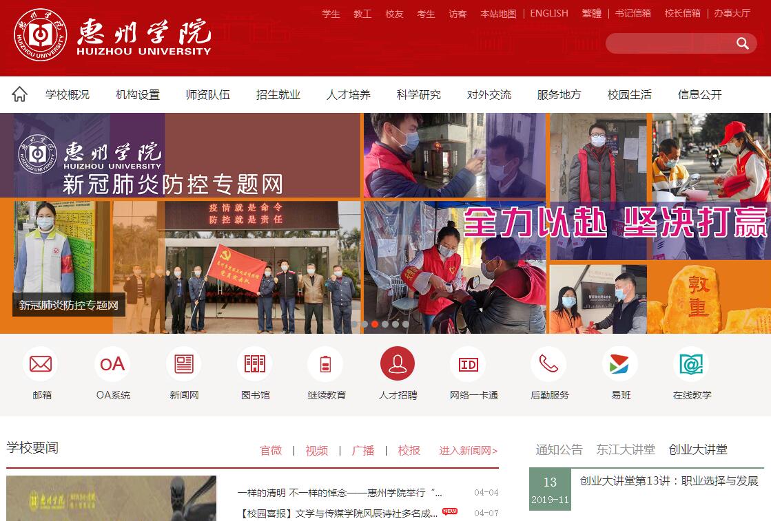 惠州學(xué)院是廣東省屬公辦綜合性本科大學(xué)、省首批普通本科轉(zhuǎn)型試點(diǎn)高校、省市共建本科高校、省碩士學(xué)位授予立項(xiàng)建設(shè)單位、省第二批省級(jí)雙創(chuàng)示范基地、省創(chuàng)建國家教師教育創(chuàng)新實(shí)驗(yàn)區(qū)立項(xiàng)建設(shè)院校。學(xué)校占地總面積2476.1畝,建筑面積39.21萬平方米。面向全國23個(gè)?。ㄊ小⒆灾螀^(qū))招生,現(xiàn)有全日制在校生達(dá)1.6萬人,成人高等學(xué)歷教育學(xué)生達(dá)1萬人。扎根地方,底蘊(yùn)深厚成效突出。學(xué)校前身為1946年創(chuàng)辦的廣東省立惠州師范學(xué)校,1978年升格為惠陽師范專科學(xué)校,90年代與西北紡織工學(xué)院惠州分院、惠州教育學(xué)院合并成立專科層次的惠州大學(xué),2000年升格為全日制普通本科院校。辦學(xué)72年來,學(xué)校始終堅(jiān)持服務(wù)國家需要、社會(huì)需求的,薪火相傳,繼往開來,形成了“閬苑儲(chǔ)英 人競向?qū)W”的校訓(xùn)和“敦重明辨 求真致用”的大學(xué)精神,為國家和社會(huì)培養(yǎng)和造就了近15萬名畢業(yè)生,成為東江流域高級(jí)應(yīng)用型人才的搖籃,為地方尤其是惠州經(jīng)濟(jì)社會(huì)發(fā)展提供了強(qiáng)勁的人才支撐、智力支持。育人為本,教育教學(xué)成果豐碩。學(xué)校目前設(shè)有18個(gè)二級(jí)學(xué)院、33個(gè)研究機(jī)構(gòu),開設(shè)54個(gè)本科專業(yè),涵蓋理學(xué)、工學(xué)、農(nóng)學(xué)、文學(xué)、法學(xué)、經(jīng)濟(jì)學(xué)、歷史學(xué)、管理學(xué)、教育學(xué)、藝術(shù)學(xué)等十大學(xué)科門類。有國家級(jí)特色專業(yè)、省級(jí)特色專業(yè)、省級(jí)綜合改革試點(diǎn)專業(yè)14個(gè)。學(xué)校貫徹“共商專業(yè)規(guī)劃、共議課程體系、共組師資隊(duì)伍、共建學(xué)習(xí)環(huán)境、共搭實(shí)踐平臺(tái)”的“五共”合作理念,大力實(shí)施校政行企合作、產(chǎn)教融合育人的人才培養(yǎng)模式,不斷完善實(shí)驗(yàn)教學(xué)、實(shí)習(xí)實(shí)訓(xùn)、畢業(yè)論文(設(shè)計(jì))、創(chuàng)新創(chuàng)業(yè)教育、課外科技活動(dòng)、社會(huì)實(shí)踐全過程相互聯(lián)系的實(shí)踐教學(xué)體系。努力推進(jìn)“一縣(區(qū))一特色產(chǎn)業(yè)學(xué)院”建設(shè),圍繞地方支柱產(chǎn)業(yè)籌建電子信息產(chǎn)業(yè)學(xué)院、精細(xì)化工產(chǎn)業(yè)學(xué)院、鞋包產(chǎn)業(yè)學(xué)院、旅游與健康產(chǎn)業(yè)學(xué)院等特色產(chǎn)業(yè)學(xué)院以及惠州學(xué)院大亞灣化工研究院,已成立旭日廣東服裝學(xué)院、惠州學(xué)院仲愷信息學(xué)院。學(xué)校擁有廣東省首批協(xié)同育人平臺(tái)——卓越法律人才協(xié)同育人平臺(tái),擁有廣東省實(shí)驗(yàn)教學(xué)示范中心10個(gè),國家級(jí)大學(xué)生校外實(shí)踐教學(xué)基地、省級(jí)大學(xué)生校外實(shí)踐教學(xué)基地、省級(jí)人才培養(yǎng)模式創(chuàng)新試驗(yàn)區(qū)17個(gè),擁有光電產(chǎn)業(yè)關(guān)鍵技術(shù)協(xié)同創(chuàng)新中心、大數(shù)據(jù)協(xié)同創(chuàng)新中心、新一代IT協(xié)同創(chuàng)新中心等一批校政行企共建的協(xié)同創(chuàng)新中心,獲得國家級(jí)教學(xué)成果獎(jiǎng)、省級(jí)教學(xué)成果獎(jiǎng)10項(xiàng)。近年來,學(xué)生在省級(jí)以上學(xué)科競賽累計(jì)獲獎(jiǎng)千余項(xiàng),在美國數(shù)學(xué)建模競賽、全國電子設(shè)計(jì)大賽、全國大學(xué)生嵌入式設(shè)計(jì)大賽、全國師范院校師范生教學(xué)技能大賽、全國智能汽車總決賽等國內(nèi)外大賽中榮獲殊榮。畢業(yè)生素以“下得去、留得住、干得好”深受用人單位的青睞,2017年,我校畢業(yè)生就業(yè)率96.86%。特色鮮明,學(xué)科科研結(jié)構(gòu)優(yōu)化。學(xué)校瞄準(zhǔn)惠州市創(chuàng)新驅(qū)動(dòng)發(fā)展戰(zhàn)略,緊密對(duì)接“2+2+N”現(xiàn)代產(chǎn)業(yè)體系的戰(zhàn)略布局,建有省級(jí)優(yōu)勢(shì)重點(diǎn)學(xué)科、省級(jí)特色重點(diǎn)學(xué)科3個(gè),建成或在建高層次科研創(chuàng)新平臺(tái)51個(gè),包括:廣東省重離子加速器工程技術(shù)研究中心、惠州市非開挖工程檢測(cè)與修復(fù)技術(shù)重點(diǎn)實(shí)驗(yàn)室等2個(gè)院士研究平臺(tái),廣東省服裝協(xié)同創(chuàng)新發(fā)展中心等11個(gè)省級(jí)科研平臺(tái),惠州學(xué)院-烏克蘭國立技術(shù)大學(xué)聯(lián)合研究院。擁有新型研發(fā)機(jī)構(gòu)6個(gè)、新型智庫4個(gè)。先后獲“中國產(chǎn)學(xué)研合作促進(jìn)獎(jiǎng)”等省部級(jí)以上科研獎(jiǎng)勵(lì)5項(xiàng)。夏佳文院士領(lǐng)銜、依托學(xué)校“重離子加速器研發(fā)中心”組建的離子治療癌癥腫瘤裝置研發(fā)團(tuán)隊(duì),入選廣東省“珠江人才計(jì)劃”引進(jìn)第六批創(chuàng)新創(chuàng)業(yè)團(tuán)隊(duì)。師資優(yōu)良,國際合作日益深化?,F(xiàn)有專任教師780名,其中教授(正高)102名,副教授(副高)253名,博士268名。現(xiàn)有雙聘院士3名,柔性引進(jìn)長江學(xué)者特聘教授1名、中組部國家“千人計(jì)劃”人才1名,享受國務(wù)院特殊津貼教師2名,全國優(yōu)秀教師1名,廣東省“千百十