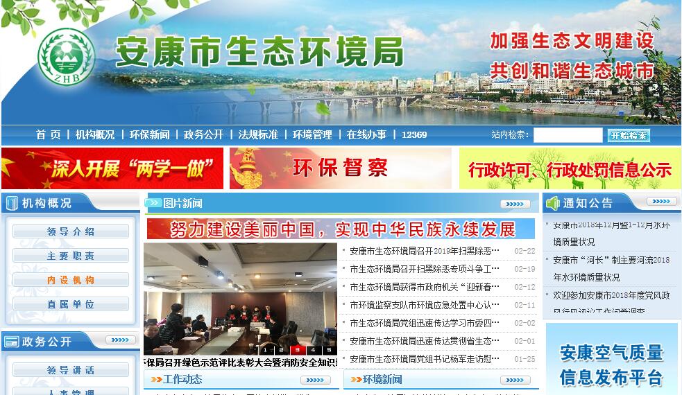 安康市環(huán)境保護局主要職責:(一)負責建立健全市級環(huán)境保護基本制度。貫徹執(zhí)行中、省環(huán)境保護基本制度、方針、政策和法規(guī);擬定并組織實施市級地方性環(huán)境保護規(guī)范性文件;組織編制全市環(huán)境保護規(guī)劃和環(huán)境功能區(qū)劃,監(jiān)督實施中、省確定的重點區(qū)域、流域污染防治規(guī)劃和飲用水水源環(huán)境保護規(guī)劃,參與制定全市主體功能區(qū)劃。(二)負責統(tǒng)籌協(xié)調(diào)和監(jiān)督管理全市重大環(huán)境問題。牽頭協(xié)調(diào)重特大環(huán)境污染事故和生態(tài)破壞事件的調(diào)查處理,指導協(xié)調(diào)縣區(qū)和市高新區(qū)等區(qū)域重特大環(huán)境事件的應(yīng)急、預警工作,協(xié)調(diào)解決有關(guān)跨區(qū)域、流域重大環(huán)境問題。(三)承擔落實全市減排目標責任。組織制定全市主要污染物排放總量控制制度并監(jiān)督實施,貫徹落實排污許可制度,落實實施總量控制的污染物名稱和控制指標,督查、督辦、核查各縣區(qū)、高新區(qū)和市直部門污染減排任務(wù)完成情況,實施環(huán)境保護目標責任制、總量減排考核制。(四)負責提出全市環(huán)境保護領(lǐng)域固定資產(chǎn)投資規(guī)模和方向、市級財政性資金安排的意見。依法負責排污費的征收和稽查。參與指導和推動全市循環(huán)經(jīng)濟和環(huán)保產(chǎn)業(yè)發(fā)展,參與應(yīng)對氣候變化工作。(五)承擔全市從源頭上預防、控制環(huán)境污染和環(huán)境破壞的監(jiān)督管理責任。受市政府委托對重大經(jīng)濟和技術(shù)政策、發(fā)展規(guī)劃以及重大經(jīng)濟開發(fā)計劃進行環(huán)境影響評價審查,對涉及全市環(huán)境保護的地方性法規(guī)、規(guī)章草案提出有關(guān)環(huán)境影響評價方面的意見,按規(guī)定審批或?qū)彶槿兄卮箝_發(fā)建設(shè)區(qū)域、綜合性規(guī)劃、專項規(guī)劃、建設(shè)項目環(huán)境影響評價文件。(六)負責全市環(huán)境污染防治的監(jiān)督管理。統(tǒng)籌協(xié)調(diào)全市重點區(qū)域、流域的污染防治工作。組織實施水體、大氣、土壤、噪聲、光、惡臭、廢氣、固體廢物、有毒化學品、機動車、重金屬等污染防治管理制度。會同有關(guān)部門監(jiān)督管理飲用水水源地環(huán)境保護工作。加強對大氣污染防治工作的統(tǒng)一規(guī)劃、指導和監(jiān)督考核。組織實施重點區(qū)域、流域污染聯(lián)防聯(lián)控與集中整治。組織實施全市強制性清潔生產(chǎn)審核。(七)指導、協(xié)調(diào)、監(jiān)督全市生態(tài)保護和農(nóng)村環(huán)境保護工作。擬定全市生態(tài)保護規(guī)劃,組織評估生態(tài)環(huán)境質(zhì)量狀況,監(jiān)督對生態(tài)環(huán)境有影響的自然資源開發(fā)利用活動、重要生態(tài)環(huán)境建設(shè)和生態(tài)破壞恢復工作。指導、協(xié)調(diào)、監(jiān)督各類型的自然保護區(qū)、風景名勝區(qū)、森林公園的環(huán)境保護工作,協(xié)調(diào)和監(jiān)督生物多樣性保護、野生動植物保護、濕地環(huán)境保護工作。指導、協(xié)調(diào)城鎮(zhèn)和農(nóng)村環(huán)境綜合整治、農(nóng)村生態(tài)環(huán)境保護、生態(tài)示范區(qū)建設(shè)和生態(tài)農(nóng)業(yè)建設(shè)。(八)負責全市核安全和輻射安全的監(jiān)督管理。貫徹執(zhí)行中省核與輻射安全政策、規(guī)劃和技術(shù)標準。參與核事故應(yīng)急處理,負責輻射環(huán)境事故應(yīng)急處理工作。監(jiān)督管理核設(shè)施安全、放射源安全,監(jiān)督管理核設(shè)施、核技術(shù)應(yīng)用、電磁輻射、伴有放射性礦產(chǎn)資源開發(fā)利用中的污染防治。負責生產(chǎn)、銷售、使用放射性同位素與射線裝置的單位安全防護和統(tǒng)一監(jiān)督管理。對核材料的管制和民用核安全設(shè)備的設(shè)計、制造、安裝和無損檢驗活動實施監(jiān)督管理。(九)負責全市環(huán)境監(jiān)測和信息發(fā)布。貫徹執(zhí)行中省環(huán)境監(jiān)測制度和規(guī)范,組織實施全市環(huán)境質(zhì)量監(jiān)測和污染源監(jiān)督性監(jiān)測。組織建設(shè)和管理環(huán)境信息中心和監(jiān)控平臺,編制全市環(huán)境質(zhì)量報告書,建立和實行環(huán)境質(zhì)量公告制度,發(fā)布全市環(huán)境綜合性報告和重大環(huán)境信息。(十)開展全市環(huán)境保護科技和對外合作交流工作。監(jiān)督執(zhí)行中省頒布的各類環(huán)境質(zhì)量標準和污染物排放標準,組織環(huán)境保護科技發(fā)展、科學研究和技術(shù)工程示范。組織市級環(huán)境科技成果的鑒定、交流與推廣。負責開展國內(nèi)環(huán)境保護方面交流合作工作。(十一)組織指導和協(xié)調(diào)全市環(huán)境保護宣傳教育工作,制定并組織實施全市環(huán)境保護宣傳教育綱要,開展生態(tài)文明建設(shè)和環(huán)境友好型社會建設(shè)的宣傳教育工作,推動公眾和社會組織參與環(huán)境保護。依法對保護和改善環(huán)境有顯著成績的單位和個人給予表彰和獎勵。(十二)承辦市政府交辦的其他事項。