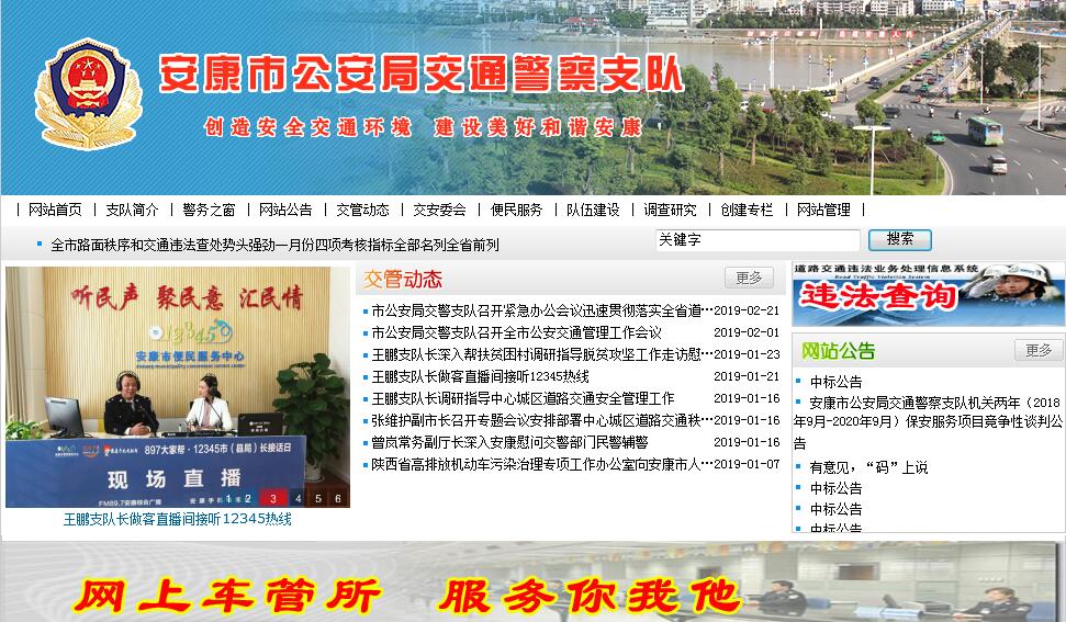 安康市位于陜西省南部,地處祖國腹地,東徑108°01'—110°12',北緯31°12'—33°19'之間。北偎秦嶺,南傍巴山,東鄰湖北,西毗漢中,與四川、重慶、湖北等省市接壤,素有“秦頭楚尾”之稱。東西間寬約200公里,南北間長(zhǎng)約240公里,總面積約233391平方公里,總?cè)丝诰?94萬。長(zhǎng)江最大支流—漢水從中部自西向東橫貫全市十縣、區(qū),形成南北高山屏障、河谷盆地居中的兩山夾一川的地形。全市氣候溫和,雨量充沛,山川秀麗,景色宜人,自然條件十分優(yōu)越。安康市公安局交警支隊(duì)位于安康市巴山東路,占地面積1000余平方米。交警支隊(duì)機(jī)關(guān)下設(shè)政辦科、交管科、車管所、事故科、法制宣傳科和公路民警巡查大隊(duì),共有民警52名。支隊(duì)下轄10個(gè)縣(區(qū))交警大隊(duì),1個(gè)高速公路交通警察大隊(duì),54個(gè)交警中隊(duì),全市公安交警系統(tǒng)共有民警660名,管轄公路里程14340公里,其中國省道1035公里,縣鄉(xiāng)道路4480公里,村級(jí)公路8825公里。管理各類機(jī)動(dòng)車12萬余輛,駕駛員14萬余名。交警支隊(duì)承擔(dān)著全市的道路交通管理工作,維護(hù)道路交通秩序,查處各類交通違法,負(fù)責(zé)道路交通事故勘查和責(zé)任認(rèn)定,辦理道路交通治安案件,偵破道路交通肇事案件,辦理各類機(jī)動(dòng)車輛登記上戶和車輛檢審驗(yàn),駕駛員考核、發(fā)證、檢審驗(yàn)和管理等。近年來,交警支隊(duì)在市委、市政府、省交警總隊(duì)和市公安局黨委的正確領(lǐng)導(dǎo)下,認(rèn)真貫徹“三個(gè)代表”重要思想,把為人民服務(wù),讓人民滿意做為工作的出發(fā)點(diǎn)和落腳點(diǎn),緊緊圍繞全市經(jīng)濟(jì)建設(shè)工作中心,按照上級(jí)公安機(jī)關(guān)的統(tǒng)一安排部署,始終把降事故、保暢通,創(chuàng)造良好道路交通環(huán)境做為工作的重點(diǎn),認(rèn)真抓好事故源頭管理,排查治理事故多發(fā)點(diǎn)段,建立事故預(yù)防機(jī)制,持續(xù)不斷地開展交通秩序整治,嚴(yán)查各類交通違法,嚴(yán)格規(guī)范車輛和駕駛員的管理,不斷深化平安大道創(chuàng)建工作和實(shí)施暢通工程,積極創(chuàng)建交通安全村、交通安全學(xué)校和交通安全社區(qū),實(shí)現(xiàn)了道路交通秩序明顯好轉(zhuǎn),四項(xiàng)指數(shù)連續(xù)四年持續(xù)下降,車輛規(guī)范化管理水平穩(wěn)步提高,執(zhí)法管理力度不斷加大的工作目標(biāo)。在隊(duì)伍建設(shè)上,堅(jiān)持把政治思想教育放在首位,認(rèn)真學(xué)習(xí)“三個(gè)代表”重要思想,牢固樹立全心全意為人民服務(wù)的宗旨觀念,開展保持共產(chǎn)黨員先進(jìn)性教育、“民警紀(jì)律作風(fēng)整頓”,貫徹“五條禁令”、“遵紀(jì)守法,執(zhí)法為民”以及“大討論、大練兵、大接訪”等專項(xiàng)教育整頓活動(dòng),建立和完善交通管理工作和隊(duì)伍建設(shè)綜合考評(píng)機(jī)制,進(jìn)一步深化機(jī)構(gòu)和干部人事制度改革,建立競(jìng)爭(zhēng)激勵(lì)機(jī)制,不斷增強(qiáng)隊(duì)伍活力,全市交警隊(duì)伍的執(zhí)法素質(zhì)和整體精神面貌發(fā)生了明顯的變化。為了適應(yīng)飛速發(fā)展的形勢(shì),全市交警系統(tǒng)從科技強(qiáng)警之路,向科技要警力,克服重重困難投入資金建設(shè)了機(jī)動(dòng)車管理網(wǎng)絡(luò)、交通違法管理網(wǎng)絡(luò)和公安交警三級(jí)信息網(wǎng)絡(luò),為一線交警大隊(duì)、中隊(duì)配備了車輛、通訊器材、雷達(dá)測(cè)速儀、電子警察車、酒精測(cè)量?jī)x等一大批先進(jìn)的裝備,建成了駕駛員無紙化考試和電子樁考系統(tǒng),極大地提高了道路交通安全管理工作的科技含量,為全市道路交通安全管理工作增強(qiáng)了發(fā)展后勁。2002年以來,全市公安交警系統(tǒng)共有30個(gè)單位和近百名民警分別受到表彰獎(jiǎng)勵(lì),市交警支隊(duì)先后被評(píng)為全國交警系統(tǒng)預(yù)防事故先進(jìn)單位和全省交警系統(tǒng)“創(chuàng)佳爭(zhēng)優(yōu)”先進(jìn)集體,受到了市委、市政府、省交警總隊(duì)和市公安局黨委的充分肯定。