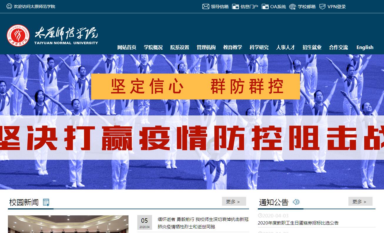 太原師范學(xué)院是一所以本科師范教育為主、非師范教育和碩士研究生教育協(xié)調(diào)發(fā)展的全日制高等師范院校,1999年3月經(jīng)國家教育部批準(zhǔn),由山西大學(xué)師范學(xué)院、太原師范??茖W(xué)校和山西省教育學(xué)院合并組建而成。山西大學(xué)師范學(xué)院創(chuàng)立于改革開放年代,1988年開辦本科高等師范教育;太原師范??茖W(xué)校成立于建國初期,1958年在山西大學(xué)堂原址辦學(xué);山西省教育學(xué)院誕生于民國年間,1929年在國民師范舊址創(chuàng)建。在各自長期的辦學(xué)歷程中,它們弦歌不輟、薪火傳承,譽(yù)滿三晉、聲名遠(yuǎn)播,為國家建設(shè)、山西基礎(chǔ)教育和經(jīng)濟(jì)社會(huì)發(fā)展培養(yǎng)了大批合格人才。學(xué)校新校區(qū)占地面積約1569畝,總建筑面積約51萬平方米?,F(xiàn)有全日制在校本科生23323名,碩士研究生325名,各類成人學(xué)生2466名,生源來自全國28個(gè)省、市、自治區(qū)。新學(xué)院組建近二十年來,銳意進(jìn)取,開拓奮進(jìn),育人質(zhì)量和辦學(xué)水平逐年提升,呈現(xiàn)出欣欣向榮的發(fā)展態(tài)勢。教學(xué)質(zhì)量不斷提高。學(xué)?,F(xiàn)有教學(xué)院(系)20個(gè),本科專業(yè)及方向64個(gè),分布在經(jīng)濟(jì)學(xué)、法學(xué)、教育學(xué)、文學(xué)、歷史學(xué)、理學(xué)、工學(xué)、管理學(xué)、藝術(shù)學(xué)等九大學(xué)科門類。擁有2個(gè)國家級(jí)特色專業(yè),2個(gè)省級(jí)優(yōu)勢專業(yè),5個(gè)省級(jí)特色專業(yè),6門省級(jí)精品課程,3個(gè)省級(jí)人才培養(yǎng)模式創(chuàng)新實(shí)驗(yàn)區(qū),6個(gè)省級(jí)實(shí)驗(yàn)教學(xué)示范中心。此外開設(shè)了科學(xué)教育、人文教育等通才教育專業(yè),在創(chuàng)新人才培養(yǎng)模式方面進(jìn)行了成功探索。實(shí)踐教學(xué)成果豐碩。體育系毛飛豫同學(xué)獲得第十五屆全國大學(xué)生游泳錦標(biāo)賽女子甲組50米蝶泳冠軍,體現(xiàn)了我校競技體育的發(fā)展水平。行知舞蹈團(tuán)登上了人民大會(huì)堂“百花迎春”中國文學(xué)藝術(shù)界聯(lián)歡會(huì)的舞臺(tái),新華網(wǎng)、中國教育報(bào)等媒體進(jìn)行了專題報(bào)道。一大批學(xué)子在國家級(jí)比賽中摘金奪銀、屢獲佳績,彰顯了學(xué)校優(yōu)良的人才培養(yǎng)質(zhì)量。學(xué)科科研水平明顯提升。學(xué)?,F(xiàn)有1個(gè)山西省“1331工程”優(yōu)勢特色學(xué)科,2個(gè)山西省重點(diǎn)建設(shè)學(xué)科,4個(gè)省級(jí)重點(diǎn)扶持學(xué)科;3個(gè)山西省協(xié)同創(chuàng)新中心(其中一個(gè)為協(xié)同創(chuàng)新中心協(xié)同單位),1個(gè)山西省工程技術(shù)研究中心,1個(gè)山西省“1331”工程重點(diǎn)創(chuàng)新團(tuán)隊(duì),1個(gè)山西省高校思想政治工作協(xié)同育人中心(培育),2個(gè)山西省普通高等學(xué)校人文社會(huì)科學(xué)重點(diǎn)研究基地,1個(gè)山西省高等學(xué)校重點(diǎn)實(shí)驗(yàn)室。近五年,學(xué)校共承擔(dān)國家自然科學(xué)基金和社會(huì)科學(xué)基金項(xiàng)目42項(xiàng),國家藝術(shù)基金項(xiàng)目4項(xiàng),國家外專局項(xiàng)目1項(xiàng),承擔(dān)省部級(jí)項(xiàng)目350項(xiàng);獲山西省社會(huì)科學(xué)研究優(yōu)秀成果一等獎(jiǎng)3項(xiàng),山西省科學(xué)技術(shù)獎(jiǎng)技術(shù)發(fā)明類二等獎(jiǎng)1項(xiàng),山西省社會(huì)科學(xué)研究優(yōu)秀成果二等獎(jiǎng)14項(xiàng)、三等獎(jiǎng)28項(xiàng);獲國內(nèi)授權(quán)專利47項(xiàng),其中發(fā)明專利17項(xiàng)。主辦有《太原師范學(xué)院學(xué)報(bào)》(社會(huì)科學(xué)版和自然科學(xué)版)、《教學(xué)與管理》等學(xué)術(shù)期刊。研究生教育穩(wěn)步發(fā)展?,F(xiàn)有中國語言文學(xué)、數(shù)學(xué)、地理學(xué)、中國史、生物學(xué)、藝術(shù)學(xué)理論6個(gè)碩士學(xué)位授權(quán)一級(jí)學(xué)科,工程碩士(計(jì)算機(jī)技術(shù)領(lǐng)域)、教育碩士、藝術(shù)碩士、旅游管理碩士4個(gè)碩士專業(yè)學(xué)位授權(quán)點(diǎn)。師資實(shí)力明顯增強(qiáng)?,F(xiàn)有教職工1424人,其中專任教師895人,包括教授111人,副教授312人,博士176人。教師中享受國務(wù)院政府特殊津貼專家3名,國家“萬人計(jì)劃”青年拔尖人才1名,省委聯(lián)系的高級(jí)專家4名,山西省高校中青年拔尖創(chuàng)新人才1名,山西省科技重點(diǎn)創(chuàng)新團(tuán)隊(duì)帶頭人1名,山西省高校優(yōu)秀創(chuàng)新團(tuán)隊(duì)帶頭人1名,山西省青年科學(xué)家獎(jiǎng)獲得者1名,山西省學(xué)術(shù)技術(shù)帶頭人8名,山西省宣傳文化系統(tǒng)“四個(gè)一批”人才3名,山西省優(yōu)秀研究生導(dǎo)師1名,山西省教學(xué)名師14名,山西省高等學(xué)校優(yōu)秀青年學(xué)術(shù)帶頭人8名;碩士研究生導(dǎo)師167名,一批教師受聘擔(dān)任陜西師范大學(xué)、東北師范大學(xué)、山西大學(xué)等高校的博士、碩士研究生導(dǎo)師。對(duì)外合作交流取得突破。學(xué)校已與國內(nèi)外10多所高校建立了友好合作關(guān)系,與美國紐約州立大學(xué)奧爾巴尼分校、北密歇根大學(xué)、菲斯克大學(xué)、西北拿撒勒大學(xué)、多米尼克大學(xué),英