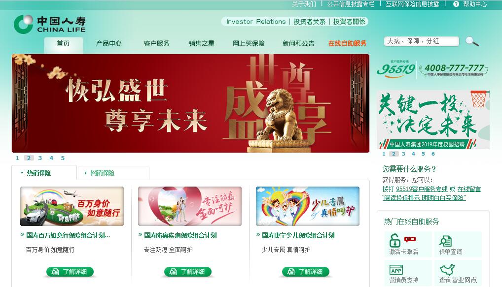 中國人壽保險股份有限公司是國內(nèi)壽險行業(yè)的龍頭企業(yè),總部位于北京, 注冊資本282.65億元人民幣。作為《財富》世界500強和世界品牌500強企業(yè)——中國人壽保險(集團)公司的核心成員,公司以悠久的歷史、雄厚的實力、專業(yè)領先的競爭優(yōu)勢及世界知名的品牌贏得了社會廣泛客戶的信賴,始終占據(jù)國內(nèi)保險市場領導者的地位,被譽為中國保險業(yè)的“中流砥柱”。經(jīng)過長期的發(fā)展和積淀,中國人壽擁有比肩全球的雄厚實力。截至2017年,中國人壽保險(集團)公司已連續(xù)十五年入選《財富》“世界500強”。作為中國人壽保險(集團)公司的核心成員單位,截至2017年12月31日,中國人壽保險股份有限公司總資產(chǎn)達人民幣28,975.91億元,位居國內(nèi)壽險行業(yè)榜首。2017年公司營業(yè)收入為6,531.95億元,同比增長18.8%。2017年公司保費收入5,119.66億元,同比增長18.9%,市場份額約為19.7%,繼續(xù)占據(jù)壽險市場主導地位;其中,首年期交保費為人民幣1,131.21億元,同比增長20.4%,十年期及以上首年期交保費為人民幣660.03億元,同比增長28.5%。續(xù)期保費達人民幣2,881.06 億元,同比增長28.9%。公司一年新業(yè)務價值為人民幣601.17億元,同比增長21.9%。2017年底公司總市值達1,208.34億美元,位居全球上市壽險公司首位。中國人壽一直致力于打造世界一流的金融保險品牌,通過長期持續(xù)的品牌建設,中國人壽躋身世界知名強勢品牌行列,品牌價值和品牌影響力不斷提升。根據(jù)世界品牌實驗室(World Brand Lab)發(fā)布的2017年(第十四屆)《中國500最具價值品牌》排行榜,中國人壽蟬聯(lián)中國500最具價值品牌第4位,品牌價值達人民幣2,871.56億元,比去年上升了335.28億元,在保險行業(yè)中繼續(xù)位居首位。
