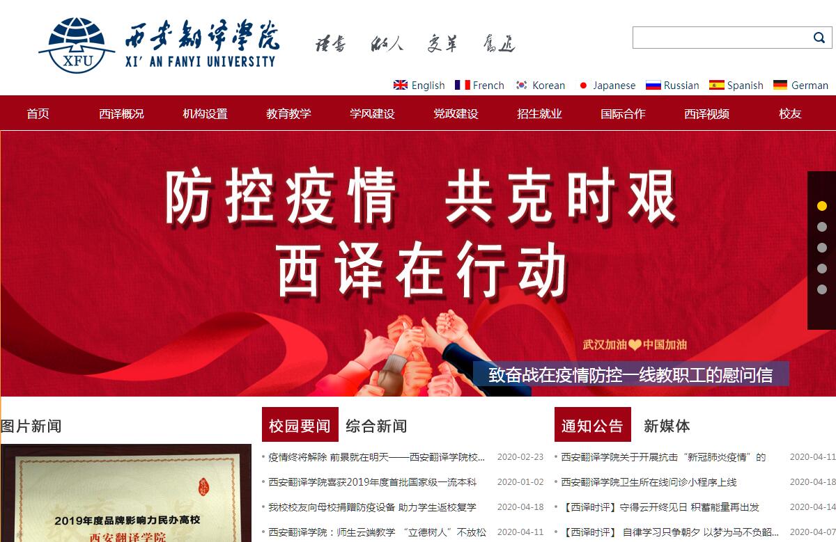 西安翻譯學院由我國當代杰出教育家、民辦教育拓荒者丁祖詒先生創(chuàng)辦。學校座落在西安市南郊風景秀麗的終南山下,其前身為創(chuàng)建于1987年的西安翻譯培訓學院。2000年經(jīng)陜西省人民政府批準成立西安翻譯職業(yè)學院,實施全日制高等職業(yè)教育。2005年經(jīng)教育部批準升格為本科高校,更名為西安翻譯學院。2009年獲得學士學位授予權。2013年順利通過教育部本科教學工作合格評估。2014年接受陜西省委、省政府巡視診斷,同年被省教育廳確定為首批應用型轉(zhuǎn)型試點院校。2016年獲批陜西省“管辦評”試點院校。2018年被陜西省教育廳評定為陜西省一流學院建設單位。經(jīng)過三十年的辦學實踐,已發(fā)展成一所以文、商科為主,以外語為特色,多學科協(xié)調(diào)發(fā)展、具有重要影響和鮮明特色的民辦大學。學校始終秉承“敢為人先、無私奉獻、愛生如子、厚德敦行”的西譯精神;積極踐行“高尚教育”理念;堅持“不以營利為目的的社會主義公益性辦學方向”;不斷創(chuàng)新“外語+專業(yè)+現(xiàn)代技能”和“專業(yè)+外語+現(xiàn)代技能”的應用、復合型人才培養(yǎng)模式和“全封閉、準軍事化”嚴格的學生管理模式,提出了在“十三五”末,建成具有地方示范作用的民辦大學的階段性發(fā)展目標。學校下設英文學院、亞歐語言學院、教育學院、商學院、文學院、藝術學院、工程技術學院、翻譯研修學院、健康與運動學院、馬克思主義學院、創(chuàng)新創(chuàng)業(yè)學院及繼續(xù)教育學院12個二級學院、體育部和公共藝術教育中心。學院開設本科專業(yè)36個,??茖I(yè)24個,涵蓋文、經(jīng)、管、工、藝、法、教育、醫(yī)學等八大學科門類。學校成立了陜西終南學社、翻譯研究所、書畫藝術研究所、電子商務運營研究中心和陜西旅游文化研究中心等十多個研究機構(gòu)?,F(xiàn)有省級一流專業(yè)5個,省級專業(yè)綜合改革試點項目5個,省級重點、特色專業(yè)、重點扶持專業(yè)10個,省級精品資源共享課15門,省級教學團隊6個,省級優(yōu)秀教材6部,省級人才培養(yǎng)模式創(chuàng)新實驗區(qū)6個,省級實驗教學示范中心4個,省級虛擬仿真試驗教學中心2個,省級教學成果獎5項,省級教學改革研究項目19項;現(xiàn)有校級專業(yè)綜合改革試點項目9個,校級特色專業(yè)8個,校級精品課程39門,校級教學團隊21個,校級教學名師25名,校級人才培養(yǎng)模式創(chuàng)新實驗區(qū)7個,校級實驗教學示范中心5個。學校始終堅持社會主義辦學方向,以西譯精神為支撐,以文化育人為根本,積極弘揚社會主義核心價值觀,努力開展校園文化建設。學校依托終南學社,舉辦終南大講堂,創(chuàng)辦《西安翻譯學院學報》和《陜西終南文化研究》等學術期刊,編輯出版《西譯文叢》和《終南文庫》等系列叢書。學校堅持“知識、能力、素質(zhì)”三位一體的育人模式。定期舉辦春、秋詩會,“人文天地”文藝會演和中秋晚會、元旦晚會等。50個學生社團開展豐富多彩的校園文化活動,加強第二課堂建設,全面提高學生綜合素質(zhì)。通過美化校園環(huán)境,營造人文氛圍,推進各類學科競賽,強化個性培養(yǎng)和準軍事化管理,形成了獨具特色的校園文化。近年來,學生獲得國家、省、市大學生科技、文體活動競賽等各類獎勵千余項。學校全面貫徹落實新修訂的《民辦教育促進法》,按照陜西省委提出的“三項機制”,率先打破民辦教育家族化傳統(tǒng),構(gòu)建了 “四位一體”的現(xiàn)代大學運行機制:舉辦者擁有法人財產(chǎn)監(jiān)督管理權,董事會擁有決策權,校務會獨立行使辦學管理權,校黨委發(fā)揮政治核心和監(jiān)督保障作用,實現(xiàn)了民辦高等教育科學規(guī)范管理的重大突破,對調(diào)動學校各方積極性,堅定不移地走內(nèi)涵發(fā)展、特色發(fā)展、品牌發(fā)展、融合發(fā)展道路具有深遠意義。學校從2016年初就把“一流學院、一流專業(yè)”建設納入日程,積極開展創(chuàng)建工作。為提升師資層次和水平,設立了“終南學者”和“首席教授”崗位;通過完善教師評價和激勵機制,大力開展“教師能力提升計劃”、“中青年教師博士化工程”等,為“雙一流”建設提供人才保障。學校根據(jù)自身特點及發(fā)展新常態(tài),抓住“一帶一路”戰(zhàn)略,堅持“四合作、五共同”,深化校企合作,與陜西省貿(mào)促會、阿里巴巴集團、北京廣慧金通教育科技有限公司等200多家政府、企事業(yè)單位簽署深度戰(zhàn)略合作協(xié)議或?qū)嵤┯唵问脚囵B(yǎng),形成資源共建、全程參與、互利共贏的新型產(chǎn)教深度融合的合作育人模式;學校構(gòu)建了“一核心、兩平臺、三層次、全過程”的實踐教學體系,形成融“教、學、做”為一體的實踐教學模式,營造全外語氛圍,重點打造語言服務、教育服務、健康服務三大服務類應用專業(yè)群,建設“語言大數(shù)據(jù)智庫平臺”(軟硬件投資約2000萬元),培養(yǎng)服務區(qū)域經(jīng)濟社會發(fā)展需要的應用型高級專門人才。學校堅持開放辦學,積極開展校際交流與合作。與西北大學、解放軍西安通信學院、延安大學等省內(nèi)大學建立幫扶關系。與美國、加拿大、日本、德國、西班牙、韓國、中國香港等十幾個國家和地區(qū)的50余所高校建
