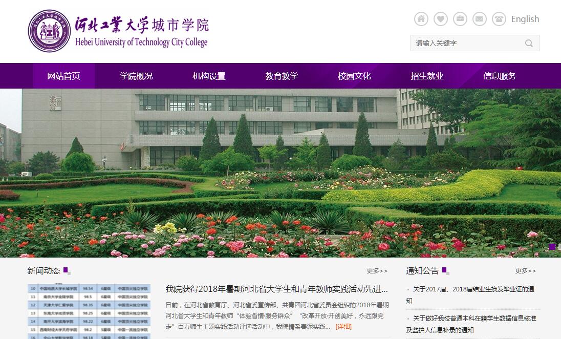 河北工業(yè)大學城市學院于2001年經(jīng)河北省人民政府批準成立,并于2004年經(jīng)教育部重新審核予以確認,在天津市紅橋區(qū)和河北省廊坊市分別設(shè)有校區(qū)。河北工業(yè)大學城市學院辦學所依托的母體學校——河北工業(yè)大學的前身是創(chuàng)辦于1903年的北洋工藝學堂,是我國最早的培養(yǎng)工業(yè)人才的高等學校,創(chuàng)辦了全國最早的高校校辦工廠。1929年改稱河北省立工業(yè)學院,1995年更名為河北工業(yè)大學。114年來,學校始終秉承“勤慎公忠”的校訓精神,堅持“工學并舉”的辦學特色,形成了“勤奮、嚴謹、求實、進取”的優(yōu)良校風,現(xiàn)已發(fā)展成為一所以工為主、多學科協(xié)調(diào)發(fā)展的國家“211工程”重點建設(shè)高校,是河北省人民政府、天津市人民政府和教育部共建高校,2016年入選河北省“國家一流大學建設(shè)”一層次學校,2017年入選國家“世界一流學科”建設(shè)高校,學校將重點建設(shè)“先進裝備工程與技術(shù)”學科群。近年來,材料科學、化學、工程學三個學科領(lǐng)域分別進入ESI全球排名前1%。母體學校設(shè)有18個教學機構(gòu),建有71個本科專業(yè),涵蓋工、理、經(jīng)、管、文、法、藝七大學科門類。擁有2個國家重點學科、4個河北省強勢特色學科、20個河北省級重點學科;3個學科入選河北省世界一流學科建設(shè)項目,4個學科入選河北省國家一流學科建設(shè)項目;納入了天津市學科建設(shè)體系,3個一級學科、5個特色學科(群)入選天津市“雙一流”建設(shè)名單,新增7個天津市重點學科;學校在國家第四輪學科評估中14個學科榜上有名,7個學科進入B級。擁有9個博士后科研流動站、10個一級博士學位授權(quán)學科、26個一級碩士學位授權(quán)學科、7個專業(yè)學位類別(含MBA和EMBA)、17個工程碩士授權(quán)領(lǐng)域,是全國地方工科院校中最早開展MBA教育的高校,同時也是河北省內(nèi)唯一開展EMBA教育的高校。母體學校大力實施人才強校工程,高水平人才引進和培養(yǎng)機制不斷完善,引才、聚才的氛圍越來越濃郁,人才工作不斷實現(xiàn)新突破。近年來,學校已全職引進和培養(yǎng)國家“千人計劃”入選者、“長江學者”、“國家杰出青年基金”獲得者、國家“萬人計劃”科技創(chuàng)新領(lǐng)軍人才7人,并成功引進數(shù)百名高水平博士,290余人具有國家級教學名師、“新世紀百千萬人才工程”國家級人選、國務(wù)院特殊津貼獲得者等省部級以上專家稱號。河北工業(yè)大學城市學院認真落實人才培養(yǎng)工作的中心地位,以創(chuàng)新創(chuàng)業(yè)教育改革統(tǒng)領(lǐng)教育教學改革,積極探索提高獨立學院教育教學質(zhì)量的途徑和手段,不斷創(chuàng)新人才培養(yǎng)模式。學院加大教學改革的力度,優(yōu)化課程體系結(jié)構(gòu),不斷強化質(zhì)量意識,努力適應城市學院“應用技術(shù)型大學”的辦學定位,主動適應經(jīng)濟發(fā)展新常態(tài),堅持以服務(wù)區(qū)域經(jīng)濟社會發(fā)展為重點的教學體系改革。與北大縱橫管理咨詢集團、天津企業(yè)創(chuàng)新人才促進會、天津華明高新區(qū)管理委員會推進產(chǎn)教融合,進行深度合作。近兩年來,學院學生參加全國及河北省、天津市各項各類競賽,有160余人次獲得包括國際以及國家特等、一等獎項在內(nèi)的各類獎項。河北工業(yè)大學城市學院始終把立德樹人作為教育的根本任務(wù), 實現(xiàn)全員育人、全程育人、全方位育人,實施“百名非物質(zhì)文化遺產(chǎn)傳習人”工程,并結(jié)出累累碩果,屢出先進典型。冰窟救人“河北最美大學生”周桂川同學,見義勇為勇抓小偷的齊賀同學,遼寧艦退役士兵“藍色勇士”王雅道同學、古彩戲法傳習人王藝達同學以及“感動中國”2014年度人物楊乃斌同學等均為學院素質(zhì)教育的杰出代表,他們的事跡被全國多家媒體報道700多篇(次),向全國、向世界釋放了河北工業(yè)大學城市學院的正能量,弘揚了學院的優(yōu)秀文化。河北工業(yè)大學城市學院就業(yè)指導中心被評為“河北省高等院校畢業(yè)生就業(yè)工作示范中心”。河北工業(yè)大學城市學院被評為2014年全國教育系統(tǒng)先進集體、2015中國十佳獨立學院、2016-2017全國教育改革創(chuàng)新示范院校、2017京津冀影響力品牌等榮譽稱號。學院發(fā)展邁進了“新時代”、踏上了新征程。 學院正在搶抓機遇、乘勢而上,以應用技術(shù)型人才為培養(yǎng)目標,充分發(fā)揮精誠團結(jié)、奮斗拼搏、開拓創(chuàng)新、爭創(chuàng)一流的優(yōu)良傳統(tǒng),以時不我待、只爭朝夕的精神,不斷深化學院綜合改革,著力提升服務(wù)區(qū)域經(jīng)濟社會發(fā)展的能力和水平,同心同德,同向同行,凝心聚力,奮發(fā)有為,力爭將學院建設(shè)成質(zhì)量高、效益好、影響大,科學發(fā)展、特色鮮明的中國一流獨立學院!