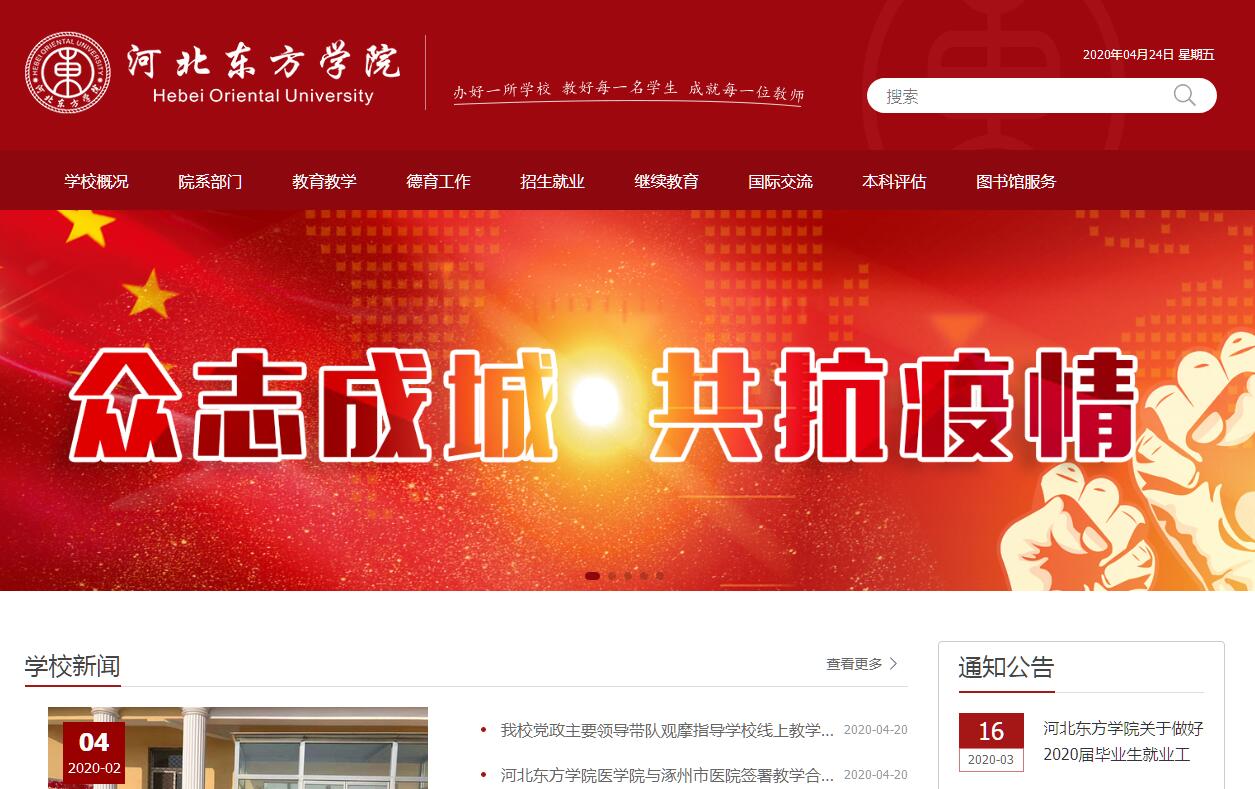 河北東方學(xué)院是教育部批準(zhǔn)、河北省教育廳主管的全日制普通本科高校。學(xué)?,F(xiàn)有在校生近萬人,涵蓋醫(yī)學(xué)、工學(xué)、管理學(xué)、藝術(shù)學(xué)等多個(gè)學(xué)科門類,設(shè)有本科專業(yè)13個(gè),專科專業(yè)30個(gè)。學(xué)校擁有廊坊和北京兩個(gè)校區(qū),廊坊校區(qū)位于北京南東方大學(xué)城內(nèi),距天安門廣場40公里,與首都二機(jī)場毗鄰。占地面積782畝,建筑面積40萬平方米,教學(xué)設(shè)施、生活設(shè)施完善。校區(qū)環(huán)境優(yōu)美,銀杏樹、梧桐樹郁郁蔥蔥,雄偉的羅馬柱屹立于正門兩側(cè)。北京站805路公交車直達(dá)學(xué)院。北京校區(qū)位于京津冀核心區(qū),有“天子腳下、御駕行宮”美譽(yù)的北京東燕郊高新區(qū),占地面積200余畝,建筑面積20余萬平方米,教學(xué)設(shè)施、生活設(shè)施完善,目前承擔(dān)學(xué)校的對外培訓(xùn)、繼續(xù)教育等任務(wù),由國貿(mào)始發(fā)的811至815路公交車直達(dá)校園。學(xué)校師資力量雄厚,現(xiàn)有教職工600余人。30%以上的專任教師有副教授以上職稱; 33%以上的專任教師有碩士、博士學(xué)位;專任教師中有國務(wù)院津貼獲得者,有院士工作室,多位三級教授。??茖W(xué)生入學(xué)后,與本科生共享優(yōu)質(zhì)師資,為今后的學(xué)習(xí)深造打下堅(jiān)實(shí)的基礎(chǔ)。學(xué)校設(shè)有醫(yī)學(xué)院、交通學(xué)院、管理學(xué)院、文物藝術(shù)學(xué)院等4個(gè)二級學(xué)院,設(shè)有基礎(chǔ)教學(xué)部、圖書館、體育館、繼續(xù)教育學(xué)院、附屬愛德堡醫(yī)院等多個(gè)二級教輔單位。學(xué)校圖書館建筑面積1.7萬平方米,館藏圖書60余萬冊,已經(jīng)實(shí)現(xiàn)了“藏、借、閱、咨、管”一體化服務(wù);學(xué)校體院館建筑面積2萬平方米,其中羽毛球館5800平方米、游泳館4700平米、網(wǎng)球館6800平米、室內(nèi)籃球館2700平米。學(xué)校各學(xué)院擁有支撐教學(xué)的校內(nèi)實(shí)驗(yàn)實(shí)訓(xùn)室47個(gè),校外實(shí)習(xí)實(shí)訓(xùn)基地51個(gè),校外基地中,華唐中科教育科技(北京)有限公司、廊坊華元機(jī)電工程有限公司等幾十家高新科技企業(yè)與我校深度校企融合,形成了學(xué)生就業(yè)明確、校企培養(yǎng)明確的循環(huán)模式。我校具有來華留學(xué)生招生資格,已經(jīng)與美國、澳大利亞、英國、加拿大、德國、法國、捷克、泰國、新加坡、日本、臺(tái)灣等10余個(gè)國家和地區(qū)的40多所高校及科研院所建立了友好合作關(guān)系,開展了不同程度的交流與合作。與德國比勒菲爾德企業(yè)大學(xué)、美國鮑勃瓊斯大學(xué)、澳大利亞技術(shù)培訓(xùn)學(xué)院、加拿大圣克萊爾學(xué)院、維尼爾學(xué)院、捷克南波西米亞大學(xué)、臺(tái)灣輔英科技大學(xué)等院校開展學(xué)術(shù)交流、交流互換生,職業(yè)資格證書培訓(xùn)和2+1+1,2+2以及3+1等不同模式的本科生及碩士生聯(lián)合辦學(xué)項(xiàng)目。學(xué)校緊緊抓住人才培養(yǎng)的核心因素和關(guān)鍵環(huán)節(jié),建立以“專業(yè)牽動(dòng)、能力驅(qū)動(dòng)、校企聯(lián)動(dòng)”為主要特征的人才培養(yǎng)機(jī)制和以“學(xué)生發(fā)展為中心、以能力培養(yǎng)為導(dǎo)向”的人才培養(yǎng)模式。有效的解決了高校畢業(yè)生“就業(yè)難”,企業(yè)“招聘難”的困境,2013-2017年,畢業(yè)生就業(yè)率均在95%以上,為京津冀協(xié)同發(fā)展提供了有力的人才保證和智力支持。今天的河北東方學(xué)院正面臨新的機(jī)遇、新的挑戰(zhàn),學(xué)校將加快推進(jìn)校內(nèi)綜合改革和內(nèi)涵式發(fā)展,不斷提高綜合實(shí)力和核心競爭力,立足河北,面向全國,放眼世界,努力建設(shè)成有特色、高品質(zhì)、國際化的現(xiàn)代應(yīng)用本科院校。穩(wěn)定中求發(fā)展,創(chuàng)新中求前進(jìn),為實(shí)現(xiàn)中華民族偉大復(fù)興的中國夢做出更大貢獻(xiàn)!