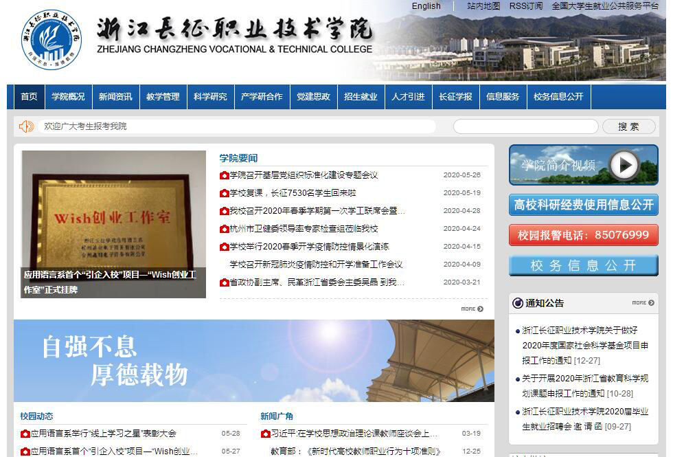 浙江長征職業(yè)技術(shù)學(xué)院是浙江省人民政府批準(zhǔn)、教育部備案的全日制普通高等職業(yè)技術(shù)學(xué)院。學(xué)院位于浙江省杭州市西湖區(qū)小和山高教園區(qū),共享杭城深厚的文化底蘊(yùn)、豐沛的電商資源、完善的公共設(shè)施,坐擁小和山優(yōu)美的自然環(huán)境、豐富的教學(xué)資源、便利的交通條件。學(xué)院設(shè)有財(cái)務(wù)與會(huì)計(jì)學(xué)院、經(jīng)濟(jì)學(xué)院、管理學(xué)院、人文學(xué)院、計(jì)算機(jī)與信息技術(shù)學(xué)院等五個(gè)二級(jí)學(xué)院和建筑工程系、智能技術(shù)系兩個(gè)直屬系,設(shè)有基礎(chǔ)課教學(xué)部、思想政治理論課教學(xué)部以及中小企業(yè)會(huì)計(jì)研究所、中小微企業(yè)電子商務(wù)研究中心等9個(gè)研究所(中心)等。開設(shè)財(cái)務(wù)會(huì)計(jì)類、商務(wù)貿(mào)易類、智能技術(shù)類、計(jì)算機(jī)信息類、經(jīng)營管理類、建筑工程類、應(yīng)用語言類等七大類39個(gè)專業(yè)。國際經(jīng)濟(jì)與貿(mào)易專業(yè)為省級(jí)優(yōu)勢專業(yè),會(huì)計(jì)、統(tǒng)計(jì)與會(huì)計(jì)核算、工商企業(yè)管理、電子商務(wù)專業(yè)為省級(jí)特色專業(yè)。學(xué)院擁有一支整體素質(zhì)優(yōu)良、教學(xué)經(jīng)驗(yàn)豐富、教學(xué)水平高、結(jié)構(gòu)合理的教師隊(duì)伍。學(xué)院現(xiàn)有全日制在校生11000余人。學(xué)院教學(xué)設(shè)施完善,建有獨(dú)立的實(shí)驗(yàn)實(shí)訓(xùn)樓、體育館、風(fēng)雨操場等教學(xué)場所,現(xiàn)有圖書館藏書125.67萬冊(cè),建有校內(nèi)實(shí)驗(yàn)實(shí)訓(xùn)基地115個(gè)。建成一個(gè)中央財(cái)政支持建設(shè)的電子商務(wù)職業(yè)教育示范實(shí)訓(xùn)基地,四個(gè)省級(jí)“十三.五”立項(xiàng)建設(shè)的跨境電子商務(wù)、中小微企業(yè)財(cái)務(wù)與會(huì)計(jì)、中小微企業(yè)服務(wù)與管理、中小微企業(yè)機(jī)器人應(yīng)用等高職教育示范實(shí)訓(xùn)基地,以及工程管理、應(yīng)用語言、網(wǎng)絡(luò)信息、公共計(jì)算機(jī)、多媒體教學(xué)等五個(gè)省級(jí)實(shí)訓(xùn)基地。學(xué)院堅(jiān)持開放辦學(xué),強(qiáng)化校企合作,產(chǎn)教融合,以學(xué)生為中心,以能力為本位,以人才培養(yǎng)為中心,以改革創(chuàng)新為動(dòng)力,加強(qiáng)內(nèi)涵建設(shè),增強(qiáng)社會(huì)服務(wù)能力,全面提高教育教學(xué)質(zhì)量,培養(yǎng)適應(yīng)區(qū)域經(jīng)濟(jì)社會(huì)發(fā)展的高素質(zhì)技術(shù)技能人才。與阿里巴巴、浙江省三建建設(shè)集團(tuán)有限公司、國信證券股份有限公司、杭州市機(jī)器人協(xié)會(huì)、浙江順豐速運(yùn)有限公司、浙商博物館等387家行業(yè)、企業(yè)、協(xié)會(huì)建立校外實(shí)習(xí)實(shí)訓(xùn)基地;與杭州跨境電商產(chǎn)業(yè)園區(qū)等開展現(xiàn)代學(xué)徒制訂單式人才培養(yǎng),為園區(qū)提供重要的人力資源保障,園區(qū)已經(jīng)建設(shè)成為“浙江長征職業(yè)技術(shù)學(xué)院跨境電商人才培養(yǎng)示范園區(qū)”。學(xué)院辦學(xué)39年來,秉承“自強(qiáng)不息、厚德載物”的校訓(xùn),立德樹人、崇學(xué)尚能,為社會(huì)培養(yǎng)培訓(xùn)各類專業(yè)技術(shù)人才40萬余人,多次受到民革中央、各級(jí)人民政府和教育行政部門的嘉獎(jiǎng),先后被授予“民革全國辦學(xué)先進(jìn)集體”、第四屆“黃炎培職業(yè)教育優(yōu)秀學(xué)院獎(jiǎng)”、浙江省“優(yōu)秀民辦學(xué)院”、浙江省“平安示范校園”、全國“民辦職業(yè)院校人才培養(yǎng)創(chuàng)新獎(jiǎng)”、全國“民辦高職內(nèi)涵建設(shè)優(yōu)秀院校”、“全國商業(yè)服務(wù)業(yè)校企合作與人才培養(yǎng)優(yōu)秀院?!钡确Q號(hào)。學(xué)院黨委也獲得先進(jìn)基層黨組織等榮譽(yù)。學(xué)院十分重視大學(xué)生實(shí)踐能力和職業(yè)技能培養(yǎng),注重學(xué)生創(chuàng)業(yè)精神和職業(yè)素養(yǎng)的養(yǎng)成。在每年舉辦一屆“大學(xué)生創(chuàng)業(yè)技能文化節(jié)”的基礎(chǔ)上,積極鼓勵(lì)學(xué)生參加校內(nèi)外各類職業(yè)技能競賽,取得了優(yōu)異成績。其中,財(cái)會(huì)類學(xué)生在第四、第五屆“用友杯”全國大學(xué)生會(huì)計(jì)信息化技能大賽全國總決賽中榮獲團(tuán)體一等獎(jiǎng);計(jì)算機(jī)類學(xué)生在教育部舉辦的全國ITAT教育工程就業(yè)技能大賽中數(shù)次榮獲一等獎(jiǎng)、二等獎(jiǎng),在“藍(lán)橋杯”全國軟件和信息技術(shù)專業(yè)人才大賽中數(shù)次獲得一等獎(jiǎng)、二等獎(jiǎng),在第十一屆、第十二屆浙江省大學(xué)生程序設(shè)計(jì)大賽中分別獲金獎(jiǎng)和銀獎(jiǎng),在2017年、2018年全國應(yīng)用人才技能大賽中,獲“匠心?民族魂”平面設(shè)計(jì)創(chuàng)新創(chuàng)意數(shù)個(gè)一等獎(jiǎng)、二等獎(jiǎng)、三等獎(jiǎng),獲“兄弟連杯”移動(dòng)互聯(lián)網(wǎng)編程大賽二等獎(jiǎng);管理類學(xué)生在全國應(yīng)用人才浙江省第三屆高職高專院校管理案例分析大賽中榮獲團(tuán)體一等獎(jiǎng);經(jīng)貿(mào)類學(xué)生在第四屆全國商科院校技