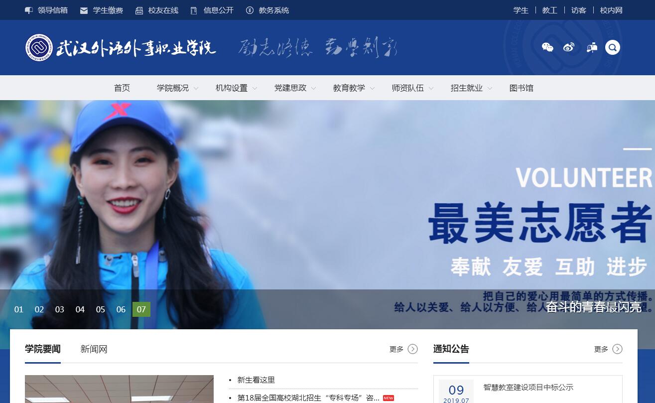 武漢外語(yǔ)外事職業(yè)學(xué)院于2002年經(jīng)湖北省人民政府批準(zhǔn)成立,并經(jīng)國(guó)家教育部備案,是我國(guó)中部地區(qū)第一所專門培養(yǎng)具有外語(yǔ)特長(zhǎng)的高級(jí)技術(shù)型、服務(wù)型專門人才的普通高等職業(yè)學(xué)院。學(xué)院座落在風(fēng)景宜人的東湖之濱,坐擁湖光山色,盡享武漢著名景點(diǎn)“東湖綠道”秀麗風(fēng)光。校園北鄰武漢火車站,高鐵、地鐵、公交全方面覆蓋,出行尤為便利。校園占地面積480余畝,建筑面積30多萬(wàn)平方米,教學(xué)生活設(shè)施齊全。教學(xué)儀器設(shè)備總值4000余萬(wàn)元,圖書館館藏各類圖書40余萬(wàn)冊(cè),電子圖書100余萬(wàn)冊(cè)。目前,學(xué)院共設(shè)有33個(gè)專業(yè),其中“高速鐵路客運(yùn)乘務(wù)”專業(yè)為湖北省特色專業(yè),“旅游英語(yǔ)”專業(yè)為武漢市重點(diǎn)專業(yè)。面向全國(guó)招生,在校生7000余人。學(xué)院緊貼社會(huì)需求辦學(xué),注重培養(yǎng)學(xué)生的實(shí)踐動(dòng)手能力,為學(xué)生創(chuàng)造了優(yōu)越的實(shí)習(xí)實(shí)訓(xùn)條件,建有校內(nèi)實(shí)驗(yàn)實(shí)訓(xùn)室68個(gè),校外實(shí)習(xí)、就業(yè)基地100余個(gè)。為營(yíng)造良好的語(yǔ)言學(xué)習(xí)環(huán)境,學(xué)院還專門建起了功能全面的多語(yǔ)種外語(yǔ)自主學(xué)習(xí)中心。學(xué)院組建富有經(jīng)驗(yàn)的“雙師型”教師隊(duì)伍,現(xiàn)有教師近400多名,副高以上職稱占35%,80%以上教師擁有碩士以上學(xué)位,擁有11位“楚天技能名師”。為加強(qiáng)外語(yǔ)教學(xué),體現(xiàn)國(guó)際化辦學(xué)特色,學(xué)院聘請(qǐng)了來(lái)自美國(guó)、英國(guó)、澳大利亞、日本、韓國(guó)等國(guó)家十多名專職外籍教師進(jìn)行外語(yǔ)教學(xué)。學(xué)院成立16年以來(lái),取得了喜人的辦學(xué)成績(jī)。學(xué)生憑借扎實(shí)的專業(yè)知識(shí)和技能在省級(jí)、國(guó)家級(jí)的各項(xiàng)競(jìng)賽中爭(zhēng)光奪獎(jiǎng),捧回了全國(guó)高職高專實(shí)用英語(yǔ)口語(yǔ)大賽湖北賽區(qū)一等獎(jiǎng)、二等獎(jiǎng);全國(guó)大學(xué)生數(shù)學(xué)建模競(jìng)賽二等獎(jiǎng);湖北省翻譯大賽三等獎(jiǎng);“用友杯”全國(guó)信息化技能大賽二等獎(jiǎng);POCIB全國(guó)大學(xué)生外貿(mào)從業(yè)能力大賽二等獎(jiǎng)、三等獎(jiǎng)等多項(xiàng)省級(jí)及省級(jí)以上榮譽(yù)。多名青年教師在教育部主辦的全國(guó)職業(yè)院校信息化教學(xué)大賽、微課大賽中奪得二等獎(jiǎng)和三等獎(jiǎng)。學(xué)院堅(jiān)持培養(yǎng)高素質(zhì)技能型、技術(shù)型、服務(wù)型人才為辦學(xué)定位,以“外語(yǔ)+專業(yè)技能”為人才培養(yǎng)特色,積極推進(jìn)教學(xué)和人才培養(yǎng)模式改革,取得了很好的成績(jī),具有良好的社會(huì)聲譽(yù),多次獲省委高校工委和省教育廳的表彰獎(jiǎng)勵(lì)。為了培養(yǎng)適合社會(huì)需要的人才,學(xué)院大力推進(jìn)校企合作,與長(zhǎng)江三角洲經(jīng)濟(jì)發(fā)達(dá)地區(qū)以及武漢“8+1”城市商業(yè)圈的地方政府和企業(yè)建立了密切的合作關(guān)系,雙方合作建立了65個(gè)校外實(shí)習(xí)實(shí)訓(xùn)基地,采取“2+1”模式,安排學(xué)生到企業(yè)頂崗實(shí)習(xí),并在實(shí)習(xí)過程中實(shí)現(xiàn)就業(yè)的雙向選擇。學(xué)院充分發(fā)揮地處武漢光谷核心區(qū)的地理優(yōu)勢(shì),與武漢市東湖高新產(chǎn)業(yè)開發(fā)區(qū)管理局建立密切校政合作關(guān)系,在政府人才部門主導(dǎo)下,學(xué)校融入?yún)^(qū)域發(fā)展,專業(yè)融入產(chǎn)業(yè)發(fā)展,定向?yàn)楦咝录夹g(shù)開發(fā)區(qū)企業(yè)培養(yǎng)配套服務(wù)人才,畢業(yè)生就業(yè)率始終保持在全省同類高校的前列。2009年“武廣”高鐵正式運(yùn)行,學(xué)院抓住機(jī)遇與鐵路部門深度合作,定向培養(yǎng)高鐵動(dòng)車乘務(wù)員。目前學(xué)院與武漢鐵路局、南昌鐵路局、上海鐵路局建立了密切的合作關(guān)系,已定向培養(yǎng)及輸送了1000多名高鐵動(dòng)車乘務(wù)員,成為名副其實(shí)的動(dòng)車乘務(wù)員培訓(xùn)基地。2013年5月,學(xué)院加入“湖北軌道交通職業(yè)教育集團(tuán)”,與武漢鐵路局合作建立的實(shí)習(xí)實(shí)訓(xùn)中心被批準(zhǔn)為省級(jí)實(shí)習(xí)實(shí)訓(xùn)基地。學(xué)院與萬(wàn)豪國(guó)際酒店集團(tuán)建立密切合作關(guān)系,引進(jìn)國(guó)際酒店的管理模式和經(jīng)營(yíng)服務(wù)理念,定向培養(yǎng)五星級(jí)酒店經(jīng)營(yíng)管理人才。日語(yǔ)、韓語(yǔ)、法語(yǔ)、西班牙語(yǔ)等小語(yǔ)種是學(xué)院的特色。隨著國(guó)家“一帶一路”大戰(zhàn)略逐步推進(jìn)以及經(jīng)濟(jì)建設(shè)轉(zhuǎn)型升級(jí)發(fā)展,小語(yǔ)種專業(yè)人才需求旺盛,學(xué)院的應(yīng)用英語(yǔ)、應(yīng)用法語(yǔ)、應(yīng)用西班牙語(yǔ)、商務(wù)日語(yǔ)畢業(yè)生具有很好的發(fā)展空間,供不應(yīng)求。會(huì)計(jì)專業(yè)、計(jì)算機(jī)應(yīng)用技術(shù)、管理、商務(wù)、護(hù)理、汽車技術(shù)服務(wù)是學(xué)院傳統(tǒng)優(yōu)勢(shì)專業(yè),均建立有穩(wěn)定的實(shí)習(