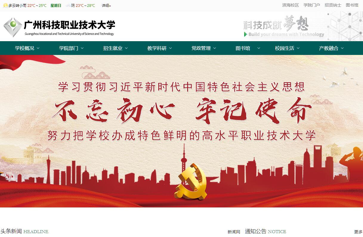 1999年,廣東景大經(jīng)濟發(fā)展有限公司投資創(chuàng)辦了廣東南大專修學(xué)院。2002年,與廣州醫(yī)學(xué)院合作舉辦廣州醫(yī)學(xué)院南大學(xué)院,2004年經(jīng)廣東省人民政府批準成為廣州科技職業(yè)技術(shù)學(xué)院,2018年升格為本科層次職業(yè)學(xué)校,2019年經(jīng)教育部批準,更名為“廣州科技職業(yè)技術(shù)大學(xué)”。學(xué)校形成一校兩區(qū)的發(fā)展布局。廣州校區(qū)位于白云區(qū)鐘落潭高校園區(qū)內(nèi),濱海校區(qū)位于茂名市教育基地“智慧城”高地片區(qū)。兩校區(qū)占地面積共1607畝,建筑面積60萬平方米?,F(xiàn)有全日制在校生18000多人,教學(xué)科研儀器設(shè)備總值1.17億元。圖書館館藏紙質(zhì)圖書187萬冊。專任教師1195人,副高級以上專業(yè)技術(shù)職稱教師394人,其中正高級86人,具有碩士學(xué)位以上的教師717人,“雙師型”專任教師598人。學(xué)校軟硬件建設(shè)已為培養(yǎng)職業(yè)本科人才打下堅實的基礎(chǔ)。學(xué)校設(shè)有8個二級學(xué)院,建立起以工為主,經(jīng)、管、文、藝多學(xué)科協(xié)調(diào)發(fā)展的專業(yè)體系,已開設(shè)本科專業(yè)14個,??茖I(yè)40個。擁有廣東省品牌專業(yè)1個,省級重點專業(yè)2個,省級教學(xué)團隊2個,優(yōu)秀教學(xué)團隊1個,省級專業(yè)領(lǐng)軍人才1人,省級精品資源共享課1門。廣東省工程技術(shù)研究中心1個,廣東省普通高校工程技術(shù)開發(fā)中心1個,廣東省高校思政課區(qū)域協(xié)同創(chuàng)新中心1個。廣東省高技能人才培訓(xùn)基地,廣東省博士后創(chuàng)新實踐基地,廣東省教育研究院民辦教育研究基地。擁有印刷技術(shù)等省級實訓(xùn)基地、公共實訓(xùn)中心8個,香江酒店等校外實踐教育基地5個。建有校外實習(xí)就業(yè)實訓(xùn)基地600個,校內(nèi)實驗實訓(xùn)室162間,2020年學(xué)校獲廣東省教學(xué)成果一等獎一項,二等獎一項。學(xué)校以“快樂體育、時尚體育、交際體育、終身體育”的理念進行體育教學(xué)改革,以俱樂部教學(xué)模式代替?zhèn)鹘y(tǒng)教學(xué)模式,設(shè)有15個體育俱樂部,改革后,成果豐碩,多個項目在國家和省級比賽中獲得冠軍。先后成立了新能源新材料研究所、機器人應(yīng)用技術(shù)研究所、機電工程研究所、新能源汽車研究所、數(shù)碼印刷研究所、區(qū)塊鏈技術(shù)研究院和院士工作站等科研機構(gòu)。近年來,學(xué)校獲校外課題及項目93項,經(jīng)費總額1772萬元,獲專利授權(quán)達238件,其中發(fā)明專利30件,躋身全國500強。教師發(fā)表論文1267篇,其中核心期刊183篇、被SCI等四大索引收錄120篇;出版著作和教材99部。獲市級科學(xué)技術(shù)獎3項,2017年獲得廣東省科學(xué)技術(shù)三等獎。學(xué)校形成“產(chǎn)學(xué)研用融合、教學(xué)做一體化、以研究促創(chuàng)新、以創(chuàng)新帶動創(chuàng)業(yè)”的辦學(xué)特色。依托印刷技術(shù)專業(yè)創(chuàng)辦廣州廣科彩色印務(wù)有限公司等經(jīng)濟實體4家,學(xué)校按照“開一個專業(yè),辦一個實體,搭一個平臺,孵化一批公司”的思路,孵化出學(xué)生創(chuàng)辦的公司93個。廣科創(chuàng)谷被評定為廣州市創(chuàng)業(yè)(孵化)示范基地和國家級眾創(chuàng)空間。2017、2018年連續(xù)兩年被評為廣東省A級眾創(chuàng)空間。酒店管理專業(yè)產(chǎn)學(xué)研實踐案例入選教育部“2012-2014年中國高校產(chǎn)學(xué)研十大優(yōu)秀案例”,并獲得中國產(chǎn)學(xué)研合作創(chuàng)新與促進獎。學(xué)生參與科技創(chuàng)新成果顯著,2016年獲全國應(yīng)用型人才綜合技能大賽“創(chuàng)新創(chuàng)意一等獎”1項,獲全國電子商務(wù)技能大賽一等獎1項,2017年獲全國科技發(fā)明制作類一等獎1項,2018年獲全國大學(xué)生數(shù)學(xué)建模競賽一等獎1項,2019年獲全國機械行業(yè)職業(yè)教育技能大賽二等獎1項,共獲省級及以上技能大賽獎項320多項。學(xué)校全面貫徹黨的教育方針,堅持立德樹人,全員育人。思政課建設(shè)被評為全省優(yōu)秀,近三年先后獲得教育部人文社科基金項目3項,經(jīng)費70萬元。校園文化豐富多彩,定期開設(shè)“名家講壇”、每年舉行技能文化節(jié)、讀書文化節(jié)等活動,與美國、俄羅斯、印度等國駐廣州領(lǐng)事館合作舉辦“國際文化系列活動”,搭建多元文化交流平臺,提高學(xué)生參與國際競爭與合作的能力。建校至今培養(yǎng)4萬多名畢業(yè)生,學(xué)生就業(yè)率居全省前列。學(xué)校于2012年-2015連續(xù)四年榮獲廣東省高等教育院校(民辦)競爭力10強單位。2014年,被中國職業(yè)技術(shù)教育學(xué)會授予最具特色民辦高職院校稱號,2019年獲得紀念中國民辦教育輝煌40周年廣東當(dāng)代民辦學(xué)校突出貢獻獎,當(dāng)選為中國民辦教育協(xié)會職業(yè)教育專業(yè)委員會副理事長單位。學(xué)校的建設(shè)發(fā)展得到了黨和政府各級領(lǐng)導(dǎo)的親切關(guān)懷與支持。秉承廣東精神,打造高水平職業(yè)技術(shù)大學(xué),深耕職業(yè)教育,培養(yǎng)具有社會責(zé)任感、創(chuàng)新創(chuàng)業(yè)能力、職業(yè)精神、工匠精神的高素質(zhì)高層次技術(shù)技能型人才,助力粵港澳大灣區(qū)啟航騰飛。