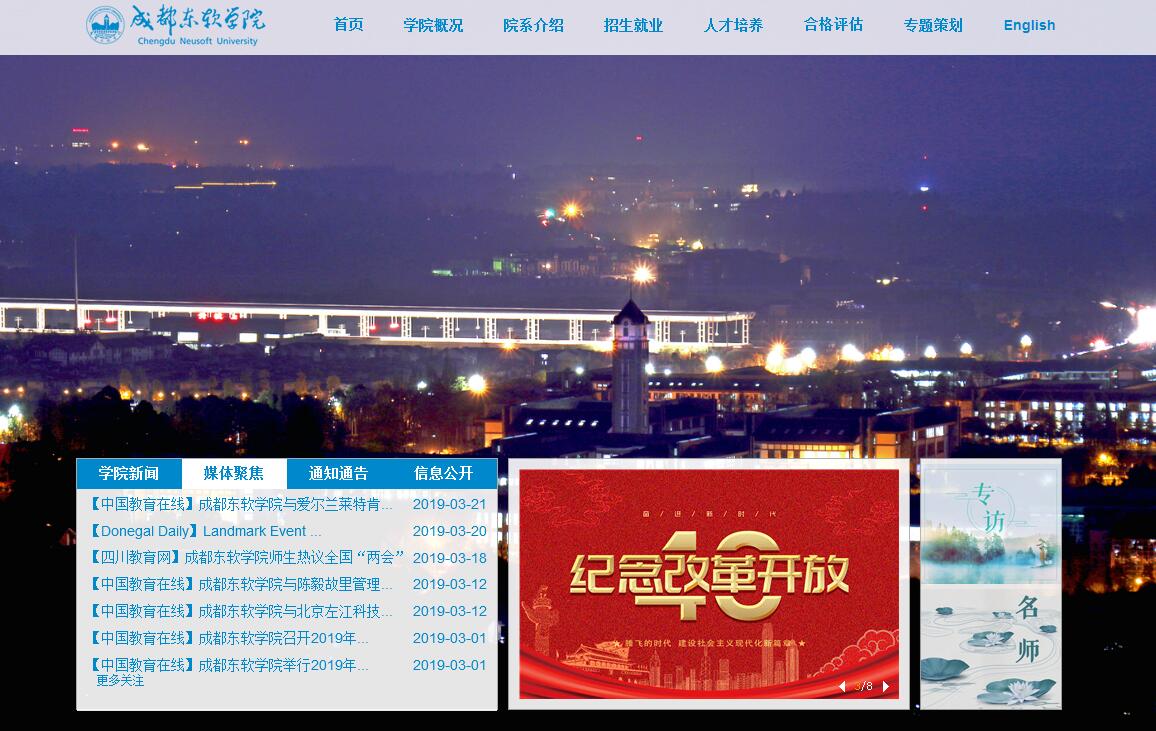 成都東軟學院是經(jīng)國家教育部批準設立,由東軟出資舉辦的一所民辦普通高等院校。2003年經(jīng)四川省教育廳批準,成立成都東軟信息技術職業(yè)學院,開展高職??平逃?;2003年學校被教育部確定為首批35所國家級示范性軟件職業(yè)技術學院之一。2011年經(jīng)教育部批準升格為成都東軟學院,成為四川省第一所獨立設置的民辦普通本科高等學校;2015年通過新建本科院校學士學位授予單位評估;2016年成為四川省民辦教育協(xié)會會長單位。學校坐落于四川省成都市世界自然文化雙遺產(chǎn)地“都江堰——青城山國家AAAAA級旅游景區(qū)”,空氣清新、環(huán)境幽美,占地面積39.63349平方米,校舍總建筑面積279401.55平方米,現(xiàn)有在校生1萬余人。學?,F(xiàn)設有8個教學機構,學科專業(yè)涵蓋工學、管理學、藝術學、文學4個學科門類,共設置了20個本科專業(yè),面向全國31個省市地區(qū)招生。2003年建校之初,學校就明確了立足四川,面向西部,服務于IT行業(yè)及區(qū)域經(jīng)濟發(fā)展的應用型辦學定位。辦學十六年來,學校以“教育創(chuàng)造學生價值”為理念,形成了校企合作、協(xié)同共贏的運行機制,并在全校范圍實施了TOPCARES-CDIO一體化應用型人才培養(yǎng)模式,已累計為社會培養(yǎng)了2萬余名畢業(yè)生,近三年累計2220人次獲省級以上獎項,本科畢業(yè)生初次就業(yè)率達94%以上,人才培養(yǎng)質(zhì)量得到了用人單位、社會各界的廣泛認可。學校重視人才培養(yǎng),建校以來共獲省級以上教學成果獎2項,網(wǎng)絡工程實驗教學中心獲批成為高等學校省級實驗教學示范中心;學校連續(xù)三年在省級民辦院校重點建設特色專業(yè)整體評價中位于全省1-2名,其中網(wǎng)絡工程專業(yè)連續(xù)三年排名第一;學?,F(xiàn)有本科專業(yè)中,有3個省級綜改試點專業(yè),3個“省級卓越工程師教育培養(yǎng)計劃”試點專業(yè),6個省級應用型本科示范專業(yè),4個省級民辦院校重點建設特色專業(yè)。同時,學校也是亞太地區(qū)唯一進入國際第三大ERP公司INFOR的教育聯(lián)盟高校,也被教育廳確定為首批“四川省高校信息化試點單位”。學校堅持產(chǎn)學研合作育人,初步構建“八協(xié)同”產(chǎn)教融合育人機制,產(chǎn)學合作取得初步成效。校企共建實踐實訓基地208個,與東軟、ARM、SONY、INFOR、力方國際、其卡通等公司共建實驗實訓室9個,與東軟睿道共建睿鼎實踐教學平臺;與北京其卡通共建原創(chuàng)動畫研發(fā)中心;與東軟網(wǎng)絡安全事業(yè)部共建了“網(wǎng)絡空間安全研究所”。學校主要參與制作的動畫電影《神秘世界歷險記4》票房超1億元,52集動畫TV劇《瘋了!桂寶2》上線半年超8億點擊量。學校自主知識產(chǎn)權的軟件著作權成果轉(zhuǎn)化僅2018年就獲得195余萬元的版權交易額。學校各系設有專門負責創(chuàng)新創(chuàng)業(yè)的教師,系部工作室負責教師、專業(yè)教師及素質(zhì)教師也全面參與學生創(chuàng)新創(chuàng)業(yè)競賽或項目指導。學校還通過SYB培訓、路演、訓練營、項目對接會、創(chuàng)業(yè)大賽、創(chuàng)業(yè)活動等多種形式為學生提供創(chuàng)新創(chuàng)業(yè)活動支持。學校大學生創(chuàng)業(yè)中心(Student Office & Venture Office,簡稱 SOVO)自2014年以來,先后獲得多項國家、省市級資質(zhì)認定及榮譽,包括全國民辦院校深化創(chuàng)新創(chuàng)業(yè)教育基地建設示范高校、省級創(chuàng)新創(chuàng)業(yè)教育綜合改革試點單位、省級大學生創(chuàng)新創(chuàng)業(yè)俱樂部、省級眾創(chuàng)空間、成都市創(chuàng)新創(chuàng)業(yè)載體(苗圃)、“成都創(chuàng)新地標”等。學校堅持開放辦學和國際合作,目前已與澳大利亞亞莫納什大學及阿德萊德大學、美國紐約州立大學石溪分校、英國斯旺西大學、愛爾蘭萊特肯尼理工學院、日本神戶國際大學、波蘭華沙理工大學等近60所境外高校建立友好合作關系,并與愛爾蘭萊特肯尼理工學院共建了創(chuàng)新創(chuàng)業(yè)中心、與美國休斯頓技術中心簽訂了創(chuàng)新創(chuàng)業(yè)合作協(xié)議、與美國圣何塞大學教育集團聯(lián)合成立了成都東軟學院圣何塞研究院,聘請45名美國專家作為學??妥淌?,并在美國設立了硅谷校區(qū)。學校目前已開展了留學生學歷教育、海外實訓項目、跨文化項目、交換生項目等多種合作形式。學校先后與IBM、SUN、Skillsoft、BEA、SAP、惠普、思科、東芝、松下電工等著名跨國IT企業(yè)建立了教育合作關系。通過整合全球先進的教育資源,使學院學生接受最先進的現(xiàn)代IT教育。自辦學以來,學校被政府授予“四川省文明校園”“都江堰平安示范單位”和“都江堰創(chuàng)平安單位先進集體”稱號;先后進入四川省“卓越工程師教育培養(yǎng)計劃”“本科院校整體轉(zhuǎn)型發(fā)展改革”“地方本科高校應用型示范專業(yè)”建設試點院校名列。學校先后獲得國家緊缺型(信息類)人才培養(yǎng)基地、國家火炬計劃成都數(shù)字娛樂產(chǎn)業(yè)人才培訓基地、國家數(shù)字媒體技術產(chǎn)業(yè)化人才培訓基地、中國軟件名城(成都)人才培養(yǎng)基地、四川省博士后創(chuàng)新實踐基地及成都市文創(chuàng)產(chǎn)業(yè)園區(qū)等多項稱號。連續(xù)兩年被華西都市報等、主流媒體評選為“