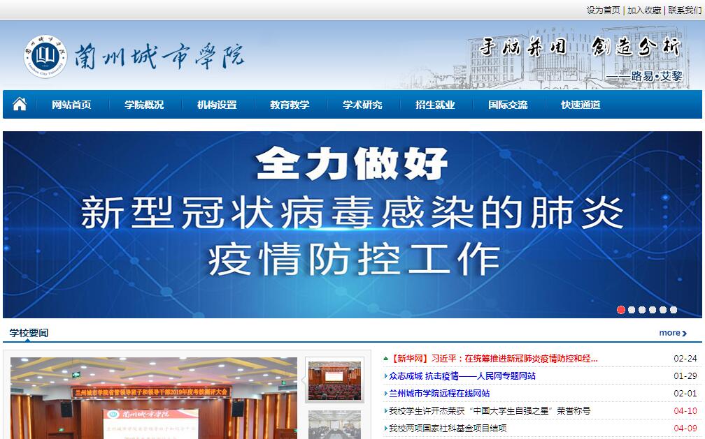 蘭州城市學(xué)院是2006年2月經(jīng)教育部批準(zhǔn)設(shè)置的一所省屬全日制普通本科院校。學(xué)校位于絲綢之路經(jīng)濟(jì)帶要地的甘肅省會(huì)—金城蘭州,交通便捷,四通八達(dá),區(qū)位優(yōu)勢(shì)得天獨(dú)厚。學(xué)校前身是始建于1958年6月的蘭州師范高等專科學(xué)校和新西蘭友人路易·艾黎于1942年5月創(chuàng)辦的培黎石油學(xué)校。2007年8月,經(jīng)甘肅省政府批準(zhǔn),甘肅省幼兒師范學(xué)校整體并入學(xué)校。學(xué)?,F(xiàn)有校本部、培黎校區(qū)、東校區(qū)三個(gè)校區(qū),占地面積50.54萬平方米,校舍建筑面積44.97萬平方米。固定資產(chǎn)總值6.95億元,其中教學(xué)科研儀器設(shè)備值1.77億元。館藏紙質(zhì)文獻(xiàn)111.94萬冊(cè),電子圖書100萬冊(cè),電子資源數(shù)據(jù)庫29個(gè),館舍面積3.05萬平方米。教學(xué)科研支撐體系完備,各項(xiàng)公共服務(wù)設(shè)施齊全。學(xué)?,F(xiàn)有教職工1153人,其中教授108人、副教授301人、博士102人、碩士619人,擁有享受國務(wù)院政府特殊津貼專家2人、甘肅省領(lǐng)軍人才4人、教育部“新世紀(jì)優(yōu)秀人才支持計(jì)劃”入選2人、全國優(yōu)秀教師2人、全國師德標(biāo)兵1人、甘肅省優(yōu)秀專家2人、省級(jí)教學(xué)名師2人。學(xué)?,F(xiàn)有各類本科專業(yè)52個(gè),涵蓋工學(xué)、理學(xué)、經(jīng)濟(jì)學(xué)、管理學(xué)、法學(xué)、教育學(xué)、文學(xué)、歷史學(xué)、藝術(shù)學(xué)9個(gè)學(xué)科門類。擁有教育部“本科教學(xué)工程”地方高校第一批本科專業(yè)綜合改革試點(diǎn)專業(yè)1個(gè),教育部本科專業(yè)課程教學(xué)試點(diǎn)項(xiàng)目1個(gè),省級(jí)特色專業(yè)7個(gè),省級(jí)重點(diǎn)學(xué)科2個(gè),省級(jí)工程研究中心2個(gè),省級(jí)高校重點(diǎn)實(shí)驗(yàn)室2個(gè),省級(jí)高校人文社會(huì)科學(xué)重點(diǎn)研究基地3個(gè),省級(jí)高校新型智庫1個(gè)。設(shè)有18個(gè)二級(jí)學(xué)院和甘肅省城市發(fā)展研究院、甘肅文化翻譯中心、路易·艾黎研究中心等23個(gè)研究院(所),目前全日制在校生13800余人。學(xué)校秉承路易?艾黎先生倡導(dǎo)的“手腦并用、創(chuàng)造分析”的校訓(xùn),致力于應(yīng)用型人才的培養(yǎng),逐步形成了“勤學(xué)、修德、明辨、篤實(shí)”的校風(fēng),“學(xué)高為師、身正為范”的教風(fēng)和“樂學(xué)善思、學(xué)以致用”的學(xué)風(fēng)。培養(yǎng)的畢業(yè)生以勤奮踏實(shí)、積極上進(jìn)的作風(fēng),扎實(shí)的專業(yè)基礎(chǔ)知識(shí),良好的專業(yè)基本能力,高度的社會(huì)責(zé)任感和敬業(yè)精神,得到了社會(huì)各方面的普遍認(rèn)可?!叭珖逡粍趧?dòng)獎(jiǎng)?wù)隆鲍@得者王家林和徐鴻、“新時(shí)代教師楷模”蔣焦影、SOHO中國有限公司董事長(zhǎng)兼聯(lián)席總裁潘石屹、著名影視演員孫茜等均是其中的杰出代表。學(xué)校堅(jiān)持產(chǎn)學(xué)研用相結(jié)合和開放式辦學(xué)理念,積極推進(jìn)校企校地校際校所合作和國際交流,先后與政府、高校、科研院所及企事業(yè)單位共建實(shí)習(xí)實(shí)訓(xùn)基地260個(gè)、實(shí)驗(yàn)實(shí)訓(xùn)室2個(gè);與塞浦路斯歐洲大學(xué)、美國福特海斯州立大學(xué)、美國中央俄克拉荷馬大學(xué)、美國佐治亞西南州立大學(xué)、美國加州波莫那州立理工大學(xué)、俄羅斯奔薩國立大學(xué)、法國歐亞高等管理學(xué)院、新西蘭ARA坎特伯雷理工學(xué)院和奧克蘭大學(xué)等10余所國外高校,與臺(tái)北城市科技大學(xué)、臺(tái)灣萬能科技大學(xué)、華東師范大學(xué)、上海師范大學(xué)、蘭州大學(xué)等數(shù)十家國內(nèi)高校、科研院所建立了聯(lián)合培養(yǎng)等深度合作關(guān)系;與蘭州市安寧4所高校建立了戰(zhàn)略聯(lián)盟,與省內(nèi)7所高校建立了教師教育聯(lián)盟,與全國12所石油高校建立了行業(yè)戰(zhàn)略聯(lián)盟。2015年,學(xué)校正式加入全國應(yīng)用技術(shù)大學(xué)(學(xué)院)聯(lián)盟,成為甘肅省首批應(yīng)用技術(shù)大學(xué)試點(diǎn)高校。2016年,學(xué)校成為中國校企協(xié)同產(chǎn)學(xué)研創(chuàng)新聯(lián)盟在我省的唯一一家理事單位。2017年,教育部決定由華東師范大學(xué)對(duì)口支援我校,兩校正式建立對(duì)口支援關(guān)系。同年,學(xué)校入選教育部“國育華漁VR世界實(shí)驗(yàn)室”項(xiàng)目試點(diǎn)學(xué)校。多年來,學(xué)校以努力建設(shè)成為國內(nèi)知名有特色高水平的應(yīng)用型大學(xué)為目標(biāo),立足蘭州,服務(wù)甘肅,面向西北,輻射全國,為經(jīng)濟(jì)社會(huì)發(fā)展做出了貢獻(xiàn)。榮獲全國文明單位、全國精神文明建設(shè)工作先進(jìn)單位、全國大學(xué)生社會(huì)實(shí)踐先進(jìn)單位、全國大學(xué)生心理健康教育先進(jìn)單位、甘肅省先進(jìn)基層黨組織、甘肅省思想政治工作先進(jìn)集體、甘肅省人才工作先進(jìn)單位等多項(xiàng)省級(jí)以上榮譽(yù)稱號(hào)。