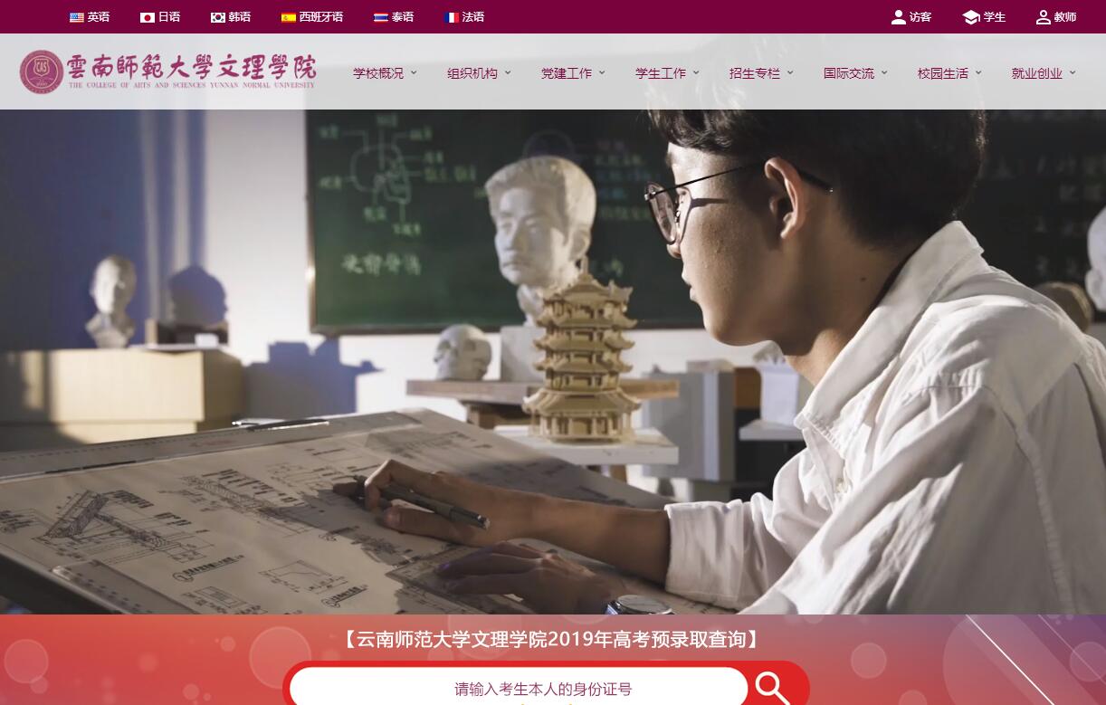 云南師范大學文理學院成立于2000年,是經教育部批準的具有全日制普通本科學歷教育資格的獨立學院,位于國家“一帶一路”倡議中面向東南亞南亞開放的門戶城市——“春城”昆明,這里全年平均氣溫22.3度,空氣質量優(yōu)良,是學子求學的理想之地。學院堅持知識、能力、素質、人格并重的教育理念,促進通識教育、專業(yè)教育、創(chuàng)新創(chuàng)業(yè)教育有機融合,以辦成現代高水平創(chuàng)新型大學為目標。學院設有11個二級學院(部),43個本科專業(yè),涵蓋理、工、農、經、文、管、教育、藝術八大學科門類。面向全國招生,在校學生15000余人。學院占地1200余畝,建有兩個校區(qū),龍泉校區(qū)位于昆明市中心龍泉路中段,楊林校區(qū)位于昆明長水國際機場旁嵩明職教園區(qū),交通便利。學院教學儀器設備總值9000多萬元,圖書館現有藏書近160萬冊、電子圖書 5萬余冊;建有現代化的教學樓群,配置先進的教學儀器設備和實驗設備,建有90多個專業(yè)實驗室以及20多個公共實訓平臺;配備有圖書館、室內外體育場館、學生服務中心、學生公寓、食堂等教學、生活配套設施。校園規(guī)劃合理、環(huán)境優(yōu)美、建筑風格大氣、統(tǒng)一,呈現濃郁的高等學府氛圍,并配有一系列嚴格的教學、生活管理和安全保衛(wèi)制度與措施,是莘莘學子求學深造、陶冶情操的理想之所。學院專兼職教師近千人,其中專任教師700余人,高級職稱占專任教師的40%以上,并聘有一批國內外名校名師任教。學院實施人才強校戰(zhàn)略,加大質量工程建設力度,擁有國家級、部級、省級重點科研項目共計40余項,國家級、省部級教學質量工程126項,云南省優(yōu)秀教學成果獎2項。學院多位教師獲得“云嶺教學名師”、“云南省師德標兵”、“卓越青年教師”等榮譽稱號。高水平的師資隊伍具有崇高的職業(yè)品格、淵博的專業(yè)學識、豐富的教學經驗、嚴謹的治學態(tài)度和敬業(yè)精神,為學生的成人成才提供強有力保障。學院形成了通識教育、專業(yè)教育、創(chuàng)新創(chuàng)業(yè)教育相融合的人才培養(yǎng)體系,以通識教育為基礎,重點培養(yǎng)學生的邏輯思維、數據分析運用、信息技術處理、多語言運用、跨文化交際能力;強化專業(yè)教育的特色,凝練專業(yè)標志性課程,增強課程挑戰(zhàn)度,培養(yǎng)學生獨立思考能力;重視創(chuàng)新創(chuàng)業(yè)教育,打造“大學生創(chuàng)新創(chuàng)業(yè)教育中心”和大學生創(chuàng)新創(chuàng)業(yè)實踐基地,不斷完善課程體系,探索多元化創(chuàng)新人才培養(yǎng)模式。學院以應用型專業(yè)為主體建設專業(yè)集群體系,形成了以管理學、經濟學為主體,文、理、工等學科門類相互支撐、相互滲透,城市建設、文化傳媒、金融經濟服務與管理以及國際化合作應用等多專業(yè)集群協(xié)調發(fā)展的態(tài)勢,打造人文語言教育、經濟管理法務、工程建設藝術三大學科群平臺,重點建設外國語言應用類、財經管理類、城鄉(xiāng)建設類、文化傳媒類四大專業(yè)集群。學院設有英語、泰語、朝鮮語、日語、法語、西班牙語等專業(yè),并為學生提供德語、阿拉伯語、越南語、緬甸語、老撾語等多語種選修方向。聘有來自14個國家的20多位外籍專家、教授,承擔語言及非語言課程的教學任務。目前已與亞太地區(qū)、歐洲、非洲、美洲等13個國家的知名院校建立了長期交流關系和深度合作的教育文化聯合體,與西班牙、韓國、泰國、法國、德國及東南亞各國駐華大使館文化教育處及國外20多所高校保持密切聯系與深度合作,共同開展人才聯合培養(yǎng)項目,為學生打開國際視野窗口、走出國門提供途徑,為國家“一帶一路”倡議和云南面向南亞東南亞開放輻射中心提供人才保障和智力支持。2013年11月,原教育部副部長在云南省人民政府副省長的陪同下蒞臨我院,對11個外語語種人才培養(yǎng)情況進行調研,對我院“語言+專業(yè)”特色人才培養(yǎng)模式給予了充分肯定。學院多次與政府及非政府國際組織合作,組織承辦國際學術會議,不斷擴大在國際合作領域的影響力。作為聯合國教科文組織亞太地區(qū)中方合作單位,于2013年、2014年、2015年,先后三次承辦聯合國教科文組織亞太地區(qū)國際會議。曾獲 “全國高等院校法語教學大會”、德國外交部、博世基金會“環(huán)境與沖突博覽會”及 “2013東歐-中國高等教育論壇年會”的承辦權。學院建有STUDIO創(chuàng)業(yè)平臺和“文理創(chuàng)業(yè)夢工場”創(chuàng)業(yè)平臺,總計占地面積約2800平方米,平臺設施完備,配有創(chuàng)業(yè)培訓教室、創(chuàng)業(yè)訓練中心、創(chuàng)業(yè)項目路演室,能夠為在校學生提供創(chuàng)業(yè)教育實踐和創(chuàng)意項目孵化等服務。截止目前,創(chuàng)新創(chuàng)業(yè)項目共有省級35項,國家級14項,成功孵化出12個項目,涵蓋教育、平面設計、電子商務、服飾租賃、攝影等多個方面。近年來,學院畢業(yè)生年終就業(yè)率保持在98%以上,累計為社會培養(yǎng)和輸送了各級各類合格人才達15000余人。在云南省教育廳2016年度畢業(yè)生就業(yè)創(chuàng)業(yè)工作目標責任考核中榮獲“一等獎”。學院重視第二課堂的開展,大力支持校園文化建設。創(chuàng)辦有67個社團,注冊人員三千余人,社團活動精彩