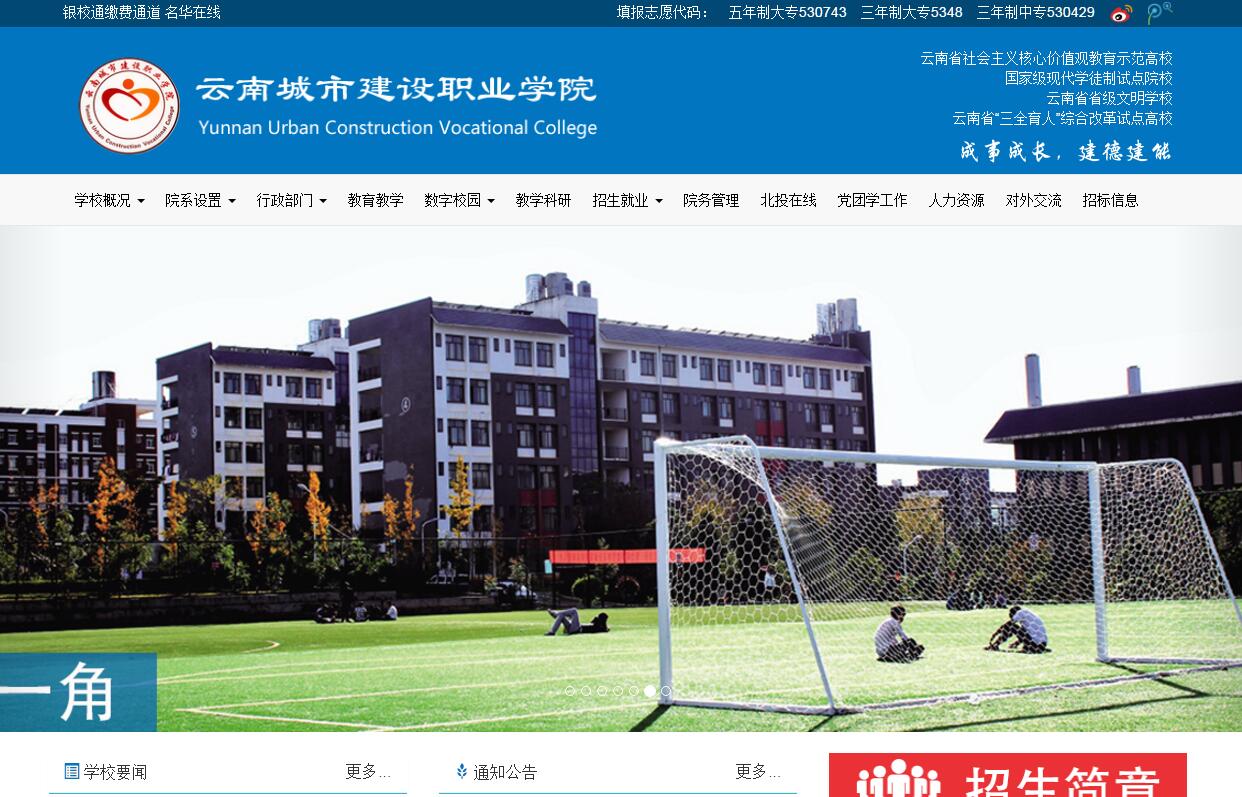 云南城市建設職業(yè)學院是經云南省人民政府批準、國家教育部備案,具有獨立頒發(fā)國家高等??茖W歷資格證書的民辦全日制普通高等院校,納入全國統(tǒng)一計劃招生。學校由擁有雄厚資金實力和豐富辦學經驗的北京北方投資集團舉辦。集團在全國14個省區(qū)投資舉辦了燕京理工學院、首都師范大學科德學院、云南師范大學商學院等18所高校。學校辦學特色鮮明,按照“市場導向、主業(yè)聚焦、專業(yè)集群”的專業(yè)建設思路,做強土建類專業(yè),做實管理類專業(yè)、做精機電信息類專業(yè),形成了土工建筑、經濟管理、汽車與電子信息、護理與健康等專業(yè)群,開設了建筑工程技術、建筑室內設計、工程造價、會計、汽車運用與維修技術、護理等46個專業(yè)。學校始終堅持育人為本的教育方針,把人才培養(yǎng)作為根本任務,本著“打造行業(yè)領先,社會認同的高職學校”發(fā)展愿景和“堅信學生有才,幫助人人成長”的使命,遵循“教師有品位,學生有品質,學校有品格”的價值觀,秉承“成事成長、建德建能”的校訓,積極踐行“建形筑魂、敬業(yè)厚生”的教風和“勤學敏行、筑夢鑄新”的學風,推行工學結合、產教融合等培養(yǎng)模式,以社會需求為導向,培養(yǎng)技能嫻熟,素質優(yōu)良,身心健康,適應經濟社會發(fā)展需要的高素質技能型人才。學校不斷深化教育教學改革,深入推進“產教融合,校企合作”人才培養(yǎng)機制創(chuàng)新,與云南建工集團、云天化等100余家企業(yè)簽訂校企合作辦學協(xié)議,學生在獲得高校畢業(yè)證書的同時,還擁有相應的各類職業(yè)資格證書。畢業(yè)生就業(yè)率長期保持在98%以上,連續(xù)多年榮獲省教育廳就業(yè)創(chuàng)業(yè)工作二等獎、云南省高校畢業(yè)生基層就業(yè)優(yōu)秀獎。十余年來,學校辦學實力和專業(yè)優(yōu)勢不斷增強,辦學特色日趨突出,學校各項事業(yè)不斷發(fā)展。2012年榮獲云南省級文明學校稱號。2013年學校成為唯一獲得云南省高校思政課合格評估的民辦高職院校。2016年順利通過“人才培養(yǎng)工作內涵+特色評估”,2017年成為云南省“社會主義核心價值觀教育示范學校”、云南省“現(xiàn)代學徒制”試點學校,2018年被評為國家級“現(xiàn)代學徒制”試點學校,全國高校樣板黨支部建設學校。學校高度重視學生體驗,從“吃、住、學”等方面不斷提升體驗感。2017年成為云南省學生食堂“六T”管理達標單位。學校實現(xiàn)WIFI全覆蓋,營造了智慧校園的良好氛圍。學校全面提升學生住宿條件,打造學生精品生活空間。學校積極拓展學歷提升項目,建立“專升本”直通車,成為云南師范大學商學院升本合作院校。2018年400余名同學順利升入本科院校學習。學校以“高端化、國際化、個性化”為發(fā)展戰(zhàn)略,滿足學生高層次學習的個性化需求,致力于打造“海外直通、名校學習”的國際化辦學品牌和形象。與5個國家近30所學校達成了合作,建立了與國外知名高校的合作交流橋梁,為學生提供到美國、英國、加拿大、澳大利亞的學習機會,設立了“海外升本”合作項目。學校與加拿大維多利亞大學、皇家路大學、美國圣瑪麗山大學、英國斯旺西大學合作開展了“加拿大中國青年領袖訓練營”“加拿大微留學(學期團)One Semester Program(OSP)”“美國精鷹計劃”“英倫大學堂”“澳洲領航行動”等高品質國際項目?,F(xiàn)已有近100余名學生前往歐美進行學習。學校積極主動適應經濟社會發(fā)展需要,立足云南、服務滇中產業(yè)新區(qū)、面向南亞東南亞,以市場需求為導向,以工科為龍頭,管理學等多學科協(xié)調發(fā)展,創(chuàng)新人才培養(yǎng)模式,提高專業(yè)辦學水平和人才培養(yǎng)質量,把學校建成特色鮮明的高職演戲,為云南經濟建設與社會發(fā)展培養(yǎng)高素質應用型人才。