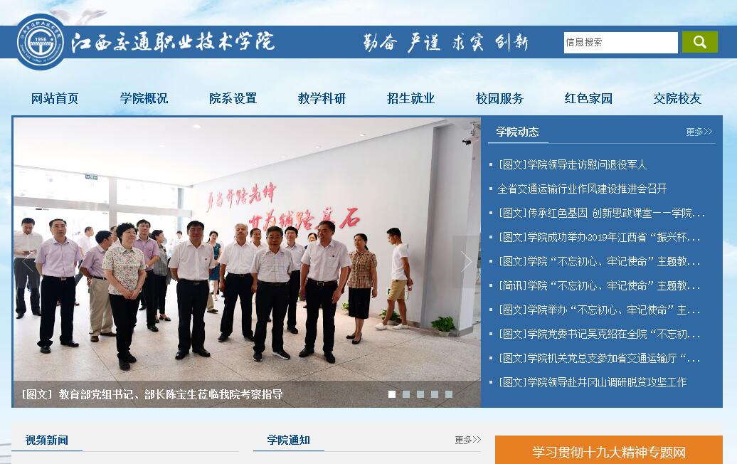 在鐘靈毓秀、人文薈萃的紅土地上,在騰飛的南昌經(jīng)濟(jì)技術(shù)開發(fā)區(qū),在風(fēng)景美麗的梅嶺腳下、贛江之濱,矗立著一所歷史悠久而又朝氣蓬勃的高等學(xué)府——江西交通職業(yè)技術(shù)學(xué)院。學(xué)院創(chuàng)建于1956年,前身為交通部南昌公路工程學(xué)校,1958年升格為江西交通學(xué)院,1973年更名為江西省交通學(xué)校,1984年曾籌建江西交通專科學(xué)校,2002年升格為高等職業(yè)技術(shù)學(xué)院。2010年被教育部、財政部確定為“國家示范性高等職業(yè)院校建設(shè)計劃”骨干高職院校立項建設(shè)單位。2016年被確定為國家優(yōu)質(zhì)高職院校立項建設(shè)單位。學(xué)院占地面積850畝,建筑面積36萬平方米,圖書館藏書63萬冊,教學(xué)科研儀器設(shè)備總值1.2億元,全日制在校生1萬余人。設(shè)有路橋工程系、汽車工程系、建筑工程系、機電工程系、管理工程系、信息工程系、基礎(chǔ)課部和成人教育部8個教學(xué)系部,共開設(shè)道路橋梁工程技術(shù)、汽車運用技術(shù)、城市軌道交通、物流管理、數(shù)控技術(shù)、計算機網(wǎng)絡(luò)技術(shù)等43個專業(yè)。學(xué)院辦學(xué)環(huán)境優(yōu)良,是國家骨干高職院校、全國交通高等職業(yè)教育示范院校、江西省首批示范性高等職業(yè)院校和首批聯(lián)合培養(yǎng)應(yīng)用技術(shù)型本科人才試點院校, 成立了融合政府、行業(yè)、企業(yè)等多方資源的江西交通職業(yè)技術(shù)學(xué)院合作發(fā)展理事會,創(chuàng)新了“五方聯(lián)動、三層對接”的辦學(xué)體制機制,有效推進(jìn)了融教學(xué)生產(chǎn)于一體、各具專業(yè)特色的人才培養(yǎng)模式改革,重點專業(yè)的辦學(xué)水平得到了整體提高;學(xué)院有校內(nèi)外實踐教學(xué)基地377個,各系部建有獨立的、教學(xué)儀器設(shè)施較為完善的實訓(xùn)大樓,總建筑面積達(dá)7.6萬平方米。近年來,合作企業(yè)累計向?qū)W院捐贈教學(xué)設(shè)備1000余萬元,學(xué)生獲得各類國家級和省級榮譽129項,其中2013年、2014年、2016年連續(xù)獲得全國職業(yè)院校技能大賽“現(xiàn)代物流”、“汽車營銷”等賽項團(tuán)體一等獎。學(xué)院是“江西省普通高校畢業(yè)生就業(yè)工作先進(jìn)單位”。根據(jù)麥可思數(shù)據(jù)調(diào)查顯示,學(xué)院學(xué)生畢業(yè)一年后的就業(yè)率、工作與專業(yè)相關(guān)度均高于全國同類院校。學(xué)院不斷加強“雙師”結(jié)構(gòu)和“雙師”素質(zhì)專業(yè)教學(xué)團(tuán)隊建設(shè),擁有一支由全國交通高職教育專業(yè)帶頭人、省部級高校教學(xué)名師、省高校中青年學(xué)科帶頭人等組成的優(yōu)秀教學(xué)團(tuán)隊,培養(yǎng)了一批注冊巖土工程師、省部級交通重點建設(shè)項目評標(biāo)專家、道路運輸行業(yè)專家、高等職業(yè)教育評估專家、省督學(xué)和科技項目評審專家。學(xué)院緊緊圍繞“交通”和“職業(yè)”特色,以汽車、道橋、城軌等重點專業(yè)為引領(lǐng),不斷加強專業(yè)建設(shè)。創(chuàng)新了“崗位需求引導(dǎo)、行企標(biāo)準(zhǔn)跟進(jìn)、三方考核評價”、“系企合一、產(chǎn)學(xué)一體”等各具專業(yè)特色的人才培養(yǎng)模式。優(yōu)化了基于工作過程系統(tǒng)化的課程體系,加強了專業(yè)核心課程的建設(shè)。共有全國職業(yè)院校示范專業(yè)點4個、國家骨干高職院校重點建設(shè)專業(yè)4個、中央財政支持的重點專業(yè)6個、省級特色專業(yè)6個、教育部“高等職業(yè)教育創(chuàng)新發(fā)展行動計劃”骨干專業(yè)10個,建筑技術(shù)、汽車維修技術(shù)等2個技能型緊缺人才培養(yǎng)培訓(xùn)基地。建有國家級精品課程2門、國家級精品資源共享課程2門、省級精品課程14門、省級精品資源共享課程36門、省級精品在線開放課程20門。與企業(yè)共同開發(fā)4個專業(yè)教學(xué)資源庫,合作編寫出版教材65部、電子教材5部。2014年,“專業(yè)企業(yè)一體,生產(chǎn)教學(xué)融合的道路橋梁工程技術(shù)專業(yè)人才培養(yǎng)創(chuàng)新與實踐”,“校廠店三方協(xié)同,共育汽車后市場技術(shù)技能人才的探索與實踐”兩項成果,榮獲國家教學(xué)成果獎。另有省部級教學(xué)成果一等獎5項、二等獎11項。學(xué)院堅持開放辦學(xué),服務(wù)行業(yè),貢獻(xiàn)社會。建有全國高職院校唯一的具備交通行業(yè)甲級設(shè)計資質(zhì)的江西省交通規(guī)劃勘察設(shè)計院、橋隧專項資質(zhì)的公路工程試驗檢測中心等產(chǎn)教實體,與省交通運輸廳共建江西省交通工程檔案館。依托產(chǎn)教實體,參與了多條高速公路建設(shè)和國省道改造,完成工程勘察設(shè)計、試驗檢測、咨詢監(jiān)理308項,總產(chǎn)值3850萬元。學(xué)院是國家海事局內(nèi)河船員培訓(xùn)基地、國家級職業(yè)院校骨干教師培訓(xùn)基地,駕駛培訓(xùn)學(xué)校被評為“全國百所優(yōu)質(zhì)服務(wù)駕?!保髋嘤?xùn)機構(gòu)共完成各級各類社會培訓(xùn)73000人次。學(xué)院是江西省首批聯(lián)合培養(yǎng)應(yīng)用技術(shù)型本科人才試點院校,與省內(nèi)外多所職業(yè)院校建立了良好的對口支援與交流關(guān)系,開設(shè)了“西藏天路訂單班”和“青海班