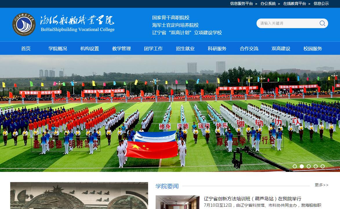 渤海船舶職業(yè)學院前身是創(chuàng)建于1959年的國家級重點中?!澈4肮I(yè)學校,徐向前元帥、楊成武將軍曾先后為學院題寫校名,先后隸屬于國家第六機械工業(yè)部、中國船舶工業(yè)總公司和國防科工委,2001年經(jīng)遼寧省人民政府批準、教育部備案,與葫蘆島師范學校、葫蘆島廣播電視大學合并組建而成,目前是我國北方唯一一所以培養(yǎng)船舶工業(yè)高素質(zhì)技能型專門人才為主、面向全國招生的全日制高等職業(yè)學院。2004年,被國家教育部評為全國高職高專人才培養(yǎng)工作辦學水平 “優(yōu)秀等級”院校。2014年,被國家教育部、財政部確定為“國家示范性骨干高職院?!?。2017年,被中央軍委、教育部批準為海軍士官定向培養(yǎng)院校。2017年,被遼寧省教育廳、財政廳確定為遼寧省“雙高計劃”立項建設(shè)學校。學院地處遼寧省葫蘆島市興城首山國家級森林公園東側(cè),占地面積728畝,建筑面積21萬平方米,教學儀器設(shè)備價值9700多萬元,圖書館藏書50萬余冊,現(xiàn)有全日制在校生8200余人。學院堅持以立德樹人為根本,以服務(wù)發(fā)展為宗旨,以促進就業(yè)為導向,以培養(yǎng)高素質(zhì)技能型專門人才為目標,堅持“立足船舶、面向軍工、服務(wù)社會”的辦學定位,面向船舶工業(yè)、軍工行業(yè)、機械行業(yè)、信息產(chǎn)業(yè)、現(xiàn)代服務(wù)業(yè)以及師范教育等開設(shè)了51個專業(yè)及專業(yè)方向,其中,遼寧省示范專業(yè)3個、遼寧省品牌專業(yè)7個,焊接技術(shù)及自動化專業(yè)、船舶電氣工程技術(shù)專業(yè)為全國機械行業(yè)特色專業(yè)。船舶工程技術(shù)、船舶動力裝置技術(shù)、船舶電氣技術(shù)、數(shù)控技術(shù)、焊接技術(shù)及自動化五大專業(yè)群,均屬國家重點支持發(fā)展的產(chǎn)業(yè)集群范圍。擁有國家精品課程1門,遼寧省精品課程10門。通過校企合作,制定了54門優(yōu)質(zhì)核心課程標準,開發(fā)建設(shè)了54門工學結(jié)合的優(yōu)質(zhì)核心課程,開發(fā)了與崗位核心能力配套的54個教學軟件包(包括課件、課程仿真軟件、網(wǎng)絡(luò)課程、習題系統(tǒng)、考試考核系統(tǒng)、課程評價系統(tǒng)),合作編印出版了專業(yè)教材61部,開發(fā)網(wǎng)路課程82門。學院重視教育信息化建設(shè),結(jié)合新校園建設(shè),投入資金2500多萬元完善了學院軟硬件建設(shè),建成了虛擬化數(shù)據(jù)中心、視頻監(jiān)控系統(tǒng)、數(shù)字化廣播系統(tǒng)、信息發(fā)布系統(tǒng)、校園一卡通系統(tǒng)等系統(tǒng);現(xiàn)有11個虛擬仿真實訓室、293個多媒體教室、3個錄播教室、7個電腦型語音室、5個數(shù)字化教室以及數(shù)字圖書館和數(shù)字化學習中心,被國家教育部確定為“教育信息化試點單位”和“職業(yè)院校數(shù)字校園建設(shè)實驗校”。學院擁有一支專業(yè)結(jié)構(gòu)合理、教學和實踐經(jīng)驗豐富、素質(zhì)優(yōu)良的“雙師型”教師隊伍,現(xiàn)有教職工622人,其中正高級職稱61人,副高級職稱203人;具有博士學位7人,碩士學位201人;省級教學名師6人、省級優(yōu)秀教學團隊5個,省級專業(yè)帶頭人5人;省級以上專家10人,百千萬人才工程百人層次1人、千人層次1人;“雙師型”專業(yè)課教師比例超過90%。學院依托“校企合作董事會”“葫蘆島區(qū)域政校企校企合作理事會”“環(huán)渤海船舶行業(yè)校企合作委員會”三個校企合作管理平臺,構(gòu)建了“三結(jié)合、六對接”的人才培養(yǎng)模式,校內(nèi)建有5個生產(chǎn)性實訓基地、4個工程技術(shù)中心、141個實訓室。校外建有11個教學型實訓基地。擁有國防科技工業(yè)職業(yè)教育實訓基地”、“國家級船舶動力裝置實訓基地”、“國家交通部海事局船員教育和培訓機構(gòu)”、“國家級電工電子及自動化實訓基地”、“國家級數(shù)控技術(shù)實訓基地”、“遼寧省職業(yè)技能培訓示范基地”、“遼寧省船舶建造技術(shù)開發(fā)與推廣服務(wù)基地”、“遼寧省產(chǎn)業(yè)集群與高校合作對接研究基地”、“中國船級社無損檢測人員培訓基地”、 “葫蘆島市高技能人才培訓基地”、“葫蘆島市職業(yè)培訓定點培訓機構(gòu)和職業(yè)技能鑒定所。學院面向國家和地方建設(shè)需要培養(yǎng)人才,幾十年來為國家的船舶工業(yè)、海洋工程,國防軍工輸送了數(shù)萬名合格的畢業(yè)生,為地方經(jīng)濟建設(shè)和社會進步做出了應(yīng)有的貢獻。學院不斷開發(fā)就業(yè)市場,拓寬就業(yè)渠道,形成了以船舶行業(yè)為特色、多行業(yè)并舉、全國沿海沿江地區(qū)為主就業(yè)的格局,打造了畢業(yè)生就業(yè)質(zhì)量好、就業(yè)率高的船院品牌。學院與大連船舶重工有限公司、渤海船舶重工有限責任公司、青島北海船舶重工有限責任公司、上海江南船舶重工有限責任公司、廣船國際股份有限責任公司、沈陽機床股份有限公司、中航工業(yè)沈陽飛機工業(yè)(集團)有限公司等船舶、機械、電子、冶金行業(yè)300多家企事業(yè)單位長期合作,建立了120余個畢業(yè)生就業(yè)基地,畢業(yè)生就業(yè)率連續(xù)多年達96%以上,企業(yè)對畢業(yè)生評價滿意率達95%以上。學院的社會影響力不斷擴大。近10年來榮獲全國模范職工之家、遼寧