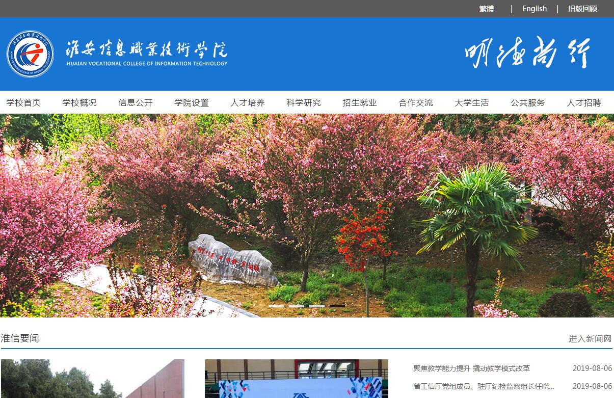淮安信息職業(yè)技術學院是由江蘇省人民政府主辦、江蘇省工業(yè)和信息化廳主管的全日制高等學校,是蘇北地區(qū)唯一的信息類職業(yè)技術學院,肇建于1978年,前身為淮陰電子工業(yè)學校。2005年,在教育部組織的江蘇省首輪高職高專人才培養(yǎng)工作水平評估中被評定為“優(yōu)秀”院校;2007年,被遴選為江蘇省首批十所示范性高等職業(yè)院校建設單位之一。建校以來,為全國各條戰(zhàn)線輸送了6萬多名高素質(zhì)技術技能人才。學校畢業(yè)生就業(yè)層次高、就業(yè)質(zhì)量好、發(fā)展后勁足,連續(xù)七次被評為“江蘇省高校畢業(yè)生就業(yè)工作先進集體”,就業(yè)率一直保持在全省同類院校前列,為江蘇“兩化融合”和信息產(chǎn)業(yè)發(fā)展作出了突出貢獻。學校躋身全國高等職業(yè)院校服務貢獻50強,江蘇省高職院校創(chuàng)新發(fā)展影響力13強、人才綜合競爭力12強、畢業(yè)生就業(yè)競爭力6強。學校占地1080畝,坐落在風景秀美、充滿人文底蘊和現(xiàn)代氣息,集教學、科研、培訓、職業(yè)技能鑒定和社會服務于一體的淮安高教園區(qū),校園規(guī)劃科學、設計精致、環(huán)境優(yōu)雅、景致宜人、交通便捷。設電子工程學院、機械工程學院、計算機與通信工程學院、自動化學院、商學院、汽車工程學院、建筑裝飾與藝術設計學院、國際教育學院、馬克思主義學院和基礎部等10個教學單位,現(xiàn)有在校生11000余人,建筑面積30.5萬平方米,固定資產(chǎn)7.38億元,圖書館藏書76.9萬冊和中國知網(wǎng)讀秀知識庫等十余個大型專業(yè)數(shù)據(jù)庫,教學科研儀器設備總值1.64億元。近幾年,累計投入1800余萬元用于信息化建設,學校智慧校園建設與應用示范工程入選“智慧江蘇”重點建設工程。學校遵循“依托行業(yè)辦學校,依托市場設專業(yè),依托崗位定方案,依托基地訓技能”的辦學理念,緊扣電子信息產(chǎn)業(yè)鏈設置電子信息工程技術、機電一體化技術、通信技術等40個多專業(yè)及專業(yè)方向。其中,通信技術專業(yè)和應用電子技術專業(yè)為中央財政支持的重點專業(yè),軟件技術專業(yè)為國家技能型緊缺人才教學改革試點專業(yè),通信技術專業(yè)、電子信息工程技術、電氣自動化技術、模具設計與制造、電子商務、計算機系統(tǒng)維護、計算機網(wǎng)絡技術、國際經(jīng)濟與貿(mào)易等19個為江蘇省高水平專業(yè)(群),建成國家精品課程2門、國家精品資源共享課程2門、國家精品在線開放課程3門,省級精品課程11門,入選國家教學資源庫備選庫1個,獲國家教育教學成果獎二等獎1項,江蘇省教育教學成果獎特等獎1項、一等獎4項、二等獎7項。學校師資結(jié)構(gòu)合理,素質(zhì)優(yōu)良?,F(xiàn)有教職工600余人,其中專任教師400多名,專任教師中高級職稱教師占45%、具有碩士以上學位81%;專業(yè)課教師中“雙師”型教師占86%;現(xiàn)有省級優(yōu)秀教學團隊3個、省“青藍工程”科技創(chuàng)新團隊1個、省級教學名師2名、校級教學名師6名、“333工程培養(yǎng)對象”人選15名、省“六大人才高峰計劃”資助人選5名、省“青藍工程”中青年學術帶頭人培養(yǎng)對象5名、省“青藍工程”優(yōu)秀青年骨干教師培養(yǎng)對象23名。教師在全國信息化教學大賽中獲一等獎2項,在全國微課大賽中獲一等獎1項。學校先后榮獲“江蘇省教育人才工作先進單位”,并蟬聯(lián)“江蘇省師資隊伍建設先進高校”稱號。學校堅持以服務為宗旨,以就業(yè)為導向,走產(chǎn)學研結(jié)合道路,建成各級各類校內(nèi)外實訓基地330個,其中國家級實訓基地3個、省級實訓基地3個、省級實驗教學示范中心1個、省產(chǎn)教深度融合實訓基地2個、各類職業(yè)技能鑒定站(所)31個,可開展74個工種技能鑒定。2007年與富士康科技集團共同投資建成了當時全國規(guī)模最大的校內(nèi)單體生產(chǎn)性實訓基地;2018年與戴爾公司共建具有國際水平的智能化示范中心。各主干專業(yè)結(jié)合自身特點分別與行業(yè)內(nèi)的龍頭企業(yè)建立了緊密型校外實訓基地115個,是教育部、工信部等六部委確定的“國家技能型緊缺人才培養(yǎng)基地”“全國電子信息產(chǎn)業(yè)高技能人才培養(yǎng)基地”“江蘇省產(chǎn)業(yè)人才培訓示范基地”。與聯(lián)想、華為、富士康、夏普電子、三星電子、豐田(常熟)、中興科技、臻鼎科技、中電熊貓、敏實集團、西子奧的斯、中國移動、中國聯(lián)通等118家國內(nèi)外知名企業(yè)簽訂了校企合作協(xié)議,與知名企業(yè)聯(lián)合成立了聯(lián)想學院、西子奧的斯學院、蘇寧云商學院、臻鼎學院等4個聯(lián)合學院和2個校企合作事業(yè)部。為契合特色小鎮(zhèn)建設的人才需求,與昆山錦溪、吳江震澤政府聯(lián)合成立了錦溪制造學院、震澤裝備學院,與微軟、江蘇郵電、中興集團等企業(yè)有著長期的訂單式培養(yǎng)合作,設立了三星電子班、富譽自動化班、富準模具班、臻鼎學徒班、聯(lián)想陽光服務班、高通通信班、西子奧的斯電梯班、聯(lián)通3G班等近40個企業(yè)訂單班及企業(yè)獎學金,開展現(xiàn)代學徒制試點專業(yè)4個。學校人才培養(yǎng)水平不斷提升。堅持立德樹人、德育為先,率先在全國推進“人生導師”制,著力構(gòu)建以社會