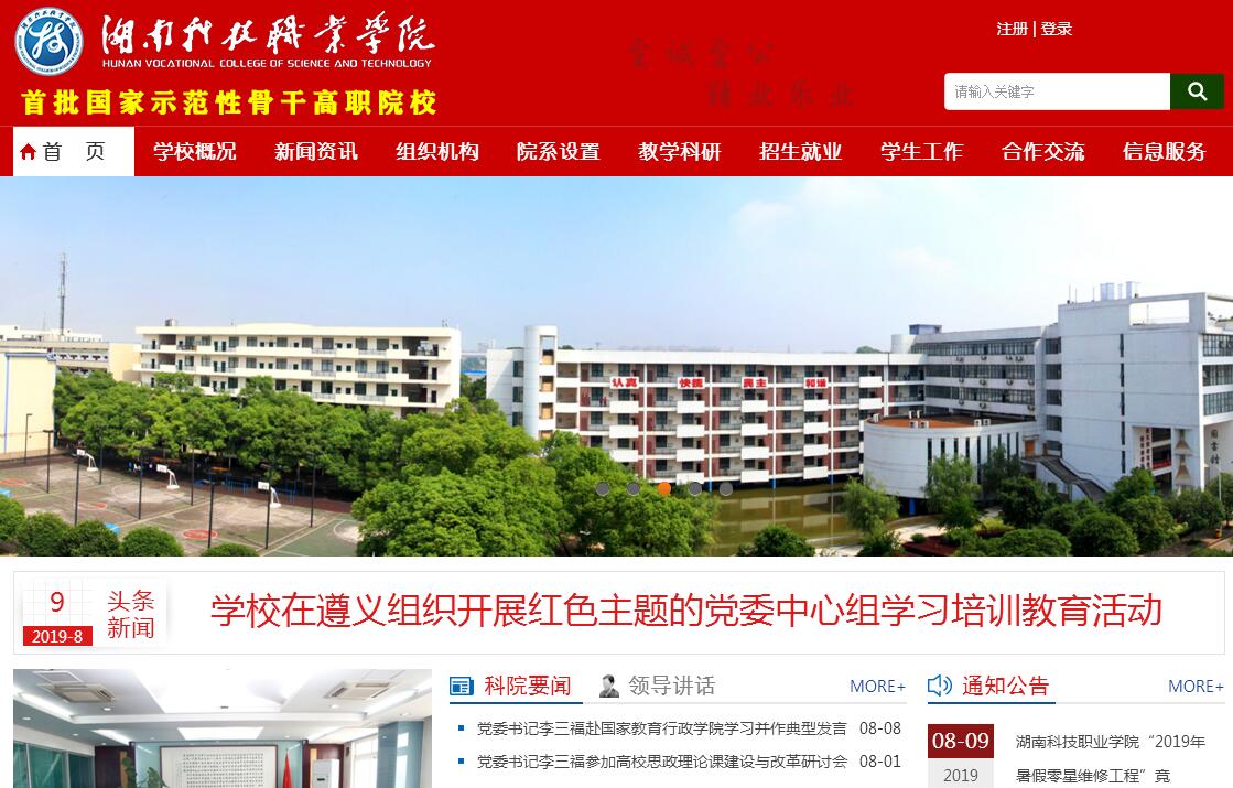 湖南科技職業(yè)學(xué)院由湖南省教育廳主管,湖南中華職業(yè)教育社主辦,是湖南省人民政府與中華職業(yè)教育社共建的公辦高等職業(yè)學(xué)院,具有60年辦學(xué)歷史。學(xué)校秉承“至誠(chéng)至公、精業(yè)樂業(yè)”的校訓(xùn),堅(jiān)持“質(zhì)量立校、人才強(qiáng)校、開放辦校、創(chuàng)新興?!钡霓k學(xué)理念,培養(yǎng)了大批高素質(zhì)技術(shù)技能人才,取得了多項(xiàng)科技創(chuàng)新與社會(huì)服務(wù)成果。學(xué)校是國(guó)家示范性骨干高職院校、湖南省示范性高職院校和湖南省唯一獲批國(guó)家示范性軟件職業(yè)技術(shù)學(xué)院的高等院校,2016年學(xué)校入圍湖南省卓越高職院校建設(shè)單位。學(xué)校先后榮獲中國(guó)軟件產(chǎn)業(yè)發(fā)展推動(dòng)機(jī)構(gòu)、全國(guó)黃炎培職業(yè)教育優(yōu)秀學(xué)校、全國(guó)高職高??蒲泄ぷ飨冗M(jìn)單位、湖南省黃炎培職業(yè)教育優(yōu)秀學(xué)校、湖南省文明單位、湖南省普通高校畢業(yè)生就業(yè)一把手工程優(yōu)秀單位等榮譽(yù)稱號(hào)。學(xué)校位于湖南省會(huì)——長(zhǎng)沙,分為雨花校區(qū)和暮云校區(qū)。學(xué)校占地面積近千畝,正在天心經(jīng)濟(jì)技術(shù)開發(fā)區(qū)(省級(jí)產(chǎn)業(yè)園區(qū))建設(shè)新校區(qū)。學(xué)校立足湖南,對(duì)接輕工產(chǎn)業(yè)和戰(zhàn)略性新興產(chǎn)業(yè),堅(jiān)持學(xué)歷教育和社會(huì)培訓(xùn)并舉,面向全國(guó)22個(gè)?。ㄊ?、區(qū))招生,現(xiàn)有在校生12000多人。設(shè)有軟件學(xué)院、人工智能學(xué)院、藝術(shù)設(shè)計(jì)學(xué)院、智能裝備技術(shù)學(xué)院、商學(xué)院、藥學(xué)院、湘瓷學(xué)院、人文與音樂學(xué)院等8個(gè)二級(jí)學(xué)院,形成了以輕工信息技術(shù)、輕工設(shè)計(jì)藝術(shù)、輕工智能裝備技術(shù)3個(gè)特色專業(yè)群為重點(diǎn),以輕工商貿(mào)服務(wù)、生物醫(yī)藥2個(gè)專業(yè)群為支撐的優(yōu)勢(shì)明顯的專業(yè)體系。學(xué)?,F(xiàn)有教職工691名,其中專任教師458名,專任教師中教授29名,副教授、高級(jí)工程師、高級(jí)工藝美術(shù)師等190名,全國(guó)模范教師1名,省級(jí)專業(yè)帶頭人8名,省級(jí)學(xué)科帶頭人1名,省級(jí)青年骨干教師21名。有軟件技術(shù)、室內(nèi)藝術(shù)設(shè)計(jì)、數(shù)控技術(shù)、視覺傳播設(shè)計(jì)與制作、高分子材料加工技術(shù)5個(gè)省級(jí)專業(yè)教學(xué)團(tuán)隊(duì)。學(xué)?,F(xiàn)有1個(gè)國(guó)家實(shí)訓(xùn)基地(計(jì)算機(jī)應(yīng)用與軟件技術(shù)實(shí)訓(xùn)基地),4門國(guó)家精品課程(三維空間藝術(shù)設(shè)計(jì)、公共空間設(shè)計(jì)、皮鞋工藝、軟件建模技術(shù)),4門國(guó)家精品資源共享課(三維空間藝術(shù)設(shè)計(jì)、公共空間設(shè)計(jì)、皮鞋工藝、軟件建模技術(shù)),6門省級(jí)精品課程(Java程序設(shè)計(jì)、皮鞋工藝、室內(nèi)設(shè)計(jì)、網(wǎng)絡(luò)安全技術(shù)、模擬電子技術(shù)、成衣產(chǎn)品設(shè)計(jì)),6門省級(jí)名師空間項(xiàng)目課程(Android應(yīng)用開發(fā)技術(shù)、單片機(jī)技術(shù)與應(yīng)用、軟件測(cè)試、計(jì)算機(jī)網(wǎng)絡(luò)、JAVA核心技術(shù)、數(shù)控編程與加工),4門湖南省精品在線課程(Android應(yīng)用開發(fā)技術(shù)(基礎(chǔ))、家居空間設(shè)計(jì)、單片機(jī)技術(shù)與應(yīng)用、JAVA核心技術(shù)),2個(gè)省級(jí)示范性特色專業(yè)(軟件技術(shù)、室內(nèi)藝術(shù)設(shè)計(jì)),1個(gè)省級(jí)特色專業(yè)(視覺傳播設(shè)計(jì)與制作),6個(gè)省級(jí)精品專業(yè)(皮具藝術(shù)設(shè)計(jì)、高分子材料加工技術(shù)、軟件技術(shù)、環(huán)境藝術(shù)設(shè)計(jì)、數(shù)字媒體藝術(shù)設(shè)計(jì)、計(jì)算機(jī)應(yīng)用技術(shù)),4個(gè)省級(jí)重點(diǎn)實(shí)習(xí)實(shí)訓(xùn)基地(藝術(shù)設(shè)計(jì)、軟件技術(shù)、機(jī)電一體化技術(shù)、計(jì)算機(jī)網(wǎng)絡(luò)技術(shù)專業(yè)),1個(gè)湖南省中高職銜接項(xiàng)目(軟件技術(shù)專業(yè))。學(xué)校共有校內(nèi)實(shí)訓(xùn)室150個(gè),各專業(yè)與本行業(yè)規(guī)模以上企業(yè)合作建有校外實(shí)習(xí)基地 262 個(gè),完全滿足學(xué)生生產(chǎn)性實(shí)訓(xùn)和頂崗實(shí)習(xí)的需要。學(xué)校積極開展產(chǎn)教融合、校企合作。學(xué)校牽頭組建了湖南輕工職業(yè)教育集團(tuán)。學(xué)校是中國(guó)輕工聯(lián)合會(huì)常務(wù)理事單位、中國(guó)軟件行業(yè)協(xié)會(huì)智能應(yīng)用與服務(wù)分會(huì)副主任單位、全國(guó)輕工大家居職業(yè)教育集團(tuán)副理事長(zhǎng)單位、湖南省皮革行業(yè)協(xié)會(huì)副理事長(zhǎng)及秘書長(zhǎng)單位、湖南省物聯(lián)網(wǎng)學(xué)會(huì)秘書長(zhǎng)單位、長(zhǎng)沙移動(dòng)互聯(lián)產(chǎn)業(yè)聯(lián)盟常務(wù)副理事長(zhǎng)單位。學(xué)校與湖南輕工產(chǎn)業(yè)園、長(zhǎng)沙軟件園、天心經(jīng)濟(jì)技術(shù)開發(fā)區(qū)、醴陵陶瓷工業(yè)園、華為、創(chuàng)博龍智、上海明匠、深圳連碩、嘉興智慧產(chǎn)業(yè)園等200余家知名企業(y