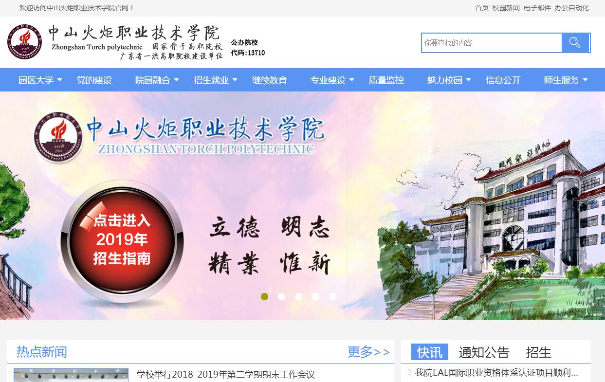 中山火炬職業(yè)技術(shù)學(xué)院創(chuàng)辦于2004年4月,坐落在國家級(jí)中山火炬高技術(shù)產(chǎn)業(yè)開發(fā)區(qū),被開發(fā)區(qū)八大國家級(jí)產(chǎn)業(yè)基地天然簇?fù)?。工業(yè)園區(qū)的五大主要產(chǎn)業(yè)、四大新興產(chǎn)業(yè)、1000余家企業(yè)為學(xué)院提供了豐富的實(shí)習(xí)實(shí)訓(xùn)資源?,F(xiàn)有全日制在校學(xué)生近7000人,繼續(xù)教育類在冊學(xué)生6000余人。教職工426人,其中教授22人,副教授(含高級(jí)工程師)97人,博士28人。設(shè)有包裝印刷系、裝備制造系、電子工程系、信息工程系、光電工程系、生物醫(yī)藥系、現(xiàn)代服務(wù)系、管理工程系8個(gè)專業(yè)教學(xué)系,開設(shè)包裝策劃與設(shè)計(jì)、應(yīng)用電子技術(shù)、電子商務(wù)、光電制造與應(yīng)用技術(shù)、藥品生產(chǎn)技術(shù)、國際經(jīng)濟(jì)與貿(mào)易、移動(dòng)互聯(lián)應(yīng)用技術(shù)、模具設(shè)計(jì)與制造技術(shù)等28個(gè)專業(yè)。2004年建校之初,火炬開發(fā)區(qū)管委會(huì)就牽頭成立了學(xué)院董事會(huì),吸納區(qū)屬總公司和園區(qū)著名企業(yè)為成員單位,在宏觀層面構(gòu)建了“政、校、企、行”多方參與的資源整合平臺(tái)。在中觀層面,學(xué)院教學(xué)系對(duì)接國家級(jí)產(chǎn)業(yè)基地,教學(xué)過程對(duì)接生產(chǎn)過程,專業(yè)發(fā)展對(duì)接產(chǎn)業(yè)升級(jí)。在微觀層面,將人才培養(yǎng)時(shí)段細(xì)分為“理論教學(xué)、實(shí)踐教學(xué)、頂崗實(shí)習(xí)”三個(gè)累計(jì)一年,推行“畢業(yè)證、技能證、素質(zhì)拓展證”三證書制度,將頂崗實(shí)習(xí)切割為“認(rèn)知性、適應(yīng)性、技能考證、生產(chǎn)性、就業(yè)性”五個(gè)階段。從宏觀到中觀再到微觀,產(chǎn)教融合的運(yùn)行體系日趨完備,人才培養(yǎng)流程日益優(yōu)化?!叭?、三、五”人才培養(yǎng)模式釋放出強(qiáng)勁的動(dòng)力。推動(dòng)著“學(xué)院與園區(qū)”走向融合發(fā)展,“院園融合”為核心的高職教育“中山火炬模式”得到了社會(huì)的廣泛認(rèn)可。經(jīng)過十多年的發(fā)展,學(xué)院成為國家骨干高等職業(yè)院校、廣東“一流高職”立項(xiàng)建設(shè)單位、廣東職業(yè)教育先進(jìn)集體、廣東成人教育先進(jìn)集體“一帶一路”產(chǎn)教協(xié)同聯(lián)盟廣東省發(fā)起單位。