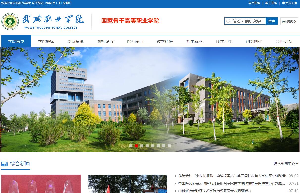 武威職業(yè)學院是一所“省市共建、市管為主”的全日制公辦普通高等職業(yè)院校,是國家骨干高等職業(yè)院校、省級示范性高等職業(yè)院校、省級優(yōu)質(zhì)高等職業(yè)院校建設(shè)計劃項目培育學校。2003年4月經(jīng)甘肅省人民政府批準成立,先后整合武威教育學院(成立于1985年5月)、甘肅廣播電視大學武威分校(成立于1979年9月)、武威財貿(mào)學校(成立于1984年3月)、武威師范學校(成立于1915年6月)、武威市旅游職業(yè)中等專業(yè)學校(成立于1998年10月),2011年4月經(jīng)甘肅省教育廳、省衛(wèi)計委同意,國家級重點中專武威衛(wèi)生學校(成立于1969年5月)整體并入學院。2018年2月甘肅省教育廳、武威市人民政府、中國科學院先進核能創(chuàng)新研究院簽訂聯(lián)合辦學協(xié)議,在學院設(shè)立“中科低碳新能源技術(shù)學院”。學院在長期的辦學實踐中秉承“尚學崇技、求真創(chuàng)新”的校訓,弘揚“文明、和諧、團結(jié)、奮進”的校風,遵循“立德樹人、服務(wù)發(fā)展、促進就業(yè)、適應(yīng)需要”的辦學理念,實現(xiàn)專業(yè)設(shè)置與產(chǎn)業(yè)發(fā)展、人才培養(yǎng)與市場需求、學院建設(shè)與經(jīng)濟社會發(fā)展密切對接,致力于建成“西部示范、全國一流、世界有影響”的職業(yè)教育名校。學院所在地武威,位于甘肅省中部、河西走廊東端,是中國旅游標志——馬踏飛燕的出土地、全國歷史文化名城、中國優(yōu)秀旅游城市、中國葡萄酒城和全國文明城市提名城市,歷史悠久、文化底蘊深厚、區(qū)位優(yōu)越,崇文尚德、包容創(chuàng)新,自古就是興學育才的上選之地。校園占地面積914畝,建筑面積34.15萬平方米,有1家直屬附屬醫(yī)院、1所20兆瓦光伏扶貧電站。學院現(xiàn)有各級各類注冊學生14330人,其中:全日制本科生637人、??粕?0270人、中專生116人,繼續(xù)教育學生3307人。在職教職工845人,有專任教師515人,其中:正高級職稱教師23人、副高級職稱教師173人、碩士研究生及以上學歷教師144人、教學名師16人、甘肅省名中醫(yī)5人、專業(yè)帶頭人91人、骨干教師187人、“雙師型”教師469人、省級“園丁獎”5人、市級“園丁獎”5人、甘肅省“青年教師成才獎”5人。建立了400人組成的兼職教師資源庫,有外聘兼職教師292人。學院專業(yè)門類齊全,特色鮮明,開辦全日制高職??茖I(yè)58個,成人本、??茖I(yè)78個。建成國家級重點專業(yè)7個、省級特色專業(yè)2個,在建省級優(yōu)質(zhì)特色專業(yè)8個,形成了以工為主,以新能源和相關(guān)醫(yī)學類專業(yè)為特色,國家級重點專業(yè)為引領(lǐng),文、經(jīng)、農(nóng)、藝等綜合發(fā)展的專業(yè)布局。教學科研儀器設(shè)備總值8152萬元,有校內(nèi)實訓室142個、校外實習實訓基地178家、國家職業(yè)技能鑒定所2個、省級眾創(chuàng)空間1個、武威大學科技園大學生創(chuàng)新創(chuàng)業(yè)孵化基地1個、市級“創(chuàng)青春通用性眾創(chuàng)空間”1個、市級工程中心1個。學院廣泛開展科學研究,獲批省教育廳科研項目立項16項、科技廳科研項目立項1項、市級科研項目立項10項、院級科研項目立項32項,獲省教育廳教學成果獎9項、省教育廳科技成果優(yōu)秀獎二等獎1項、三等獎1項、市級自然科學技術(shù)進步獎二等獎2項,申報技術(shù)成果轉(zhuǎn)化3項,創(chuàng)建科研平臺4個,出版《武威職教理論與實踐》30期。教師在國家級、省級學術(shù)刊物發(fā)表學術(shù)論文1247篇,出版專著48部、教材180本,獲得專利56項。學院招生就業(yè)呈現(xiàn)兩旺局面,2018年,省教育廳下達學院招生計劃4500人,實際錄取4457人、報到3982人,報到率89.3%。文、理科提檔線分別超過省控線115分和83分。近三年平均就業(yè)率達95%以上,用人單位對畢業(yè)生綜合素質(zhì)評價滿意度達95%以上,85%以上的畢業(yè)生對就業(yè)崗位、工作環(huán)境、工資待遇、升職空間滿意。在中國教育科學研究院職教滿意度調(diào)查中,學院在總體滿意度、教育質(zhì)量、教育公平、教育環(huán)境四項指標中均進入全國骨干校前20名。學院全面深化產(chǎn)教融合、校企合作,成立校辦企業(yè)武威泰豐新能源有限責任公司,實施20兆瓦光伏扶貧項目建設(shè)任務(wù),2017年6月并網(wǎng)發(fā)電,年上網(wǎng)電量約2700萬千瓦時,年發(fā)電收入約2160萬元。項目服務(wù)國家精準扶貧戰(zhàn)略,精準扶貧800戶,保障每個貧困戶年收入3000元,持續(xù)獲益20年。已建成光伏扶貧基地和能源類、機械類、電子類等產(chǎn)教深度融合的生產(chǎn)性實訓基地;武威市中醫(yī)醫(yī)院和涼州區(qū)中醫(yī)醫(yī)院整建制并入學院,成立集醫(yī)療、教學、科研、康復、預(yù)防保健為一體的“三級乙等”綜合性學院直屬附屬醫(yī)院。投資近7億元進行擴建和功能提升,開放床位1200張,職工1800人,年門診量達50萬人次以上,將建成“三級甲等”中醫(yī)院和甘肅省區(qū)域中醫(yī)藥服務(wù)中心,已成為醫(yī)學類專業(yè)功能完備、產(chǎn)教深度融合的生產(chǎn)性實訓基地,極大提升師資隊伍、實訓條件、實習就業(yè)、專業(yè)建設(shè)水平;與上海中銳教育集團、山東藍海集團、武威市實驗幼兒園等178家企事業(yè)單位合作共建實習實訓基地。為落實省政府與中科院戰(zhàn)略合作協(xi