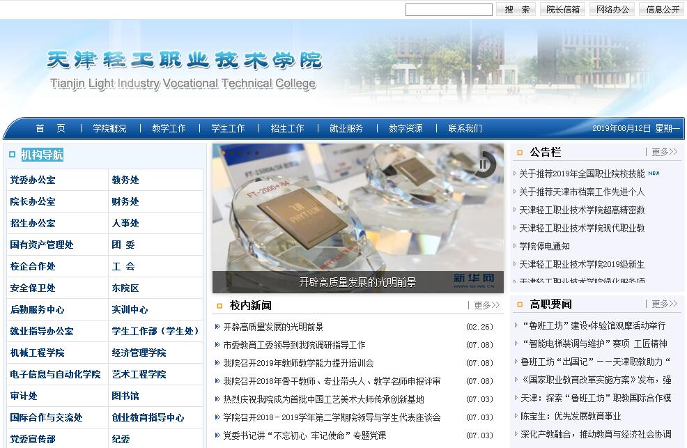 天津輕工職業(yè)技術(shù)學(xué)院2001年1月由天津輕工行業(yè)三所職業(yè)院校合并組建成立,經(jīng)教育部備案、天津市人民政府批準(zhǔn)為公辦全日制普通高等學(xué)校,隸屬天津渤海輕工投資集團(tuán)有限公司。學(xué)校秉承“修德育能,日見(jiàn)其功”的校訓(xùn),把立德樹(shù)人作為根本任務(wù),發(fā)揮辦學(xué)體制機(jī)制創(chuàng)新優(yōu)勢(shì),緊貼區(qū)域經(jīng)濟(jì)和行業(yè)、企業(yè)的技術(shù)技能人才需求,服務(wù)新動(dòng)能發(fā)展和產(chǎn)業(yè)升級(jí),服務(wù)國(guó)家重大發(fā)展戰(zhàn)略,產(chǎn)教協(xié)同培養(yǎng)“德技并修+工匠精神”的時(shí)代新人。學(xué)校坐落于渤海之濱的天津海河教育園區(qū),占地面積866畝,建筑面積19萬(wàn)平方米,在校生8500余人。擁有數(shù)字化設(shè)計(jì)與先進(jìn)制造、智能裝備自動(dòng)化、新能源與節(jié)能技術(shù)、信息化與智能技術(shù)、創(chuàng)意產(chǎn)品設(shè)計(jì)與推廣、現(xiàn)代服務(wù)與管理等6大專業(yè)群,開(kāi)設(shè)31個(gè)高職專業(yè),2個(gè)聯(lián)合培養(yǎng)技能本科專業(yè)。打造了模具設(shè)計(jì)與制造、光伏發(fā)電技術(shù)與應(yīng)用、電子商務(wù)3個(gè)國(guó)內(nèi)頂尖的品牌專業(yè);打造了計(jì)算機(jī)網(wǎng)絡(luò)技術(shù)、服裝設(shè)計(jì)與工藝、數(shù)控設(shè)備應(yīng)用與維護(hù)、環(huán)境藝術(shù)設(shè)計(jì)、市場(chǎng)營(yíng)銷5個(gè)國(guó)內(nèi)領(lǐng)先的優(yōu)質(zhì)骨干專業(yè);打造了工業(yè)機(jī)器人技術(shù)、文物修復(fù)與保護(hù)、信用管理等特色專業(yè)。其中國(guó)家重點(diǎn)建設(shè)專業(yè)6個(gè),市級(jí)重點(diǎn)建設(shè)專業(yè)11個(gè),模具設(shè)計(jì)與制造專業(yè)為全國(guó)職業(yè)院校裝備制造類示范專業(yè),并建有國(guó)家級(jí)技能大師工作室2個(gè)。近年來(lái),畢業(yè)生就業(yè)率均在97%以上,畢業(yè)生表現(xiàn)出的德能兼?zhèn)浜途考妓囑A得用人單位的廣泛贊譽(yù)。學(xué)校在堅(jiān)持產(chǎn)教融合、校企合作培養(yǎng)高素質(zhì)技術(shù)技能人才,主動(dòng)服務(wù)經(jīng)濟(jì)社會(huì)發(fā)展方面勇于創(chuàng)新實(shí)踐,在國(guó)內(nèi)首次提出并建立了“三級(jí)貫通式”校企合作辦學(xué)體制機(jī)制,成為高職院校建立校企合作長(zhǎng)效機(jī)制的典范。通過(guò)校企共建技能人才儲(chǔ)備中心、技術(shù)與產(chǎn)品推廣中心、協(xié)同創(chuàng)新中心、員工培訓(xùn)中心,在專業(yè)規(guī)劃中融入行業(yè)龍頭企業(yè)發(fā)展戰(zhàn)略需求的“四中心一融入”模式,贏得行業(yè)龍頭企業(yè)的支持,形成了校企協(xié)同育人的良好格局,為學(xué)生成長(zhǎng)成才構(gòu)筑了參與行業(yè)前沿技術(shù)應(yīng)用實(shí)踐和先進(jìn)企業(yè)文化熏陶的平臺(tái)。學(xué)校與瑞士GF集團(tuán)、德國(guó)卡爾蔡司、西班牙歌美颯、三菱電梯、中國(guó)英利等11家世界知名或行業(yè)龍頭企業(yè)共建校內(nèi)實(shí)訓(xùn)中心11個(gè),擁有校外實(shí)習(xí)基地165個(gè)。校企共建了國(guó)內(nèi)高職院校首個(gè)精密模具智能制造生產(chǎn)線并成立協(xié)同創(chuàng)新中心,學(xué)校為教育部批準(zhǔn)工業(yè)機(jī)器人領(lǐng)域職業(yè)教育合作項(xiàng)目建設(shè)單位和現(xiàn)代學(xué)徒制試點(diǎn)項(xiàng)目建設(shè)單位。牽頭組建了京津冀模具現(xiàn)代職教集團(tuán)、全國(guó)新能源類專業(yè)共建共享聯(lián)盟,并為全國(guó)跨境電子商務(wù)綜合試驗(yàn)區(qū)職業(yè)教育集團(tuán)副理事長(zhǎng)成員單位。多次獲得中國(guó)模具行業(yè)最高獎(jiǎng)項(xiàng)“精模獎(jiǎng)”。學(xué)校自2008年以來(lái),連續(xù)11年承辦全國(guó)職業(yè)院校技能大賽相關(guān)賽項(xiàng);主持完成了國(guó)家級(jí)新能源類專業(yè)教學(xué)資源庫(kù)建設(shè);累計(jì)獲得國(guó)家級(jí)和市級(jí)教學(xué)成果獎(jiǎng)13項(xiàng),在高職院校中的引領(lǐng)示范作用日益彰顯。學(xué)校將創(chuàng)新創(chuàng)業(yè)教育納入教學(xué),舉辦創(chuàng)新創(chuàng)業(yè)大賽,成立了輕職眾創(chuàng)空間,連續(xù)兩年被天津市教委認(rèn)定為天津市A級(jí)(優(yōu)秀)高校眾創(chuàng)空間,打造了面向天津市職業(yè)院校的創(chuàng)新創(chuàng)業(yè)服務(wù)平臺(tái),針對(duì)職業(yè)院校學(xué)生創(chuàng)新創(chuàng)業(yè)給予幫扶。在國(guó)家獎(jiǎng)學(xué)金、天津市人民政府獎(jiǎng)學(xué)金、國(guó)家勵(lì)志獎(jiǎng)學(xué)金、國(guó)家助學(xué)金的基礎(chǔ)上,還設(shè)有校內(nèi)獎(jiǎng)助學(xué)金和德國(guó)菲尼克斯獎(jiǎng)學(xué)金、LG獎(jiǎng)學(xué)金、瑞士GF獎(jiǎng)學(xué)金、英利獎(jiǎng)學(xué)金等7個(gè)知名企業(yè)獎(jiǎng)學(xué)金,各類獎(jiǎng)助款額年均800余萬(wàn)元。學(xué)校積極開(kāi)展國(guó)際合作交流,實(shí)施“引進(jìn)來(lái)”與“走出去”并舉的戰(zhàn)略,與新西蘭、德國(guó)、瑞士、瑞典、英國(guó)、美國(guó)、韓國(guó)、印度等國(guó)家,43家國(guó)(境)外教育機(jī)構(gòu)、高?;驀?guó)際知名企業(yè)建立國(guó)際合作關(guān)系,開(kāi)展師生