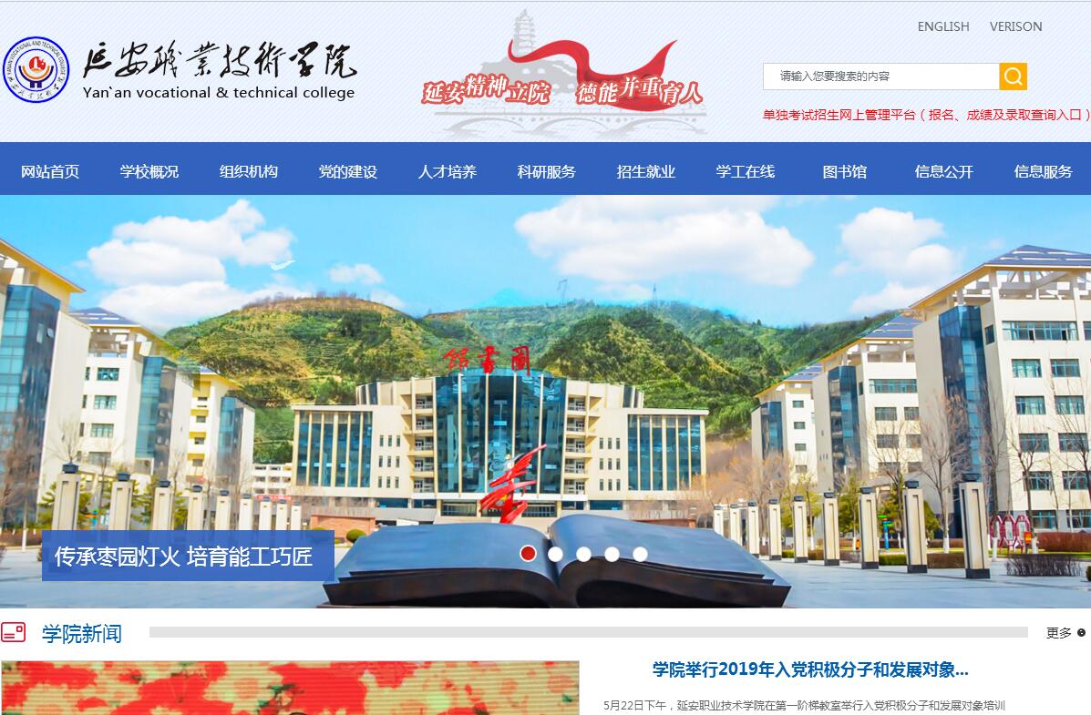 延安職業(yè)技術(shù)學(xué)院是2005年起先后由原延安教育學(xué)院、延安師范學(xué)校、延安財經(jīng)學(xué)校、延安農(nóng)業(yè)學(xué)校、延安機電工程學(xué)校、延安林業(yè)學(xué)校、延安衛(wèi)生學(xué)校、延安技工學(xué)校、延安魯迅藝術(shù)學(xué)校和寶塔區(qū)職教中心等10所學(xué)校逐步合并而組建的一所全日制普通高職院校。2014年躋身陜西省示范性高職院校。2016年被列入國家優(yōu)質(zhì)??聘叩嚷殬I(yè)院校建設(shè)單位。校園占地面積830畝(其中主校區(qū)525畝),建筑面積34萬平方米。現(xiàn)開設(shè)涵蓋石油、化工、機電、經(jīng)管、師范、藝術(shù)、農(nóng)林、建筑、醫(yī)學(xué)及航運10個領(lǐng)域的38個專業(yè),設(shè)置有石油工程系、化工化學(xué)系、經(jīng)濟管理系、農(nóng)林建筑工程系、機電工程系、師范教育系、醫(yī)學(xué)護理系、航運工程系、藝術(shù)系(延安魯迅藝術(shù)學(xué)校)、公共教學(xué)部、繼續(xù)教育學(xué)院、延安干部培訓(xùn)學(xué)院棗園分院、職業(yè)技術(shù)技能培訓(xùn)中心(延安技工學(xué)校)、中職教育中心(寶塔區(qū)職教中心)等九系一部兩院兩中心。學(xué)院還有三所附屬學(xué)校,分別是附屬中學(xué)、附屬小學(xué)和延安創(chuàng)新實驗小學(xué)。學(xué)院校內(nèi)建有十大實訓(xùn)中心、151個實訓(xùn)室,校外有156個實訓(xùn)基地?,F(xiàn)有在崗教職工969人,專任教師422人,教授34人,副教授293人;各類在校學(xué)生13280人,其中全日制在校生8571人。2016年學(xué)院被確定為定向培養(yǎng)海軍士官直招院校,成為全國20所、陜西2所具有直招海軍士官資質(zhì)的院校之一。2017年,學(xué)院成為定向培養(yǎng)武警士官直招院校,是陜西省唯一具有武警士官直招資質(zhì)的院校。學(xué)院先后成為清華大學(xué)后勤員工培養(yǎng)輸送基地、交通運輸部海事局西部海員培養(yǎng)基地、共青團中央青少年培訓(xùn)基地、中國職業(yè)技術(shù)教育學(xué)會人文素質(zhì)研究會革命傳統(tǒng)教育研究中心等。學(xué)院被評為陜西省“平安校園”、省級高等職業(yè)教育示范性實訓(xùn)基地、延安市文明校園。