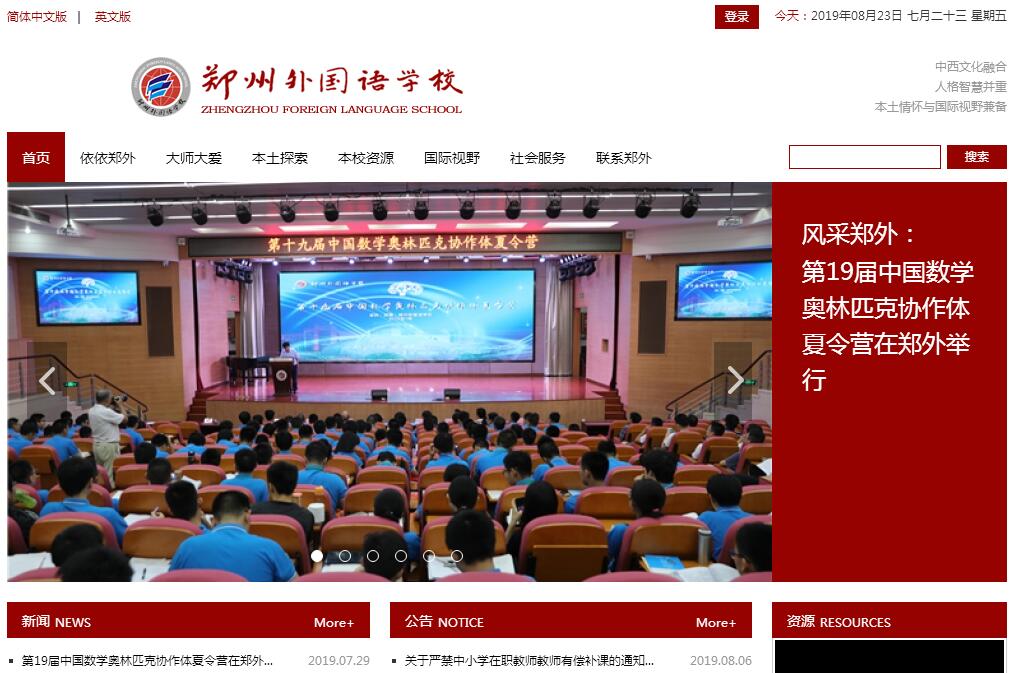 鄭州外國語學校位于鄭州高新技術產業(yè)開發(fā)區(qū)楓楊街6號,系河南省首批示范性高中,教育部首批確定的全國十三所具有保送生資格的外國語學校之一,國家科教合作促進高中科技后備人才培養(yǎng)項目實驗學校。學校于1983年建校,建制為完全中學,地址在隴海西路65號。建校之初的十余年間,學校以“外語突出”為突破口,引進了富有外語特色的教學形式,穩(wěn)中求變求活,慢中求快求高,逐步發(fā)展成為一所外語特色鮮明、文科優(yōu)勢明顯的學校。上世紀九十年代末,鄭外把辦學目標確定為“文理兼長,外語突出,全面發(fā)展”,在強化外語特色、文科優(yōu)勢的前提下,堅持文理并重,抓好理科教學。2001年作為鄭州市重點工程,學校高中部外遷至高新區(qū)楓楊街新址,建設成為寄宿制高中,隴海路校區(qū)成為初中部。2004年學校提出了“強化與突出學生的科學素養(yǎng)與理性思維能力培養(yǎng)”的新目標,在學生平均分班的基礎上,在尊重學生興趣的前提下,開始進行理科實驗班的嘗試。2009年,基于從偏重于技能養(yǎng)成轉向學生的人格塑造的新課改精神和著眼于學生從中國和世界文化中汲取營養(yǎng)的辦學理念,學校把鄭外的培養(yǎng)目標提煉為:中西文化融合、智慧人格并重,本土情懷與國際視野兼?zhèn)涞母咚刭|預備人才。這一培養(yǎng)目標的確定,使鄭外再次站在面向世界、面向未來、面向現(xiàn)代化的育人高端,成為新課改的領跑者。學?,F(xiàn)有48個班級,在校學生2800余人,教職工近300人。校園面積164畝,擁有一流的現(xiàn)代化教學設備:包括400米塑膠跑道、標準足球場、體育館、圖書館、電子閱覽室和供3000名學生食宿的公寓式宿舍樓和餐廳,以及科技實驗中心等學生自主活動場所。并且已形成了鄭州外國語學校、鄭州外國語中學、鄭州楓楊外國語學校、鄭州外國語新楓楊學校、鄭州實驗外國語中學“一校五部”,由鄭州外國語學校統(tǒng)一管理的辦學格局。建校30多年來,鄭外高揚“文理兼長,外語突出,全面發(fā)展”的素質教育旗幟,堅持以培養(yǎng)學生“個性張揚,特長發(fā)展,素質全面”為重心,努力培養(yǎng)“優(yōu)一等,高一格”的預備英才學生,為學生的終身發(fā)展奠基。形成了以“嚴、細、深、實、快”為標志的干事創(chuàng)業(yè)新作風,以“肯干、能干、多干、干好”為標志的干事創(chuàng)業(yè)新境界,以“倡導兩個服務——服務教學、服務師生”為標志的干事創(chuàng)業(yè)新態(tài)度。培養(yǎng)目標、職業(yè)定位等學校文化的價值取向已經深入鄭外師生人心,成為師生共同的價值追求和行為方式。經過30多年的發(fā)展,“鄭外”已經成為最優(yōu)秀學生向往的學校,家庭為有學生在鄭外讀書而驕傲,社會為有鄭外品牌而高興,學校已經成為河南基礎教育的一張名片。連年被評為鄭州市普通高中教育教學先進單位、學科競賽先進單位。先后獲得了河南省教育系統(tǒng)先進集體、河南省學校文化建設百佳學校、鄭州市文明單位、鄭州市五一勞動獎狀、河南省文明單位、全國教育系統(tǒng)先進集體等榮譽稱號。高中錄取分數(shù)線連續(xù)九年居鄭州市第一;每年有200名左右的學生被保送到北大、清華等重點大學,保送生人數(shù)占河南保送生總數(shù)的一半以上;一本上線人數(shù)和上線率逐年遞增,2015屆達92%,在省內遙遙領先;學科競賽優(yōu)勢明顯,近幾年來已獲數(shù)理化國際奧賽金牌3塊,2014年省級一等獎全省共198人我校占108人,占一半以上;每年有80余名學生考入耶魯大學、斯坦福大學等國外名校。在鄭州市科教興鄭的戰(zhàn)略中,鄭外作為示范引領區(qū)域教育的領頭雁,獲得了市委、市政府的關心重視和大力支持,無論是學科建設,高端師資隊伍的打造,還是推進創(chuàng)新實驗室和培養(yǎng)創(chuàng)新人才的試點工作,鄭外都獲得了政府、社會以及相關高校在政策、資金上的鼎力支持。在新一輪的發(fā)展中,政府、社會以及國內頂尖高校在教育發(fā)展戰(zhàn)略體系中對鄭外的重視和支持,無疑是鄭外下一輪騰飛的重要支撐和有利條件。當前,鄭外上下正齊心協(xié)力,在傳承鄭外傳統(tǒng)文化的基礎上,努力創(chuàng)設一種能激發(fā)每個人的才智和創(chuàng)造力發(fā)揮的校園文化環(huán)境,盡可能提供學生按需選學的教育教學環(huán)境、教師按需施教的專業(yè)成長環(huán)境、高校按需選才的學生發(fā)展環(huán)境,努力把學校建成示范鄭州、代表河南、輻射全國的實驗性、學術性的全國最著名中學。