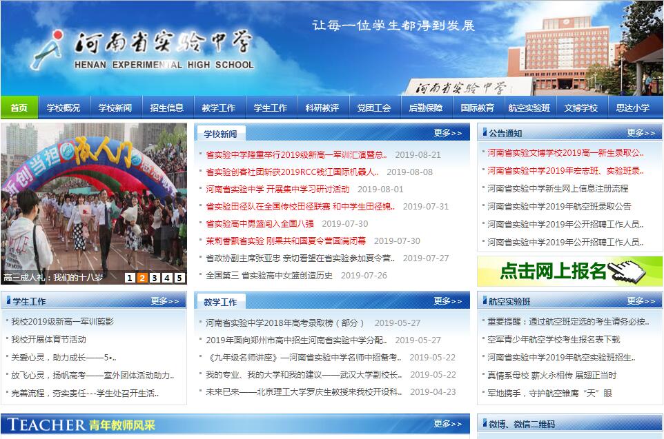 河南省實(shí)驗(yàn)中學(xué)是河南省教育廳直屬學(xué)校,創(chuàng)建于1957年,原名鄭州師專附中,后為鄭州師院附中、鄭州大學(xué)附中、鄭州四十中。1979年,作為河南省基礎(chǔ)教育實(shí)驗(yàn)學(xué)校和實(shí)驗(yàn)園地,正式定名為河南省實(shí)驗(yàn)中學(xué)。目前,我校擁有省管優(yōu)秀專家1人,特級教師12人,省級學(xué)術(shù)技術(shù)帶頭人、專家30余人,市級以上骨干教師123人。學(xué)?,F(xiàn)有本部、分校兩個校園。本部位于文化路60號,占地150畝,建筑面積10萬平方米,綠化面積達(dá)5萬多平方米。分校位于農(nóng)業(yè)路10號院,本部和分校兩個校園之間有天橋相連。各種教育教學(xué)設(shè)施完備,布局有致,整潔規(guī)范。學(xué)校主要榮譽(yù)稱號有:中國百強(qiáng)中學(xué)、國家級綠色學(xué)校、國家級體育傳統(tǒng)項(xiàng)目學(xué)校、社會公認(rèn)特色育人成功學(xué)校、全國先進(jìn)科研教改實(shí)驗(yàn)學(xué)校、國務(wù)院僑辦華文教育基地學(xué)校、省級文明單位、河南省辦學(xué)管理規(guī)范化學(xué)校、省級安全文明校園、省級優(yōu)秀家長學(xué)校、河南省基礎(chǔ)教育實(shí)驗(yàn)基地、河南省首批示范性高中、河南省教師發(fā)展學(xué)校等。學(xué)校與國內(nèi)外數(shù)十家教育機(jī)構(gòu)和大中學(xué)校建立了友好合作關(guān)系,成為河南省基礎(chǔ)教育對外開放的重要窗口。學(xué)校領(lǐng)導(dǎo)班子緊密團(tuán)結(jié)廣大教職員工,上下一心,齊心協(xié)力,全面落實(shí)科學(xué)發(fā)展觀,全力提高辦學(xué)實(shí)力和辦學(xué)水平。學(xué)校進(jìn)一步理清了辦學(xué)思路,明確了辦學(xué)方向,提出了“專業(yè)、有效”的管理工作要求,堅(jiān)持規(guī)范辦學(xué),堅(jiān)持教育教學(xué)協(xié)調(diào)發(fā)展,堅(jiān)持深化教學(xué)改革,積極開展有效教學(xué),穩(wěn)步推進(jìn)新課程改革,注重科研服務(wù)教學(xué),學(xué)校教育教學(xué)管理水平不斷提升,普通教育、競賽教育、國際教育、藝體教育等特色紛呈、競相爭艷,各項(xiàng)工作生機(jī)勃勃。
