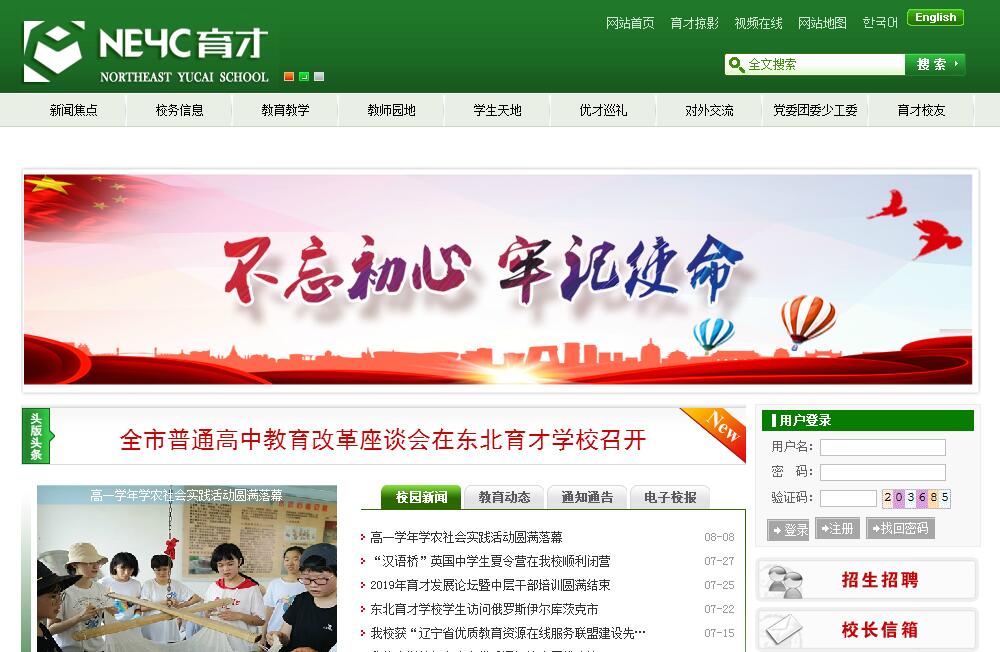 東北育才學(xué)校是1949年由張聞天、徐特立等老一代無產(chǎn)階級革命家創(chuàng)建的一所具有光榮革命傳統(tǒng)的學(xué)校,是沈陽市教育局直屬的省重點中學(xué),是遼寧省首批示范性高中,全國教育系統(tǒng)先進(jìn)集體。1993年被市教育局確定為優(yōu)才教育實驗學(xué)校。學(xué)校堅持集團(tuán)教育發(fā)展戰(zhàn)略。近年來,為了不斷滿足廣大人民群眾對優(yōu)質(zhì)教育的需求,學(xué)校實現(xiàn)了優(yōu)質(zhì)資源擴(kuò)張。在發(fā)展方式上,從擴(kuò)大規(guī)模的線性發(fā)展,轉(zhuǎn)向形成格局的立體發(fā)展,高規(guī)格地打造育才名校形象,實現(xiàn)育才事業(yè)的全面協(xié)調(diào)可持續(xù)發(fā)展。2006年東北育才雙語學(xué)校落成。同年,東北育才教育集團(tuán)正式成立。此后,學(xué)校又合作創(chuàng)建了東北育才撫順學(xué)校、東北育才悲鴻美術(shù)學(xué)校、東北育才丁香湖小學(xué),并承擔(dān)了招收新疆班的工作任務(wù)。東北育才學(xué)校的東關(guān)模范校區(qū)始建于1910年,少年周恩來在這里度過了三年高小讀書生活。在修身課的課堂上,少年周恩來發(fā)出了“為中華之崛起而讀書”的錚錚誓言,抒發(fā)了“愿相會于中華騰飛世界時”的豪情壯志。目前學(xué)校共有9個校區(qū)13個學(xué)部,占地面積約80萬平方米,建筑面積約42萬平方米,教師千余人,學(xué)生人數(shù)發(fā)展到一萬五千人,實現(xiàn)了國有資產(chǎn)的大幅度增值。已經(jīng)形成了從學(xué)前教育到高中教育相互銜接,學(xué)校、家庭、社會教育相互結(jié)合,公辦、民辦、聯(lián)合辦學(xué)形式相互促進(jìn)的集團(tuán)辦學(xué)格局。新時期,東北育才學(xué)校提出要培養(yǎng)學(xué)生“擁有為中華之崛起而讀書的理想信念,擁有報效祖國赤子情懷,擁有讓生命之花綻放的幸福人生”,為每一個孩子準(zhǔn)備好未來。“追求卓越”是育才學(xué)子的共同文化特質(zhì),“為國育才”是育才學(xué)校的不懈追求。培養(yǎng)拔尖創(chuàng)新人才是東北育才學(xué)校新時期的總目標(biāo),育才的教育承認(rèn)差異、尊重個性、允許選擇、自主體驗,學(xué)校課程豐富,課堂高效,創(chuàng)新突出;學(xué)生品德高尚、學(xué)業(yè)優(yōu)異、發(fā)展全面。學(xué)生在各個方面都有著突出表現(xiàn),在各個方面嶄露頭角,在全國乃至世界的舞臺上占有一席之地。學(xué)校堅持優(yōu)才教育發(fā)展戰(zhàn)略。確立了“學(xué)會關(guān)心、學(xué)會創(chuàng)造、全面發(fā)展、初露才華,培養(yǎng)各方面領(lǐng)軍人物的領(lǐng)袖資質(zhì)”的培養(yǎng)目標(biāo)。提出以推進(jìn)新課程改革為實施素質(zhì)教育的核心,在學(xué)生培養(yǎng)上注重全面加特長。在研究性學(xué)習(xí)、雙語教學(xué)、分層次教學(xué)、信息技術(shù)與學(xué)科教學(xué)整合、高中學(xué)分制、優(yōu)秀學(xué)生導(dǎo)師制、考試評價等方面進(jìn)行了積極探索和改革,在全國中學(xué)中率先創(chuàng)立了材料科學(xué)、生命科學(xué)、智能機(jī)器和機(jī)器人、軟件科學(xué)四個尖端科學(xué)研究實驗室。學(xué)校堅持面向全體,因材施教,逐步形成了常態(tài)、超常、特長、國際、創(chuàng)新五大課程體系。學(xué)校相繼開發(fā)了200多門選修課,并形成了與課改配套的綜合實踐中心,新建了遼寧地下資源研究室、汽車模擬駕駛室等通用技術(shù)課程教室。2009年,占地15畝的國內(nèi)基礎(chǔ)教育首家生態(tài)科普基地投入使用,袁隆平院士為科普基地題名。學(xué)校堅持教育國際化發(fā)展戰(zhàn)略。為培養(yǎng)具有“國際視野、本土情懷”的有大愛、有擔(dān)當(dāng)?shù)男聲r代青年,近年學(xué)校加快了優(yōu)才教育課程體系建設(shè)步伐。引入IB、AP,SAT、TOELF、SDP等國際課程,并開設(shè)了世界文化遺產(chǎn)與年輕人、模擬聯(lián)合國、德語、世界文化遺產(chǎn)等校本課程。學(xué)校加入了世界名中學(xué)聯(lián)盟,優(yōu)才教育成果在國際上得到廣泛贊譽(yù)。學(xué)校目前有來自美國、英國、加拿大、澳大利亞、法國、日本等國家二十多名外籍教師承擔(dān)英語、日語和法語教學(xué)任務(wù)。2010年,學(xué)校引入了CDIO課題項目,成為全球首家加入CDIO團(tuán)體的中學(xué)單位。2011年以來,學(xué)校先后與美國密歇根州牛津?qū)W區(qū)、賓夕法尼亞州EA姊妹校簽約設(shè)立孔子課堂,成為遼寧省最早在海外設(shè)立孔子課堂的學(xué)校。2011年學(xué)校與美國密西根州牛津?qū)W區(qū)共同建立東北育才實驗學(xué)校美國牛津高級中學(xué),成為全國首家由中美兩所優(yōu)秀的公立學(xué)校合作建立的國際學(xué)校。2017年我校喜獲IBO正式授權(quán) 成為遼寧首家IB學(xué)校。近年來,東北育才的學(xué)子在各級各類賽場上嶄露頭角,在國際舞臺上叱咤風(fēng)云。在國內(nèi)外中學(xué)生學(xué)科競賽中摘金奪銀。目前學(xué)校在國際中學(xué)生學(xué)科競賽中已取得了17金、7銀、6銅的驕人成績。在全國中學(xué)生學(xué)科競賽中,獲得216枚獎牌,金牌總數(shù)達(dá)到61枚,2017年我校有3人進(jìn)入奧林匹克國家集訓(xùn)隊。無論在獲優(yōu)勝者的名次上,還是數(shù)量上,都在東北地區(qū)最好。由于在學(xué)科競賽