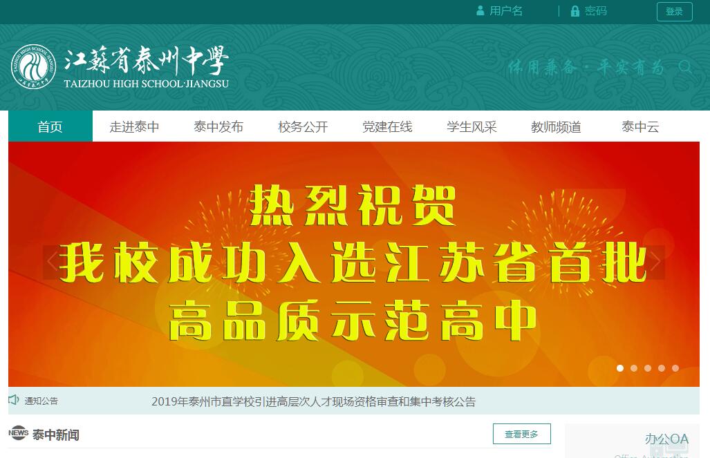 江蘇省泰州中學始于1902年在宋代著名教育家胡瑗講學舊址創(chuàng)立的泰州學堂,是一所歷史悠久、文化底蘊深厚、具有優(yōu)良辦學傳統(tǒng)的知名中學。學校先后被評為省屬重點中學、省四星級高中、國家級示范高中,獲得全國文明單位、全國教育系統(tǒng)先進集體、江蘇省文明單位標兵、江蘇省模范學校等四十多個省級以上榮譽稱號。2016年秋學期,學校整體搬遷至泰州南部新城。新校區(qū)占地面積303畝,總建筑面積14.86萬平方米。進過恢復性改造的迎春西路老校區(qū),作為泰州市未成年人社會實踐基地、愛國主義教育基地和中小學素質教育實踐基地,在未成年人思想教育和推進素質教育方面發(fā)揮重要作用。學校現(xiàn)有52個班級,在校學生2400多人。專任教師260人,其中正高級教師8人,特級教師10人,地市級以上名師、學科帶頭人36人,具有研究生學歷教師80多人。學校以“明體達用”為校訓,以“和諧、求實、進取”為校風,以“忠誠、謹業(yè)、創(chuàng)新”為教風,以“好學、善思、致用”為學風,教育教學質量不斷提升。傳承千年文脈,不斷發(fā)展創(chuàng)新,凝練出的“體用兼?zhèn)?、平實即好”辦學新主張使百年老校煥發(fā)蓬勃生機。作為全國首批百所高中特色建設項目學校和全省普通高中創(chuàng)新人才培養(yǎng)試點學校,學校大力加強教育教學管理與創(chuàng)新,出臺了創(chuàng)新人才培養(yǎng)“錦繡計劃”,相繼建成“ICAN智能創(chuàng)新實驗室”和“機器人實驗室”。先后申報成功兩個省級課程基地“數(shù)學學習體驗中心”和“理科學習體驗中心”?!栋捕〞航虒W文化的新構與實踐》項目被確定為省首批基礎教育前瞻性教學改革實驗項目。教科研工作正以董健校長領銜的省教育科學“十二五”規(guī)劃2015年度普教重點資助課題《基于胡瑗“明體達用”教育思想的學校課程建設研究》為龍頭強勢推進,突出大面積、平民化、解決實踐問題的草根化研究。學校著力提高國際化辦學水平,與澳大利亞特拉蕾根中學、美國芝加哥佩頓中學、英國國王學院等結為友好學校,常年進行師生互訪活動。學校已開辦劍橋國際班、雅思英語班、韓國留學生班等。作為江蘇省漢語推廣基地,目前我校正積極申報“孔子課堂”項目。百年老校,人才輩出,在新的發(fā)展征程里,江蘇省泰州中學將進一步弘揚“追求卓越、自強不息”的泰中精神,為把學校打造成“高原上的高峰”而不懈努力!
