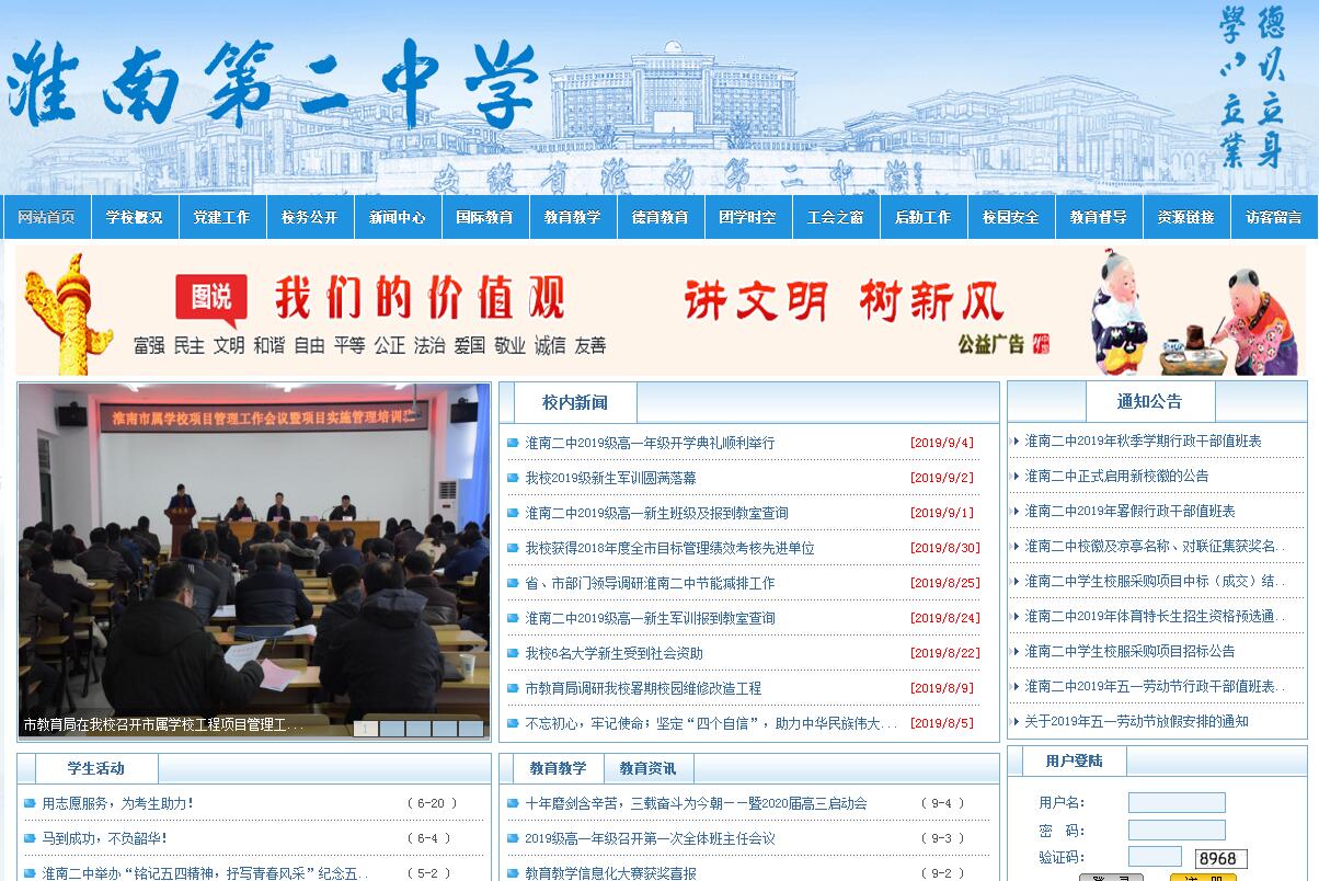 安徽省淮南第二中學(xué)是我市建校最早的中學(xué),創(chuàng)辦于1946年秋,前身為淮南礦路員工子弟學(xué)校, 1956年定名為淮南第二中學(xué),1959年由省政府確定為首批省重點(diǎn)中學(xué),1979年被省教委評定為首批辦好的重點(diǎn)中學(xué),2000年被評定為安徽省示范高中。學(xué)校為“聯(lián)合國教科文組織俱樂部成員單位”,近幾年來先后榮獲全國群眾體育工作先進(jìn)單位、全國后勤管理工作先進(jìn)單位、安徽省先進(jìn)基層黨組織、安徽省文明單位、安徽省工會工作先進(jìn)集體、安徽省第一批節(jié)約型公共機(jī)構(gòu)示范單位、安徽省體育專項(xiàng)特色學(xué)校、安徽?。ɑ@球)體育傳統(tǒng)項(xiàng)目學(xué)校、安徽省綠色學(xué)校、安徽省園林式單位等榮譽(yù)稱號。教師隊(duì)伍群星匯集,學(xué)?,F(xiàn)有正高級教師3人,特級教師10人,省教壇新星7人,高級教師142人,省市級學(xué)科帶頭人40余人。建校以來,已培養(yǎng)5萬多名優(yōu)秀學(xué)子,如原陜西省省長程安東、原中國人民武裝警察部隊(duì)副司令員陳傳闊等知名校友,還有一大批科學(xué)家、教育家和藝術(shù)家。學(xué)校堅(jiān)持“育人為本,質(zhì)量為重,文化為魂”的辦學(xué)理念,堅(jiān)持“德以立身,學(xué)以立業(yè)”的校訓(xùn),積極推進(jìn)新課程改革,教育教學(xué)質(zhì)量穩(wěn)步提升。涌現(xiàn)出淮南市十佳市民祝世偉,宋慶齡獎(jiǎng)學(xué)金獲得者謝倩,全省高考文理科狀元王瓊慧、桂程、黃群等一批優(yōu)秀學(xué)子。在市委市政府大力支持下?;茨隙行滦@于2012年9月建成并投入使用。新校園占地面積360畝,總建筑面積16萬多平方米.新校園器宇恢宏,分區(qū)合理,環(huán)境優(yōu)雅,配套齊全,設(shè)施一流,被有關(guān)專家譽(yù)為校園規(guī)劃建設(shè)的典范。未來三年,淮南二中將堅(jiān)持“規(guī)劃引領(lǐng)、文化立?!钡陌l(fā)展思路,確立“育人為本,質(zhì)量為重,文化為魂”的辦學(xué)理念,堅(jiān)持“德以立身,學(xué)以立業(yè)”的校訓(xùn),把“平民本色,精英素養(yǎng)”作為育人理念和辦學(xué)特色,培養(yǎng)學(xué)生文雅、教師儒雅、學(xué)校高雅的氣質(zhì),培養(yǎng)學(xué)生成為具有傳統(tǒng)美德和現(xiàn)代公民意識的優(yōu)秀人才,以教育場、教學(xué)場、文化場建設(shè)為重點(diǎn),把學(xué)校建成“省內(nèi)領(lǐng)先,國內(nèi)知名”的省級示范高中。