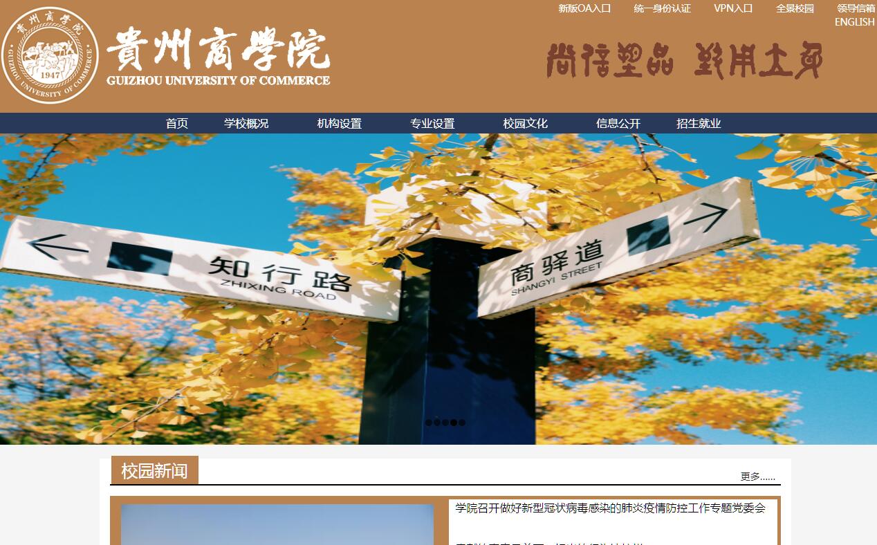 貴州商學(xué)院地處“中國避暑之都”、山地公園省貴州省省會貴陽市,是貴州省培養(yǎng)現(xiàn)代商貿(mào)流通業(yè)、服務(wù)業(yè)應(yīng)用技術(shù)型人才的基地。學(xué)校位于貴陽市白云區(qū)、國家級高新技術(shù)產(chǎn)業(yè)開發(fā)區(qū)、國家級綜合保稅區(qū)核心地帶。學(xué)校占地823畝,校園布局合理、環(huán)境優(yōu)雅,功能完善?,F(xiàn)有在校學(xué)生10100余名,專任教師452人,其中碩、博士210人,副高以上職稱176人。學(xué)校以經(jīng)濟(jì)學(xué)、管理學(xué)為主要學(xué)科,同時涵蓋工學(xué)、社會、人文等多個學(xué)科,設(shè)有管理學(xué)院、旅游管理學(xué)院、經(jīng)濟(jì)學(xué)院、會計學(xué)院、財政金融學(xué)院、計算機(jī)與信息工程學(xué)院、藝術(shù)傳媒學(xué)院、繼續(xù)教育學(xué)院、創(chuàng)新創(chuàng)業(yè)學(xué)院、國際教育學(xué)院等10個二級學(xué)院,現(xiàn)有國際商務(wù)、物流管理、電子商務(wù)、市場營銷、酒店管理、會展經(jīng)濟(jì)與管理、投資學(xué)、物聯(lián)網(wǎng)、人力資源管理等15個本科專業(yè)。圍繞重點學(xué)科專業(yè)建設(shè)了經(jīng)濟(jì)管理實驗實訓(xùn)中心、文化藝術(shù)實驗實訓(xùn)中心、工程技術(shù)實驗實訓(xùn)中心等三大中心8個分中心,和省內(nèi)外大中型企業(yè)共建了120個穩(wěn)定的校外實習(xí)基地。貴州商學(xué)院是一所有70年商科辦學(xué)歷史的本科學(xué)校,商科文化底蘊(yùn)厚重,被社會譽(yù)為“黔商搖籃”。學(xué)校以為地方經(jīng)濟(jì)發(fā)展培養(yǎng)高層次應(yīng)用技術(shù)型商科人才為己任,以市場為導(dǎo)向,堅持“與區(qū)域經(jīng)濟(jì)發(fā)展共進(jìn),與行業(yè)企業(yè)成長共贏” 的產(chǎn)教融合辦學(xué)道路,注重專業(yè)基礎(chǔ),強(qiáng)化實踐應(yīng)用,依托商貿(mào)行業(yè)背景,形成了鮮明的辦學(xué)特色。70年的辦學(xué)歷程,成就了輝煌的業(yè)績:學(xué)校先后獲得相關(guān)國家級榮譽(yù)稱號,并受到時任國務(wù)院副總理李嵐清、教育部長周濟(jì)等等領(lǐng)導(dǎo)人的高度評價。并為貴州商貿(mào)流通業(yè)和現(xiàn)代服務(wù)業(yè)培養(yǎng)了8萬多商科英才。學(xué)校根據(jù)貴州經(jīng)濟(jì)社會發(fā)展戰(zhàn)略,結(jié)合自身學(xué)科優(yōu)勢和特點,確定了“立足貴州、輻射西南、面向全國,服務(wù)商貿(mào)流通及現(xiàn)代服務(wù)業(yè),建成規(guī)模適度、結(jié)構(gòu)合理、商科特色鮮明的應(yīng)用技術(shù)型本科院?!钡霓k學(xué)定位,同時確立了“傳承特色、改革創(chuàng)新,產(chǎn)學(xué)融合、開放辦學(xué),服務(wù)地方、共贏發(fā)展”辦學(xué)思路。在科學(xué)研究,服務(wù)地方經(jīng)濟(jì)發(fā)展方面,近年來,根據(jù)政府、行業(yè)與企業(yè)的應(yīng)用需求,學(xué)校開展高水平應(yīng)用研究和項目合作,先后完成《貴州省物流發(fā)展“十二五”規(guī)劃(2013~2020)》、《貴州省內(nèi)貿(mào)發(fā)展“十三五”規(guī)劃》《貴州省重點開發(fā)區(qū)“十三五”規(guī)劃》和《貴州省食品藥品監(jiān)督管理“十三五”規(guī)劃》等省級規(guī)劃。獲得貴州省政府哲學(xué)社會科學(xué)優(yōu)秀成果二等獎,科學(xué)技術(shù)進(jìn)步獎三等獎”等獎項。學(xué)校始終把校園文化建設(shè)與黔商文化傳承結(jié)合起來,整理出版《貴商文化讀本》,建成“貴商文化教育館”,成立了中國明史學(xué)會沈萬三分會。通過弘揚黔商精神,傳播社會主義核心價值觀,彰顯人文精神,搭建學(xué)生思想教育和綜合素質(zhì)培養(yǎng)的新平臺。形成了“從嚴(yán)管理、愛心育人”的辦學(xué)傳統(tǒng)。學(xué)校與貴州省科技廳、團(tuán)省委三方攜手建設(shè)“創(chuàng)客”孵化器——黔青夢工場,搭建大學(xué)生創(chuàng)新創(chuàng)業(yè)平臺。為創(chuàng)新創(chuàng)業(yè)教育提供軟硬件設(shè)施設(shè)備,供學(xué)生創(chuàng)業(yè)者無償使用,“創(chuàng)客”們在這一空間里開展線上線下交流活動,極大地推動了學(xué)校創(chuàng)新創(chuàng)業(yè)教育的發(fā)展。學(xué)校堅持?jǐn)U大開放,積極推動辦學(xué)國際化。先后與瑞士、加拿大、澳大利亞、馬來西亞、臺灣等境內(nèi)外高校建立合作關(guān)系,在學(xué)生交換、培養(yǎng)師資等方面開展了相關(guān)合作。貴州商學(xué)院將始終堅持“尚信塑品 致用立身”的辦學(xué)理念,以一流的教學(xué)和科研、一流的人才和隊伍、一流的硬件和基礎(chǔ)設(shè)施、一流和管理和服務(wù)、一流的風(fēng)氣和人文環(huán)境為目標(biāo),努力把學(xué)校建設(shè)成為一流高水平商學(xué)院,切實為貴州乃至西南地區(qū)經(jīng)濟(jì)社會發(fā)展提供強(qiáng)有力的商科智力支持和人才支撐。