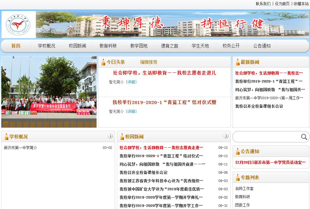 新沂市第一中學(xué)創(chuàng)辦于1949年秋,江蘇省首批重點(diǎn)高中、江蘇省四星級(jí)高中。建校67年來,經(jīng)過一代又一代一中人的不懈努力,學(xué)校逐漸形成了“樂知涵慧、禮愛潤心”的校風(fēng)、“崇德至正、樂教至臻”的教風(fēng)和“博觀厚積、慎思篤學(xué)”的學(xué)風(fēng)。如今,全體一中人正秉承“以人為本、立德為先;和融共進(jìn)、全面發(fā)展”的辦學(xué)理念,向著“建優(yōu)質(zhì)高中、創(chuàng)江蘇名?!钡霓k學(xué)目標(biāo),奮勇拼搏、改革創(chuàng)新,努力打造氣韻高雅、品質(zhì)卓著的精品學(xué)校。學(xué)校占地面積296畝,現(xiàn)有百兆寬帶多媒體教室64口,投資500余萬元的省級(jí)生態(tài)環(huán)保課程基地1個(gè)、徐州市物理、化學(xué)、數(shù)學(xué)名師工作室各1個(gè)、學(xué)生心理健康實(shí)訓(xùn)中心1個(gè)、物理競賽實(shí)驗(yàn)室2個(gè)、化學(xué)競賽實(shí)驗(yàn)室1個(gè),另外還有理化生及其他學(xué)科教學(xué)實(shí)驗(yàn)室28個(gè)、音美專用教室室8個(gè)及軟陶工作室1個(gè)、學(xué)生機(jī)房7個(gè)、校園氣象監(jiān)測站1個(gè)、在建航模工作室1個(gè);有建筑面積34650㎡的學(xué)生宿舍樓5棟、建筑面積7918㎡的師生食堂樓1棟、建筑面積5900㎡的室內(nèi)球館樓1棟、建筑建筑面積11350㎡的圖書館1棟。學(xué)校現(xiàn)有在校學(xué)生3036人;現(xiàn)有教職工343人,其中特級(jí)教師2人、高級(jí)教師204人、徐州市名校長1人、徐州市名師3人、徐州市學(xué)科帶頭人8人、徐州市青年骨干教師9人、省市優(yōu)質(zhì)課一等獎(jiǎng)獲得者120余人、新沂名師53人、研究生學(xué)歷教師30人。近年來,我校以全面提升教學(xué)質(zhì)量為目標(biāo),深入貫徹“以問題為導(dǎo)向,優(yōu)化細(xì)節(jié)管理,深化教學(xué)改革,培養(yǎng)良好習(xí)慣,提升學(xué)生綜合素質(zhì),推動(dòng)教師專業(yè)發(fā)展,打造優(yōu)良‘三風(fēng)’”的辦學(xué)思路,務(wù)實(shí)推進(jìn)“學(xué)講行動(dòng)”、突出“教學(xué)底線管理”,不斷強(qiáng)化“瞄準(zhǔn)方向再出發(fā)、管理方法再改進(jìn)、責(zé)任目標(biāo)再落實(shí)、辦學(xué)質(zhì)量再提升”的“四再”要求,注重雙語學(xué)科教學(xué)管理及教學(xué)質(zhì)量要素管理。在全校師生共同努力下,我校教育教學(xué)質(zhì)量顯著提高,高考本二上線率逐年提升,2013年本二上線率44.8%;2014年本二上線率54.6%,居徐州市各縣中第一名;2015年本二上線率63.09%,居徐州市各縣中第一名; 剛剛揭曉的2016年高考成績,本二上線人數(shù)582人,本二上線率68.5%,繼續(xù)保持在徐州市前列。我校先后獲得了“江蘇省課改樣本學(xué)校”、“徐州市四星級(jí)高中教育教學(xué)質(zhì)量突破獎(jiǎng)”、“東南大學(xué)優(yōu)質(zhì)生源貢獻(xiàn)獎(jiǎng)”和“徐州市教育系統(tǒng)先進(jìn)集體”等榮譽(yù)。同時(shí),我校還先后被東南大學(xué)、南京理工大學(xué)、南京航空航天大學(xué)、中國礦業(yè)大學(xué)、南京醫(yī)科大學(xué)、南京師范大學(xué)、南京中醫(yī)藥大學(xué)、南京工業(yè)大學(xué)、南京信息工程大學(xué)、江蘇大學(xué)等高校命名為“優(yōu)質(zhì)生源基地”。
