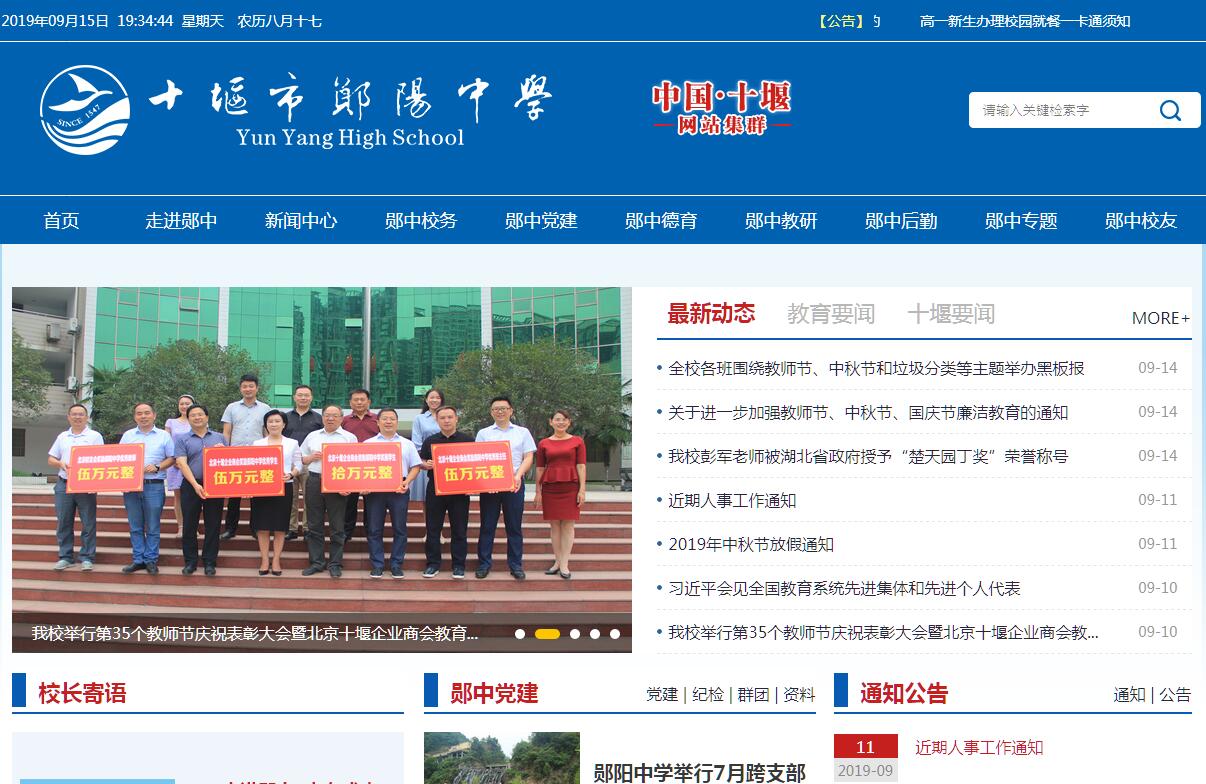 鄖陽中學(xué)(Yun Yang High School)的前身為始建于明朝嘉靖二十六年的鄖山書院,1902年改辦為鄖陽府中學(xué)堂,抗戰(zhàn)時(shí)期學(xué)校被確立為湖北省立第八高級(jí)中學(xué),新中國成立后定名為鄖陽中學(xué),為湖北省首批重點(diǎn)中學(xué)、湖北省示范中學(xué)、北京大學(xué)中學(xué)校長實(shí)名推薦制中學(xué),全國中學(xué)百年名校。鄖陽中學(xué)有著悠久的辦學(xué)歷史,自1902年改辦中學(xué)開啟鄂西北現(xiàn)代教育先河以來,曾數(shù)易其名。1912年,根據(jù)教育部頒發(fā)的《普通教育暫行辦法》的規(guī)定,鄖陽府中學(xué)堂改稱為鄖山中學(xué);1922年,鄖陽府改屬湖北省第十一行政督察區(qū),學(xué)校易名為湖北省立第十一中學(xué);1938年,為適應(yīng)抗日戰(zhàn)時(shí)環(huán)境,全省成立湖北省立聯(lián)合中學(xué),學(xué)校隨之更名為湖北省立聯(lián)合中學(xué)鄖縣分校,設(shè)初中、高中、師范三部;1942年,在初中、師范先后分出后,學(xué)校與省立聯(lián)合中學(xué)均縣分校(原谷城分校)合并,成立新的湖北省立第八高級(jí)中學(xué);1947年,學(xué)校改名為湖北省立鄖縣高級(jí)中學(xué),同年學(xué)校先遷均縣,再遷襄陽,又遷松滋,后部分師生返回鄖縣原校址;1950年3月28日,新中國湖北省人民政府教育廳電文兩鄖行署,決定恢復(fù)湖北省立鄖陽聯(lián)合中學(xué),設(shè)中學(xué)、師范、師訓(xùn)三部;1954年,師范遷出后,學(xué)校改名為湖北省鄖陽中學(xué);1956年,因襄陽、鄖陽合并,學(xué)校由襄陽專區(qū)直管交由鄖縣,改名為湖北省鄖縣第一中學(xué);1965年,鄖陽行署恢復(fù),學(xué)校收歸鄖陽專區(qū)直管并恢復(fù)原名湖北省鄖陽中學(xué);1975年,因時(shí)事需要,學(xué)校改辦為湖北省鄖陽地區(qū)五七大學(xué),期間校內(nèi)辦有技校、華中農(nóng)業(yè)學(xué)院鄖陽分院;1979年,學(xué)?;謴?fù)辦中學(xué),命名為湖北省鄖陽第一中學(xué);1994年,十堰市和鄖陽地區(qū)合并,學(xué)校定名為湖北省十堰市鄖陽中學(xué)。1962年和1981年,湖北省教育廳先后兩次把學(xué)校列為湖北省重點(diǎn)中學(xué)。2006年,學(xué)校被評(píng)為湖北省示范中學(xué)。學(xué)?,F(xiàn)址位于湖北省十堰市北京北路60號(hào),占地面積238畝,現(xiàn)有76個(gè)教學(xué)班,在校學(xué)生近4000人。