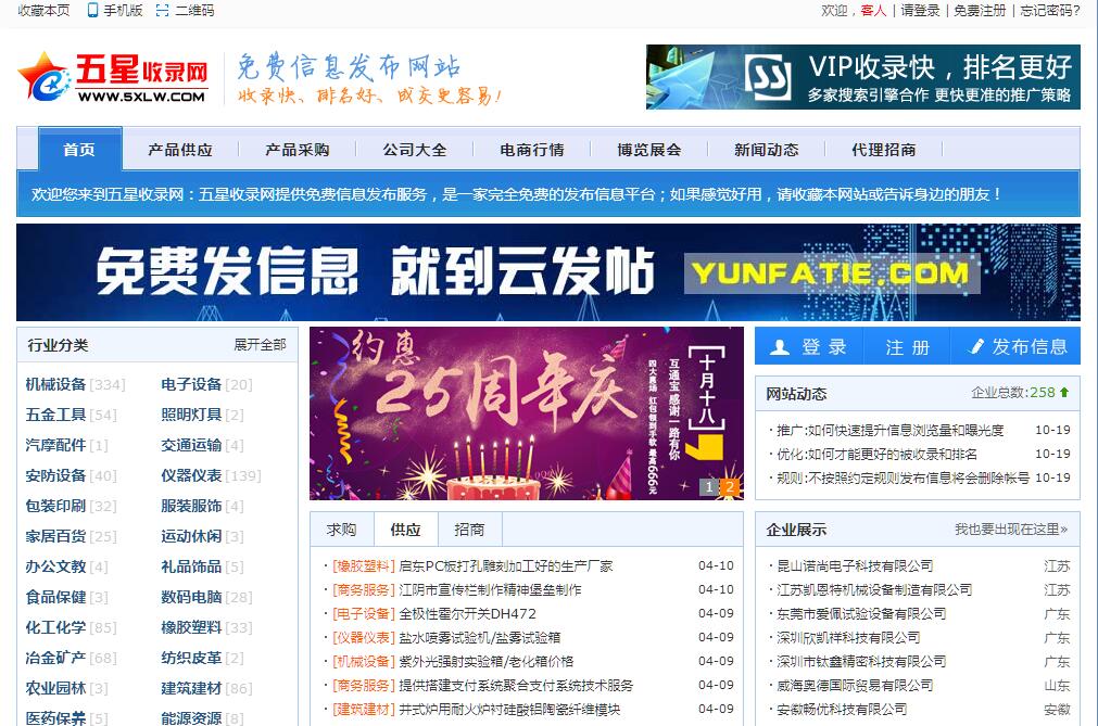 | 網(wǎng)站簡介: 五星收錄網(wǎng)是一個可以免費信息發(fā)布網(wǎng)站,在這里你可以免費推廣您的信息和產(chǎn)品,匯集海量供求信息,是行業(yè)領(lǐng)先的網(wǎng)上信息發(fā)布和推廣市場,信息發(fā)布收錄快,排名好,就到五星收錄網(wǎng)! |