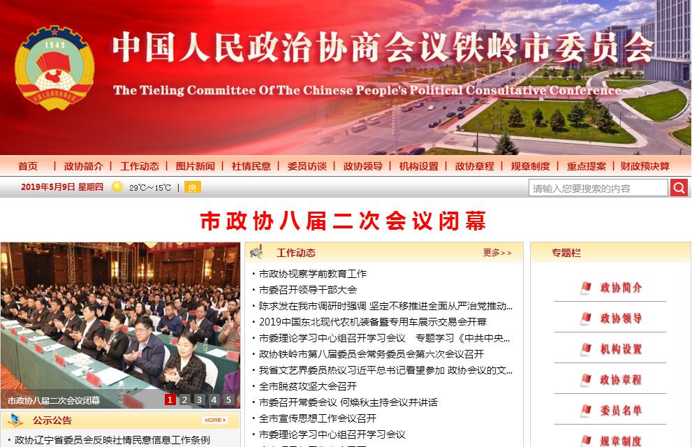 中國(guó)人民政治協(xié)商會(huì)議鐵嶺市委員會(huì)(簡(jiǎn)稱鐵嶺市政協(xié))是中國(guó)人民政治協(xié)商會(huì)議地方委員會(huì),是鐵嶺市具有廣泛代表性的愛國(guó)統(tǒng)一戰(zhàn)線組織,是中國(guó)共產(chǎn)黨領(lǐng)導(dǎo)的多黨合作和政治協(xié)商的重要機(jī)構(gòu)。根據(jù)政協(xié)章程規(guī)定,鐵嶺市政協(xié)的主要職能是政治協(xié)商和民主監(jiān)督,組織參加市政協(xié)的各黨派、團(tuán)體和各族各界人士參政議政。政治協(xié)商是對(duì)國(guó)家和鐵嶺市的大政方針以及政治、經(jīng)濟(jì)、文化和社會(huì)生活中的重要問題在決策之前進(jìn)行協(xié)商和就決策執(zhí)行過程中的重要問題進(jìn)行協(xié)商。政治協(xié)商的主要形式是政協(xié)舉行的各種協(xié)商會(huì)議,其中包括:政協(xié)委員會(huì)全體會(huì)議、常務(wù)委員會(huì)會(huì)議、主席會(huì)議、常務(wù)委員專題座談會(huì)、各專門委員會(huì)會(huì)議,根據(jù)需要召開的各黨派、無黨派愛國(guó)人士、人民團(tuán)體、少數(shù)民族人士和各界愛國(guó)人士的代表參加的協(xié)商座談會(huì)等,以及政協(xié)負(fù)責(zé)人或委員應(yīng)邀列席市委召開的常委會(huì)、全委會(huì)或人大常委會(huì)舉行的人民代表大會(huì)、有關(guān)常務(wù)委員會(huì),市政府舉行的部署工作、研究重大問題的常務(wù)會(huì)議和全體會(huì)議,聽取有關(guān)情況,直接參與協(xié)商討論。此外,還通過舉辦情況通報(bào)會(huì)、議政會(huì)、聽取意見座談會(huì)等進(jìn)行協(xié)商活動(dòng)。民主監(jiān)督是對(duì)國(guó)家憲法、法律和地方法規(guī)的實(shí)施,重大方針政策的貫徹執(zhí)行、國(guó)家機(jī)關(guān)及其工作人員的工作,通過建議和批評(píng)進(jìn)行監(jiān)督。民主監(jiān)督的主要形式是通過政協(xié)委員會(huì)全體會(huì)議向市委、市政府提出意見、建議;通過常務(wù)委員會(huì)、主席會(huì)議向市委、市政府提出的建議案;各專門委員會(huì)提出的建議或有關(guān)視察、調(diào)查報(bào)告;參加市委、市政府有關(guān)部門組織的調(diào)查和檢查活動(dòng)。參政議政是政治協(xié)商和民主監(jiān)督的拓展與延伸。其內(nèi)容除政治協(xié)商、民主監(jiān)督規(guī)定的內(nèi)容外,還包括選擇人民群眾關(guān)心、黨政部門重視、政協(xié)有條件做的課題,組織調(diào)查和研究,積極主動(dòng)地向黨政領(lǐng)導(dǎo)機(jī)關(guān)提出建設(shè)性的意見:通過多種方式,廣開言路、充分發(fā)揮委員專長(zhǎng)和作用,為改革開放和社會(huì)主義現(xiàn)代化建設(shè)獻(xiàn)計(jì)獻(xiàn)策;廣泛參與政治、經(jīng)濟(jì)、文化和社會(huì)活動(dòng),對(duì)一些共同關(guān)心的事項(xiàng)展開評(píng)議等等。