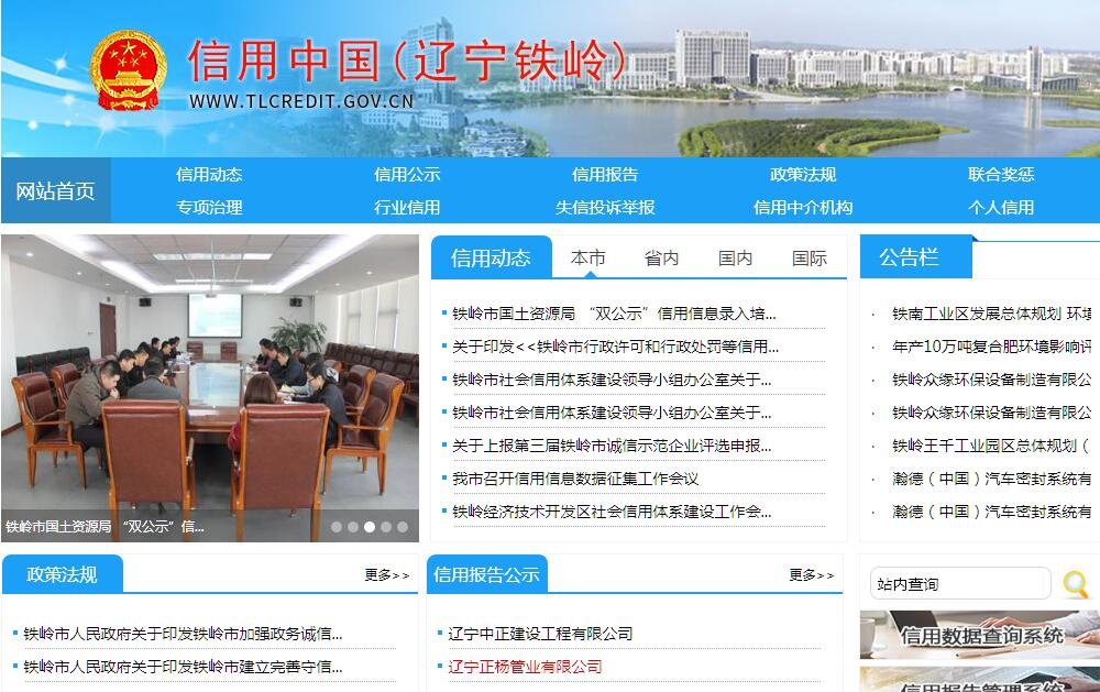 | 網(wǎng)站簡介: 信用鐵嶺網(wǎng)由鐵嶺市社會信用體系建設(shè)領(lǐng)導(dǎo)小組辦公室主辦。 |