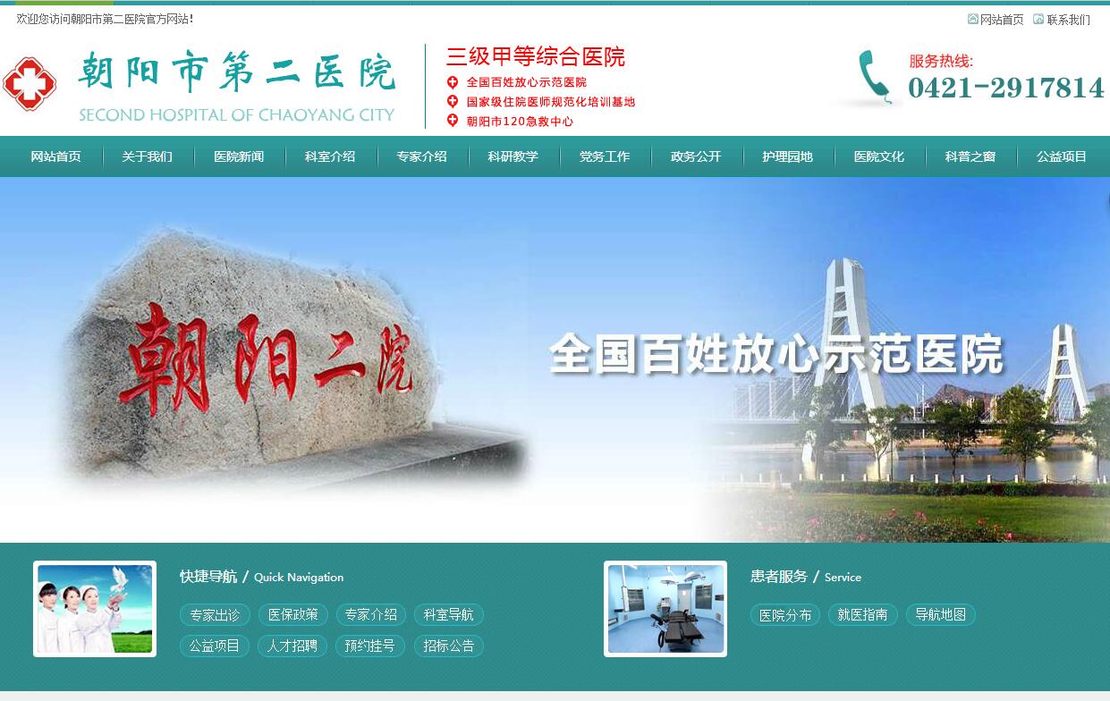 朝陽市第二醫(yī)院始建于1983年,院址前身為中國醫(yī)科大學(xué)附屬第二醫(yī)院。是集醫(yī)療、科研、教學(xué)、預(yù)防、康復(fù)于一體的三級(jí)甲等綜合醫(yī)院,為國家級(jí)住院醫(yī)師規(guī)范化培訓(xùn)基地,臨床教學(xué)醫(yī)院。醫(yī)院占地面積4.4萬平方米,建筑面積12萬平方米,開設(shè)病床1145張,設(shè)有41個(gè)病區(qū),臨床、醫(yī)技科室65個(gè),行政和職能科室28個(gè)。有2個(gè)省級(jí)重點(diǎn)???,20個(gè)市級(jí)重點(diǎn)專科。為省首批危重孕產(chǎn)婦和新生兒搶救中心、省首批兒童聽力障礙診斷單位、省卒中中心。為朝陽市急救中心、朝陽市糖尿病防治中心、朝陽市腫瘤防治中心、朝陽市小兒腦癱康復(fù)中心、朝陽市腎病防治中心。為朝陽市腫瘤放療質(zhì)量控制中心、朝陽市口腔醫(yī)療質(zhì)量控制中心、朝陽市心臟超聲專業(yè)質(zhì)量控制中心、朝陽市臨床病理質(zhì)量控制中心、朝陽市臨床檢驗(yàn)管理與質(zhì)量控制中心、朝陽市醫(yī)用氧倉臨床治療控制中心、朝陽市婦科疾病質(zhì)量控制中心、朝陽市消化內(nèi)鏡質(zhì)量控制中心、朝陽市產(chǎn)科專業(yè)質(zhì)量控制中心、朝陽市臨床麻醉質(zhì)量控制中心、朝陽市兒科專業(yè)質(zhì)量控制中心、朝陽市內(nèi)分泌專業(yè)質(zhì)量控制中心、朝陽市風(fēng)濕免疫疾病質(zhì)量控制中心。為北京腫瘤醫(yī)院遠(yuǎn)程醫(yī)療協(xié)作單位。醫(yī)院現(xiàn)有職工1686人,其中衛(wèi)生專業(yè)技術(shù)人員1408人,高級(jí)職稱270人,中級(jí)職稱307人。碩士研究生導(dǎo)師7人;有11人擔(dān)任國家專業(yè)委員會(huì)委員及青委學(xué)組委,193人擔(dān)任省以上各學(xué)術(shù)委員會(huì)副主任委員、常委、委員。醫(yī)院擁有萬元以上在運(yùn)行設(shè)備1057臺(tái)(件),總價(jià)值2.2億元。包括聯(lián)影3.0T磁共振、西門子1.5T磁共振、西門子128層CT和西門子64層大孔鏡CT,瓦里安直線加速器等設(shè)備。近年來,獲得國家、省、市科研獎(jiǎng)勵(lì)220余項(xiàng),其中中華醫(yī)學(xué)科技二等獎(jiǎng)1項(xiàng);省級(jí)發(fā)明創(chuàng)造二等獎(jiǎng)2項(xiàng)、省科技進(jìn)步三等獎(jiǎng)2項(xiàng)、省科學(xué)技術(shù)研究成果22項(xiàng);市級(jí)科技進(jìn)步獎(jiǎng)、自然學(xué)術(shù)成果獎(jiǎng)一、二、三等獎(jiǎng)192項(xiàng)。醫(yī)院先后獲得全國百姓放心示范醫(yī)院百佳醫(yī)院、全國醫(yī)院文化建設(shè)先進(jìn)單位、醫(yī)院文化建設(shè)先進(jìn)集體、國家級(jí)節(jié)約型公共機(jī)構(gòu)示范單位;省文明醫(yī)院、省十佳愛嬰醫(yī)院、省抗癌工作突出貢獻(xiàn)先進(jìn)集體、省醫(yī)療扶貧突出貢獻(xiàn)單位、省精神文明創(chuàng)建工作先進(jìn)單位,省巾幗建功先進(jìn)集體;朝陽市文明單位、朝陽市誠信創(chuàng)建活動(dòng)AAA級(jí)誠信單位、朝陽市衛(wèi)生工作先進(jìn)單位、朝陽市脫貧攻堅(jiān)先進(jìn)集體等多種榮譽(yù)稱號(hào)。