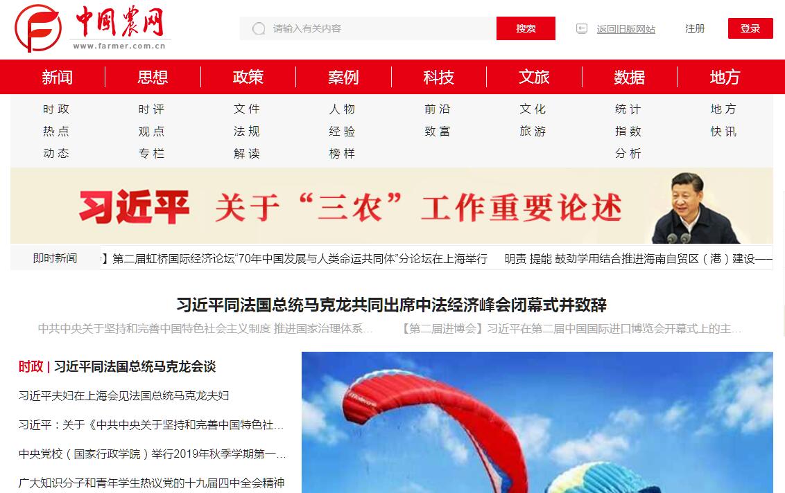 中國農(nóng)業(yè)新聞網(wǎng)(www.farmer.com.cn)是經(jīng)國務院新聞辦公室批準刊載新聞的綜合性網(wǎng)站,是中央級綜合性大報——農(nóng)民日報建設的大型網(wǎng)上信息發(fā)布平臺,是農(nóng)業(yè)農(nóng)村部權威涉農(nóng)信息發(fā)布的重要窗口,是國家權威“三農(nóng)”主流網(wǎng)絡媒體?!爸袊r(nóng)業(yè)新聞網(wǎng)”創(chuàng)建于2004年,是農(nóng)民日報社建設的“三農(nóng)”網(wǎng)絡服務平臺。“中國農(nóng)業(yè)新聞網(wǎng)”網(wǎng)站在保持農(nóng)民日報“三農(nóng)”報道權威性的同時,充分發(fā)揮互聯(lián)網(wǎng)特性,采用文字、圖片、動漫、短信等方式,依托農(nóng)民日報、中國農(nóng)村信用合作報、中國畜牧報、中國漁業(yè)報等報紙和中華全國農(nóng)民報協(xié)會各省市會員單位的采編力量,向全世界發(fā)布信息。“中國農(nóng)業(yè)新聞網(wǎng)”網(wǎng)站現(xiàn)有采編人員三百多名,全國各省市區(qū)30多個記者站,合作媒體百余家,是國際互聯(lián)網(wǎng)上海內(nèi)外讀者了解中國農(nóng)業(yè)、農(nóng)村和農(nóng)民的重要窗口。是“三農(nóng)”新聞資訊服務平臺、農(nóng)業(yè)數(shù)據(jù)應用服務平臺、農(nóng)產(chǎn)品電子交易服務平臺。國務院有關領導來網(wǎng)站視察,對中國農(nóng)業(yè)新聞的工作給予了充分肯定?!爸袊r(nóng)業(yè)新聞網(wǎng)”網(wǎng)站每天定時發(fā)布新聞,日更新量近千條,設有100多個欄目。在開辟“大地社區(qū)”加強網(wǎng)友互動的基礎上,網(wǎng)站力求增強吸引力、可讀性、親和力。