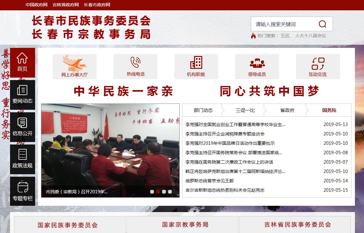 長春市民族事務委員會主要職責:(一)貫徹執(zhí)行黨和國家關于民族工作的方針、政策;組織開展民族理論、民族政策和民族工作重大問題的調查研究,提出有關民族工作的政策建議;起草全市有關民族事務的地方性法規(guī)和規(guī)章草案,擬訂民族相關工作政策,并監(jiān)督實施。(二)負責協(xié)調推動有關部門履行民族工作相關職責;促進民族政策在經濟發(fā)展和社會事業(yè)有關領域的實施、銜接;對政府系統(tǒng)民族工作進行業(yè)務指導。(三)研究提出協(xié)調民族關系的工作建議,協(xié)調處理民族關系中的重大事項;參與協(xié)調民族地區(qū)社會穩(wěn)定工作;組織指導民族政策、民族法律法規(guī)和民族基本知識的宣傳教育工作;組織協(xié)調全市民族工作領域有關對外和對港澳臺的交流與合作,促進各民族共同團結奮斗、共同繁榮發(fā)展,維護國家統(tǒng)一;組織開展民族團結進步創(chuàng)建活動,承辦市政府民族團結進步表彰事宜。(四)負責擬訂少數(shù)民族事業(yè)發(fā)展專項規(guī)劃,監(jiān)督檢查規(guī)劃實施情況,參與制定少數(shù)民族經濟社會相關領域的發(fā)展規(guī)劃;促進建立和完善少數(shù)民族事業(yè)發(fā)展綜合評價監(jiān)測體系;推進實施民族事務服務體系和民族事務管理信息化建設。(五)研究分析少數(shù)民族經濟發(fā)展、社會事業(yè)方面的問題并提出特殊政策建議,協(xié)調或配合有關部門處理相關事宜,配合承辦少數(shù)民族扶貧開發(fā)事宜;組織協(xié)調全市少數(shù)民族科技發(fā)展、對口支援和經濟技術合作等有關工作。(六)管理全市少數(shù)民族語言文字工作,指導少數(shù)民族語言文字的翻譯、出版和民族古籍的搜集、整理、出版工作。(七)參與擬訂少數(shù)民族人才隊伍建設規(guī)劃,聯(lián)系少數(shù)民族干部,協(xié)助有關部門做好少數(shù)民族干部的培養(yǎng)、教育和使用工作。(八)貫徹執(zhí)行黨和國家關于宗教工作的方針、政策,分析研究國內外宗教理論和宗教形勢,調查了解全市宗教發(fā)展趨勢現(xiàn)狀,掌握和分析、匯總宗教方面動態(tài)和信息,提出處理宗教領域問題的政策和建議。(九)依法履行宗教事務管理職責。依法保護公民宗教信仰自由和正常的宗教活動;維護宗教界合法權益,促進宗教關系和諧。(十)指導宗教團體依法依章開展活動;指導和支持宗教團體加強自身建設;推動宗教團體在宗教界開展愛國主義、社會主義、擁護祖國統(tǒng)一和民族團結的自我教育;辦理宗教團體需由政府解決或協(xié)調的有關事務。(十一)指導全市各級政府宗教事務部門依法履行管理職能,處理宗教事務的重大事件,防范利用宗教進行的非法、違法活動,抵御境外利用宗教進行的滲透活動。(十二)負責組織宗教干部和宗教教職人員的教育培訓工作。(十三)負責全市宗教方面的外事歸口管理工作,組織、指導有關部門和宗教界對外以及對港澳臺的宗教交往活動。(十四)承辦市政府交辦的其他事項。