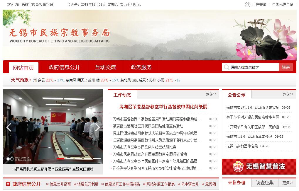 無錫市民族宗教事務(wù)局是無錫市人民政府組成部門。其主要職責(zé)是:(一)貫徹執(zhí)行中央關(guān)于民族宗教工作的方針、政策和有關(guān)法律法規(guī),組織開展民族宗教理論、政策和工作重大問題的調(diào)查研究,提出有關(guān)政策建議。(二)開展民族宗教法律法規(guī)和政策的宣傳教育工作,督促檢查民族宗教法律法規(guī)和政策的執(zhí)行情況。承擔(dān)民族宗教事務(wù)行政審批、行政復(fù)議和行政訴訟工作。組織協(xié)調(diào)網(wǎng)絡(luò)宗教事務(wù)管理,規(guī)范網(wǎng)絡(luò)宗教信息服務(wù)。協(xié)調(diào)推動有關(guān)部門履行民族宗教工作相關(guān)職責(zé)。(三)推進實施民族宗教事務(wù)服務(wù)體系和民族宗教事務(wù)管理信息化建設(shè)。(四)會同有關(guān)部門管理少數(shù)民族專項資金,會同有關(guān)部門做好少數(shù)民族扶貧工作,協(xié)助有關(guān)部門加強對生產(chǎn)銷售清真食品企業(yè)的扶持和管理,落實少數(shù)民族特需商品生產(chǎn)和供應(yīng)工作。(五)依法保護少數(shù)民族公民的合法權(quán)益,根據(jù)上級要求開展民族團結(jié)進步創(chuàng)建活動,協(xié)助有關(guān)部門做好培養(yǎng)選拔少數(shù)民族干部工作。(六)依法履行宗教事務(wù)管理職責(zé),依法保護公民宗教信仰自由和正常的宗教活動。(七)指導(dǎo)宗教團體依法依章開展活動,引導(dǎo)各宗教堅持中國化方向,支持宗教團體加強自身建設(shè),推動宗教團體在宗教界開展愛國主義、社會主義、擁護祖國統(tǒng)一和民族團結(jié)的自我教育,辦理宗教團體需由政府解決和協(xié)調(diào)的有關(guān)事務(wù)。(八)指導(dǎo)全市負責(zé)民族宗教事務(wù)的部門依法履行管理職責(zé),協(xié)調(diào)處理民族宗教事務(wù)的重大事項,防范利用宗教進行的非法、違法活動,抵御境外利用宗教進行的滲透活動。(九)負責(zé)對涉及宗教文物、文化資產(chǎn)的相關(guān)管理工作,協(xié)調(diào)宗教團體、宗教活動場所承辦與發(fā)展無錫宗教文化、旅游事業(yè)相關(guān)的事宜。牽頭協(xié)調(diào)承辦世界佛教論壇相關(guān)工作。(十)負責(zé)宗教方面的對外交流歸口管理工作,指導(dǎo)全市負責(zé)民族宗教事務(wù)的部門和宗教界開展對外以及對港澳臺的宗教交往活動。(十一)按照職責(zé)分工做好相關(guān)行業(yè)、領(lǐng)域的安全生產(chǎn)監(jiān)督管理工作。(十二)完成市委市政府、市委統(tǒng)戰(zhàn)部交辦的其他任務(wù)。