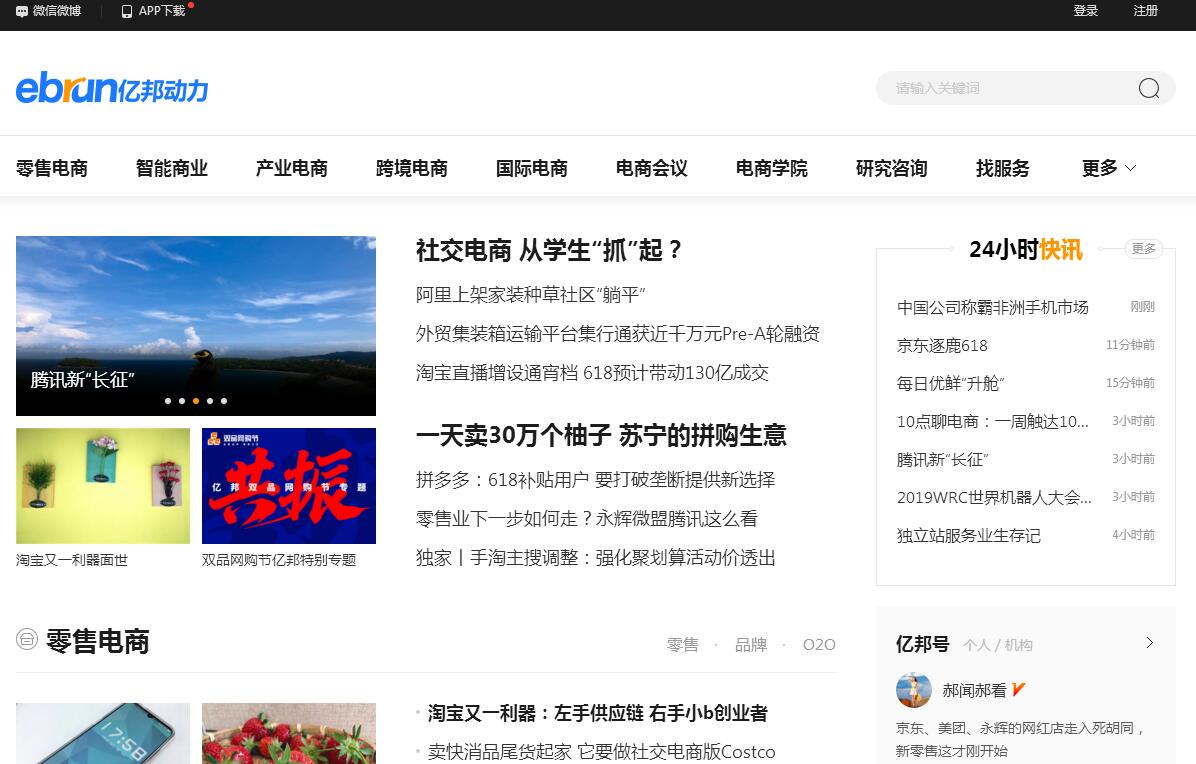 | 網(wǎng)站簡(jiǎn)介: 億邦動(dòng)力網(wǎng)是國內(nèi)最大的電子商務(wù)專業(yè)媒體,圍繞B2B、B2C、C2C、跨境電商、移動(dòng)電商、電商服務(wù)、零售、電商資本、電商政策等領(lǐng)域與方向,提供新聞、案例、數(shù)據(jù)、評(píng)論、招聘、研究、咨詢、會(huì)議、互聯(lián)網(wǎng)廣告等業(yè)務(wù)。 |