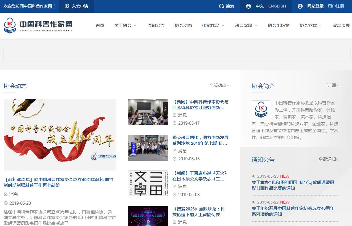 | 網站簡介: 中國科普作家網由中國科普作家協(xié)會主辦。中國科普作家協(xié)會是以科普作家為主體,并由眾多科普相關人士和有關單位自愿組成的全國性、學術性、非營利性的社會組織。 |