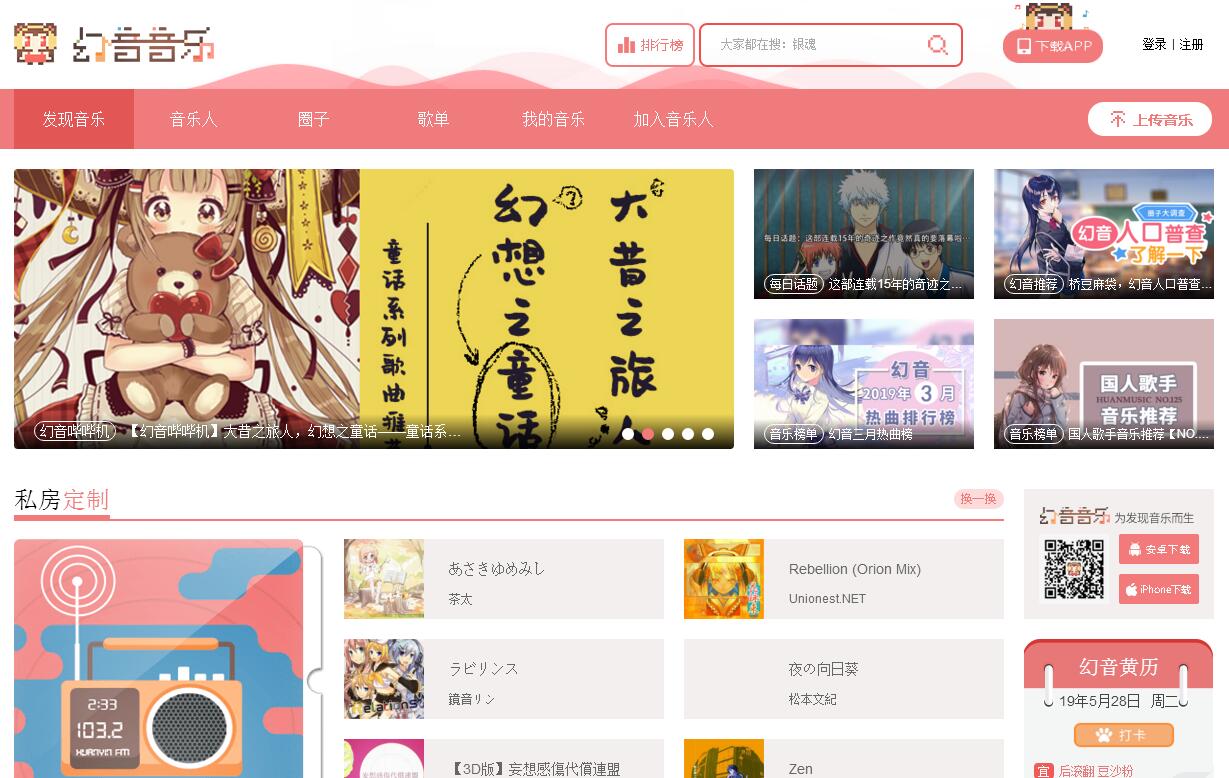 | 網(wǎng)站簡介: 幻音音樂是國內(nèi)最大的95后音樂社區(qū),幻音娘協(xié)同一眾原創(chuàng)音樂人帶來更多的音樂,千人千面聽見不同,這里有ACG新番、優(yōu)秀原創(chuàng)、同人翻唱、idol偶像流行歌曲、幻音音樂給你想聽的95后音樂社區(qū)。 |