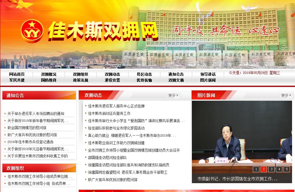 佳木斯位于華廈東極,地處三江平原,是祖國(guó)最早迎接太陽(yáng)的東方第一城;松花江橫貫全境,北臨黑龍江、東傍烏蘇里江與俄羅斯相望,是鑲欽在三江大地上的一顆明珠;戰(zhàn)略地位重要,自古便成為兵家必爭(zhēng)之地,是東北革命老區(qū)。在中華民族和人民解放事業(yè)的畫卷中,記載著三江軍民:打擊沙俄入侵的卓越功勛、抗日聯(lián)軍英勇殺敵的光輝戰(zhàn)績(jī)、東北革命根據(jù)地支援全國(guó)解放的勝利史詩(shī)、全國(guó)抗美援朝后方保障基地之一的偉大業(yè)績(jī),英雄的佳木斯也在贏得了“東北小延安”的美譽(yù),戰(zhàn)火硝煙中培育和鍛造出“艱苦奮斗、愛(ài)國(guó)擁軍、無(wú)私奉獻(xiàn)”的“東北小延安精神”得到了代代相傳、發(fā)揚(yáng)光大。佳木斯是一片美麗而神奇、富饒而深情的土地。國(guó)家進(jìn)入和平建設(shè)時(shí)期,奮斗在三江大地上的軍民,創(chuàng)造了舉世矚目的“北大荒精神”、涌現(xiàn)出“人民的好兒子”劉英俊。特別是改革開(kāi)放的新時(shí)期,佳木斯市委、市政府圍繞黨和軍隊(duì)中心工作,帶領(lǐng)廣大軍民創(chuàng)新“雙擁”、提高“兩力”, 走出一條物質(zhì)資源、文化智力、法規(guī)政策、科學(xué)技術(shù)、信息人才擁軍的發(fā)展路子,不斷探索出培養(yǎng)軍地兩用人才、軍民共建共育、創(chuàng)建雙擁城等重大舉措,在全國(guó)都是首開(kāi)先河。1987年全國(guó)擁軍優(yōu)屬、擁政愛(ài)民經(jīng)驗(yàn)交流會(huì)在佳木斯召開(kāi),此后,沈陽(yáng)軍區(qū)、黑龍江省的“擁政愛(ài)民共建共育表彰大會(huì)”,“雙擁工作經(jīng)驗(yàn)交流會(huì)”,“ 雙擁先進(jìn)單位、愛(ài)國(guó)擁軍模范命名表彰大會(huì)”又分別在佳木斯召開(kāi),使佳木斯市成為“擁軍愛(ài)民先進(jìn)單位”和“雙擁模范城”及“全國(guó)開(kāi)發(fā)使用退伍軍人兩用人才先進(jìn)單位”。自1991年國(guó)家首批命名“全國(guó)雙擁模范城”,佳木斯市就成為“全國(guó)雙擁十面紅旗”城市之一,到2008年已奪得全國(guó)雙擁模范城“六連冠”。2009年以來(lái),全市軍民按照市委、市政府“把雙擁當(dāng)作政治責(zé)任不能忘、把雙擁當(dāng)作政治優(yōu)勢(shì)不能放、把全國(guó)雙擁模范城當(dāng)作必爭(zhēng)榮譽(yù)不能丟”總要求開(kāi)展雙擁工作,到2012又獲得全國(guó)雙擁模范城“七連冠”。在30多年的雙擁模范城創(chuàng)建活動(dòng)中,佳木斯市所屬的同江市和原撫遠(yuǎn)縣都成為“全國(guó)雙擁模范城”,其它縣(市)區(qū),還有119個(gè)單位、169名個(gè)人都曾獲得上級(jí)命名和表彰;駐佳部隊(duì)都獲得過(guò)上級(jí)給予的共建共育、擁政愛(ài)民先進(jìn)單位等榮譽(yù)。其中,全國(guó)智力擁軍模范黃景秋、科技擁軍模范梁鳳穎、愛(ài)國(guó)擁軍模范宋金和、優(yōu)秀人民警察譚勇、新一代士兵楷模向南林等先進(jìn)個(gè)人;民族團(tuán)結(jié)進(jìn)步先進(jìn)集體某邊防團(tuán)五連、擁政愛(ài)民先進(jìn)單位65947部隊(duì),抗洪搶險(xiǎn)先鋒艇3402艇等先進(jìn)集體都是在全國(guó)、全軍具有重大影響的典型代表。還有個(gè)體車主史澤普、北疆擁軍九姐妹、輪椅擁軍服務(wù)隊(duì)、尹阿琴老媽媽服務(wù)隊(duì)等擁軍優(yōu)屬先進(jìn)典型都是推動(dòng)雙擁工作社會(huì)化的引領(lǐng)者。2012年,全市軍民為實(shí)現(xiàn)佳木斯市黨的第十二次代表大會(huì)上提出奪取全國(guó)雙擁模范城“八連冠”的奮斗目標(biāo),堅(jiān)持軍民融合,走開(kāi)經(jīng)濟(jì)建設(shè)與國(guó)防建設(shè)同步發(fā)展的雙擁路子;著眼富民強(qiáng)邊,構(gòu)筑地方利益和部隊(duì)利益互動(dòng)雙盈的雙擁模式;注重以人為本,建設(shè)政府行為和社會(huì)行為有機(jī)結(jié)合的雙擁格局;賦予時(shí)代特色,造成弘揚(yáng)傳統(tǒng)和開(kāi)拓創(chuàng)新聯(lián)動(dòng)互進(jìn)的雙擁態(tài)勢(shì),創(chuàng)新雙擁文化,開(kāi)展建設(shè)雙擁文化年;以兩新組織為主力,加快雙擁社會(huì)化;軍民深度整合,推進(jìn)雙擁工作轉(zhuǎn)型,促進(jìn)了雙擁由常規(guī)開(kāi)展向服務(wù)中心工作轉(zhuǎn)變;由常規(guī)落實(shí)向服務(wù)發(fā)展轉(zhuǎn)變。軍民攜手并肩,始終堅(jiān)持瞄最新的看齊、選最好的學(xué)習(xí)、與最強(qiáng)的比拼、挑最快的趕超,努力打造雙擁文化建設(shè)、兩新組織擁軍、推進(jìn)雙擁工作社會(huì)化、軍轉(zhuǎn)干部就業(yè)創(chuàng)業(yè)的佳木斯模式,向爭(zhēng)創(chuàng)全國(guó)雙擁模范城“八連冠”沖刺。