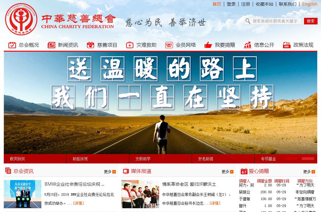 中華慈善總會成立于1994年,是經(jīng)中國政府批準依法注冊登記,由熱心慈善事業(yè)的公民、法人及其他社會組織志愿參加的全國性非營利公益社會團體,目前在全國擁有401個會員單位。其宗旨是:發(fā)揚人道主義精神,弘揚中華民族扶貧濟困的傳統(tǒng)美德,幫助社會上不幸的個人和困難群體,開展多種形式的社會救助工作。中華慈善總會第一任會長是崔乃夫先生;第二任會長是閻明復先生;第三任會長是第九屆、第十屆全國政協(xié)常委,民政部原黨組副書記、副部長范寶俊先生;現(xiàn)任會長是第十一屆全國人大代表、財經(jīng)委員會委員,全國老齡辦原常務副主任李本公先生。中華慈善總會自成立至今,始終堅持恪守總會宗旨,積極倡導慈善意識,努力開拓慈善工作的服務領域,廣泛動員社會力量,多方籌措慈善資金,配合政府有關部門在緊急救援、扶貧濟困、安老助孤、醫(yī)療救助、助學支教等方面做了大量工作,取得了顯著成績。近幾年來,中華慈善總會特別注意發(fā)揮其本身所特有的涵蓋面較為寬泛的特點,開展了救災、扶貧、安老、助孤、支教、助學、扶殘、助醫(yī)等八大方面幾十個慈善項目,逐步形成了遍布全國、規(guī)模巨大的慈善援助體系。截至目前,中華慈善總會直接募集慈善款物共折合人民幣一千二百多億元,數(shù)以千萬計的困難群眾得到了不同形式的救助。中華慈善總會實行嚴格的財務制度和審計制度,聘請了知名會計師事務所進行年度財務審計,重大募捐活動接受國家審計署的審計,并隨時接受社會監(jiān)督。中華慈善總會始終堅持公開、公正、依法、自律的財務理念,社會公信力穩(wěn)步提高。 中華慈善總會不斷加強對外聯(lián)絡工作,與港澳臺和海外的許多公益慈善機構建立了良好的合作關系,并共同實施了多項合作項目,得到了國際慈善組織的普遍認同。1998年,中華慈善總會加入了國際聯(lián)合勸募協(xié)會(現(xiàn)更名為“全球聯(lián)合之路”),成為該組織中在中國大陸的唯一會員??梢哉f,中華慈善總會作為中國最大、最有影響力的慈善組織之一,已經(jīng)開始成為聯(lián)系海內(nèi)外華人和國際友人,共同促進中國慈善事業(yè)穩(wěn)步發(fā)展的一條重要樞紐。