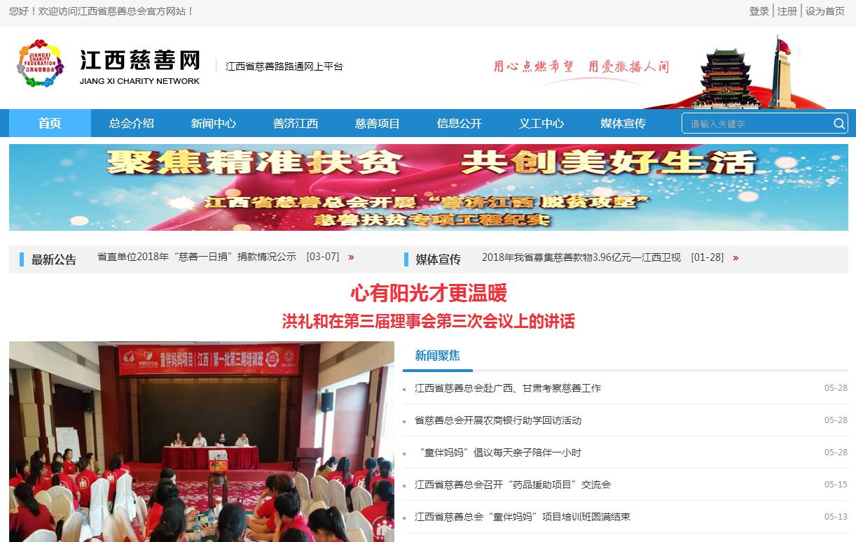 江西省慈善總會成立于2002年9月18日,以弘揚慈善文化、普及慈善理念、募集慈善資金、幫扶困難群眾為宗旨,由熱心慈善事業(yè)的公民、法人及其他社會組織自愿參加的、依法登記注冊、具有獨立法人資格的社會團體。在省委、省政府的堅強領(lǐng)導(dǎo)下,在中華慈善總會、省民政廳的正確指導(dǎo)下,江西省慈善總會以強烈的政治擔(dān)當(dāng)和社會責(zé)任感,緊緊圍繞省委、省政府脫貧攻堅戰(zhàn)略部署,大力實施“善濟江西 脫貧攻堅”慈善扶貧專項工程,開展了“刨窮根、栽富樹、救病難、暖床前、扶自立、推廁改”六大任務(wù),搭建了“慈善陽光班”、 “青苗關(guān)愛工程”、慈善藥品援助等助學(xué)、助醫(yī)、助困平臺,與多個國際慈善組織合作開展慈善活動,惠及困難群眾近千萬人次,得到了社會各界的廣泛認(rèn)同和廣大貧困群眾的充分信賴,為維護社會公平、促進(jìn)社會穩(wěn)定、緩解社會矛盾、完善社會保障體系作出了積極的努力,充分發(fā)揮了慈善事業(yè)在社會保障體系中的積極作用。尤其是救助先心患兒的“生命的禮物”榮獲國家民政部頒發(fā)的“中華慈善獎”;救助貧困大病患兒的“青苗關(guān)愛工程”榮獲中華慈善總會頒發(fā)的“中華慈善突出貢獻(xiàn)獎”;此外,在江西省首屆“贛鄱慈善獎評選表彰活動中,“青苗關(guān)愛工程”和“衣戀助學(xué)項目”分別榮獲省政府頒發(fā)的“贛鄱慈善獎”。