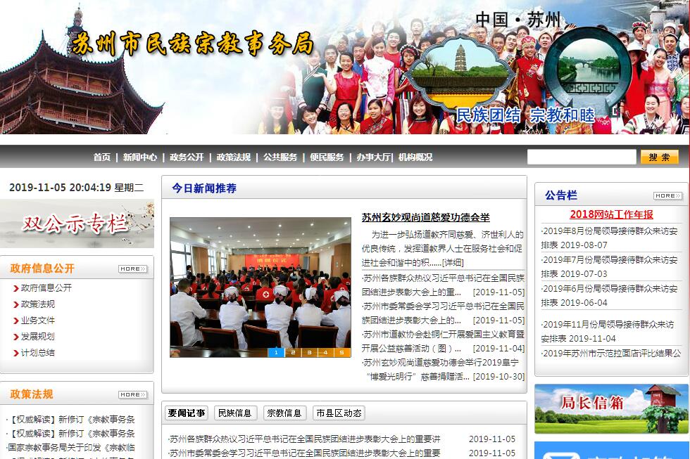 蘇州市民族宗教事務(wù)局,為市政府工作部門,正處級建制。其主要職責是:(一)貫徹執(zhí)行黨和國家有關(guān)民族宗教工作的方針政策和法律、法規(guī);開展民族宗教理論、政策和民族宗教問題的調(diào)查研究,提出我市有關(guān)民族宗教工作的政策建議。(二)會同有關(guān)部門做好民族宗教政策和法律、法規(guī)的宣傳教育工作;督促檢查民族宗教政策和法律、法規(guī)的執(zhí)行情況。(三)依法保護少數(shù)民族公民的合法權(quán)益;組織和承辦全市民族團結(jié)進步表彰活動;會同有關(guān)部門做好培養(yǎng)選拔少數(shù)民族干部工作;組織接待來我市參觀、學習、考察的少數(shù)民族團隊。(四)會同有關(guān)部門做好新疆民族班的管理工作;會同有關(guān)部門做好少數(shù)民族扶貧工作;會同有關(guān)部門做好清真飲食網(wǎng)點建設(shè)工作;落實國家對民族用品定點生產(chǎn)企業(yè)的有關(guān)優(yōu)惠政策。(五)依法履行宗教事務(wù)管理職責,依法保護公民宗教信仰自由和正常的宗教活動。(六)指導民族宗教團體依法依章開展活動;支持民族宗教團體加強自身建設(shè);協(xié)助辦理民族宗教團體需由政府解決或協(xié)調(diào)的有關(guān)事宜。(七)承擔市政府交辦的為發(fā)展蘇州文化旅游城市服務(wù)的有關(guān)工作;協(xié)調(diào)宗教活動場所承辦與發(fā)展蘇州文化旅游事業(yè)有關(guān)的事宜。(八)指導全市民族宗教事務(wù)部門依法履行管理職責;協(xié)調(diào)處理民族宗教事務(wù)的重大事項;防范利用宗教進行的非法、違法活動;抵御境外利用宗教進行的滲透活動。(九)受省宗教事務(wù)局委托,協(xié)助做好部分宗教院校的有關(guān)管理工作。(十)負責宗教方面的外事歸口管理工作;指導宗教界開展對外以及對港澳臺的宗教交往活動。(十一)負責所屬事業(yè)單位的有關(guān)管理工作。(十二)承辦市政府交辦的其它事項。